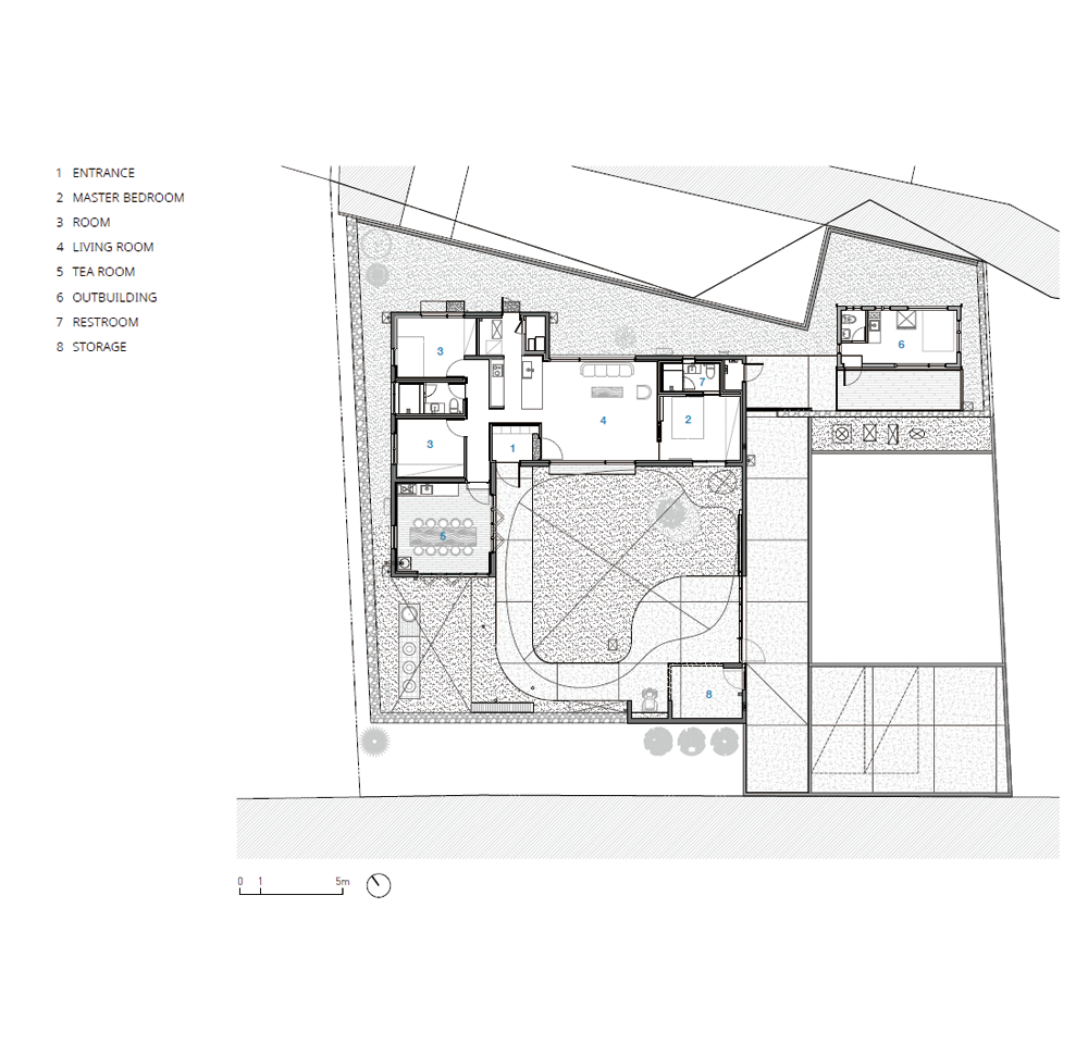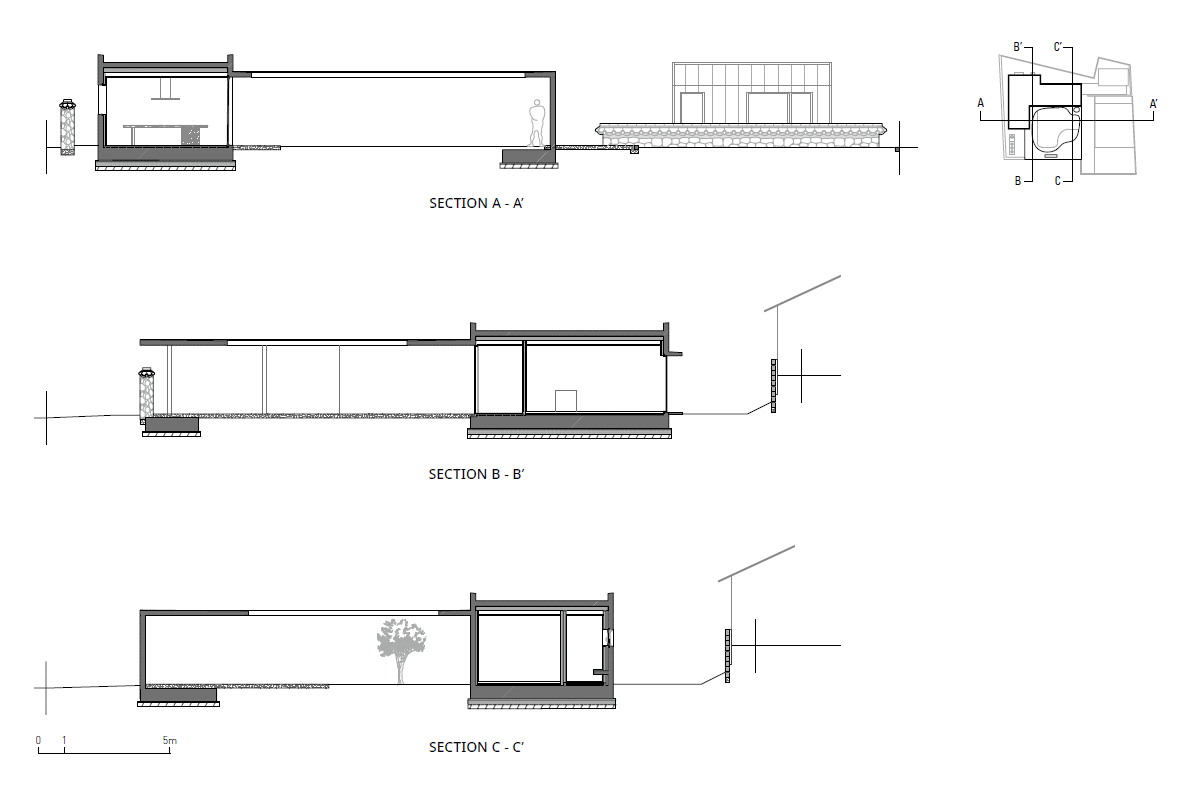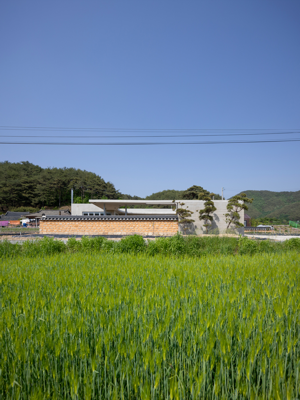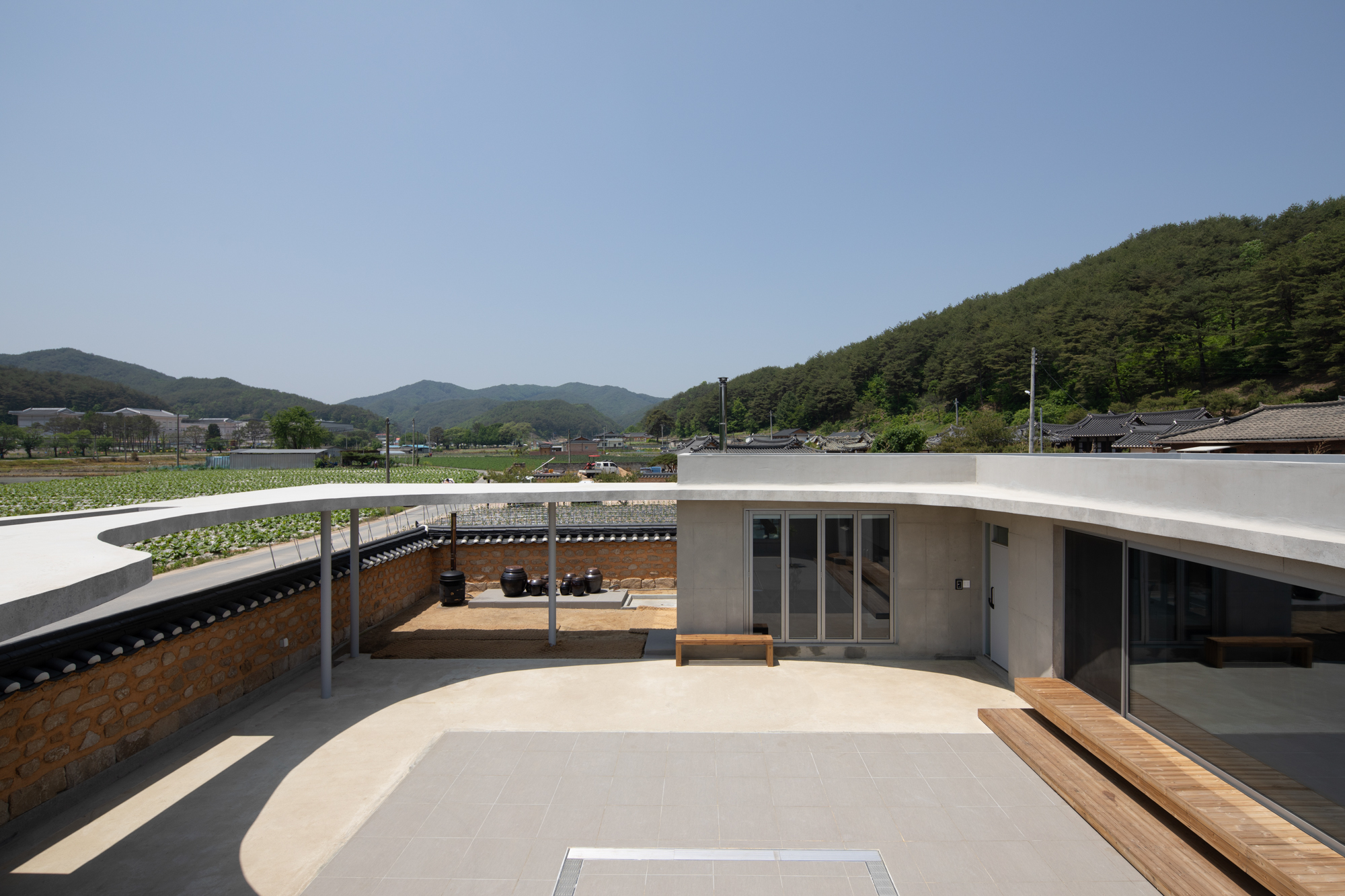 마당을 에워싸고 있는 지붕은 환경과의 상호작용을 통해 시간과 공간의 움직임을 드러내어 느끼게 만든다. 지붕은 주변 마을을 구성하고 있는 한옥에서 찾을 수 있는 마당과 마루 그리고 처마와 연관된 개인적인 경험과 감정을 지속하게 하는 공간이 된다. 마당에서 바라본 하늘은 가위로 오려낸 것 같은 지붕을 따라 즉흥적이며 자유분방하게 움직인다. 지붕과 하늘이 만나며 그려진 선은 시간에 따라 변화하는 장소의 고유한 풍경을 드러내는 장치가 된다. 자연과 시간의 변화에 대해 지각하고 마당의 앉아서 응시하거나 걸어 다니는 감각적 경험과 운동성은 오랜 시간 한 장소에서 머물러 살아가는 정주적 시간 속에서 현재의 ‘나’를 지각하며 생동적으로 들어내고자 하는 것에 있다.