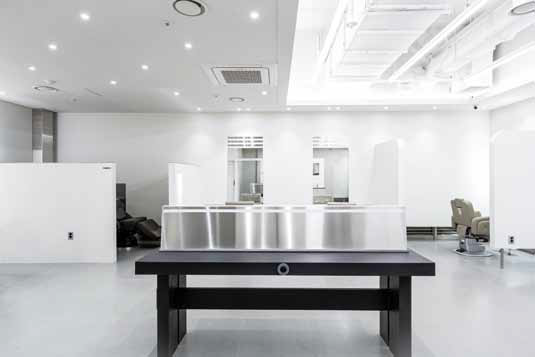 우리의 삶을 풍요롭게 하는 여러 요소 중 한 가지를 꼽는다면 헤어 스타일의 변화도 해당될 것이다. 단순히 머리를 아름답게 하기 위한 커트, 펌시술이 행해지는 일반적인 헤어숍이 아닌 바쁜 현대인의 일상 속 휴식을 느낄 수 있는 힐링 포인트를 모토로 시공되었다. 다수의 IT업계가 모인 판교라는 지역적 특수성도 공간을 디자인 하는데 있어 중요한 요소로 작용하였으며, 개인 프라이버시의 존중을 더 중시하는 요즘 트렌드에 기반하여 오픈된 공간이 아닌 섹션별로 독립적인 시술이 가능한 공간을 만들어 어느 누구에게도 방해받지 않고 오직 나만을 위한 공간에서 편안함을 느끼며 시술을 받을 수 있는 공간으로 설계되었다. 비슷한 질감의 재료를 다양한 형태로 표현해 공간의 깊이감을 표현했고 사람의 앉은 키를 고려한 높이의 곡선 파티션으로 부분적으로 시각적 공간감을 강조해 시공하였다. 직업적 특성을 고려해 하루 종일 서 있는 일이 많은 헤어 디자이너를 위한 넓은 동선 확보를 우선시하였으며 적합한 동선의 콘센트 위치, 눈의 피로도가 적은 확산형 조명으로 시술자와 고객의 편안함과 눈 건강까지 고려하였다. 이제 헤어숍은 머리 모양의 변화만을 위한 공간이 아닌 개인의 시간을 작은 삶으로 간주하고, 아름다움과 휴식이 함께할 수 있는 복합적 공간의 개념으로 디자인이 되어야 할 것이다.