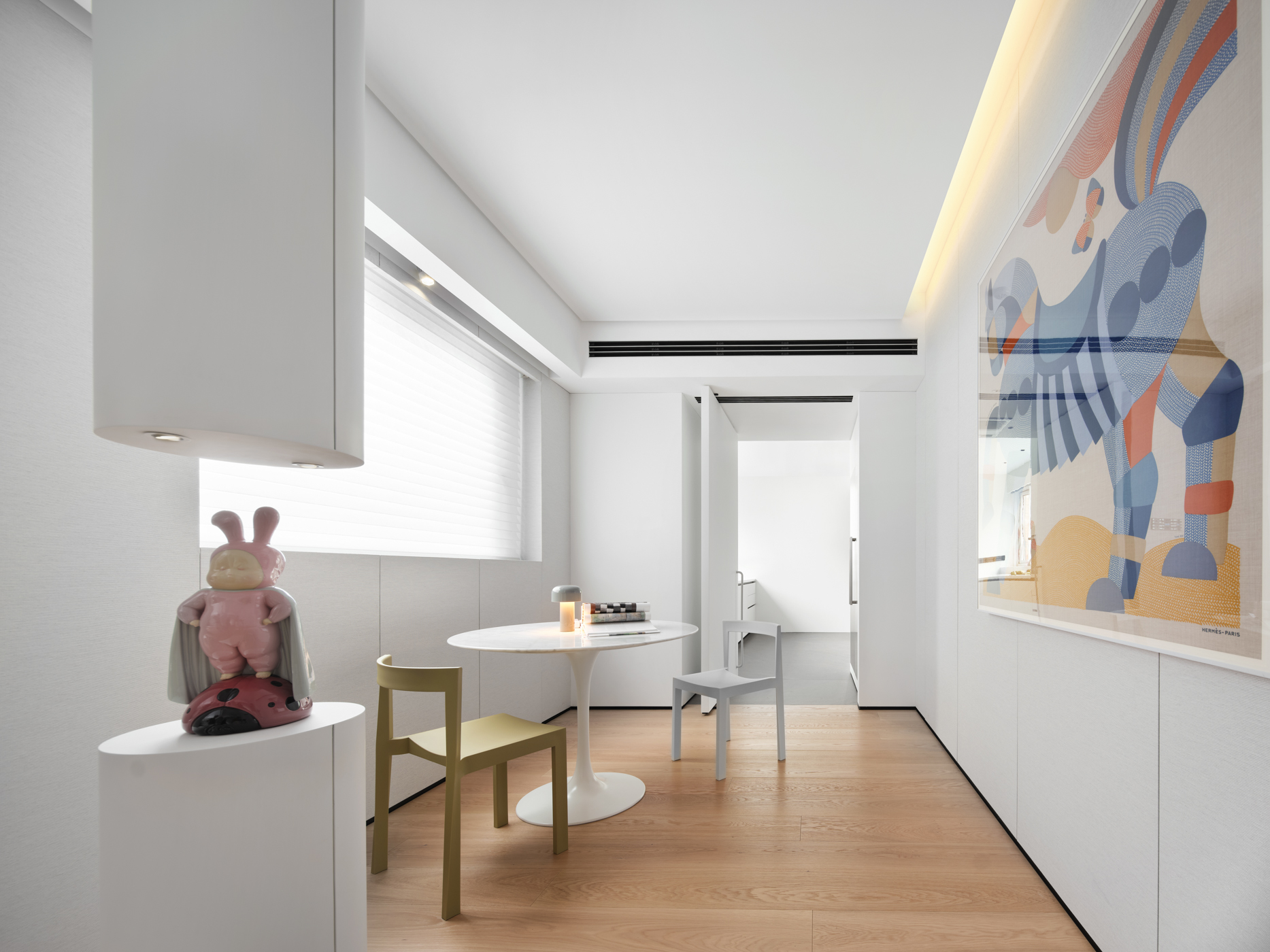 #1 레이크렌턴 레지던스는 포샨 중심부에 위치한 고급 아파트로, 현대적 미니멀리즘 디자인을 통해 무한하게 확장되는 예술적 주거 공간이다. 복도의 벽은 다용도의 서양식 주방과 와인 캐비닛 역할을 하도록 설계되어 개방성과 사생활 사이의 조화로운 균형을 이룬다. 주방은 다이닝룸으로 확장되어 식사, 커피 즐기기, 사교를 위한 통합된 공간이 된다. 이 배치는 가족, 친척, 친구들과 연결할 충분한 기회를 제공한다. 고급 대리석으로 완전히 만들어진 다이닝 바는 고급스러운 질감을 자랑한다. 공간 자체는 목재와 돌, 직물의 요소들이 조화롭게 어우러져 각각의 요소들이 상호 보완적이고 울림을 준다. 밤이 되면 저녁 노을과 은은한 불빛이 집안을 비추고, 자연스러운 평온과 즐거움이 공기를 가득 채우며 주민들의 기분을 고조시킨다. 홈짐(Home Gym)과 거실은 미닫이문으로 분리되어 있으며, 체육관은 거울에 비치는 곡선형 스테인리스로 설치하여 환상적인 시각 효과를 낸다. 다기능 홀에는 우아한 곡선을 가진 테이블과 의자가 배치되어 있으며, 활기찬 색상은