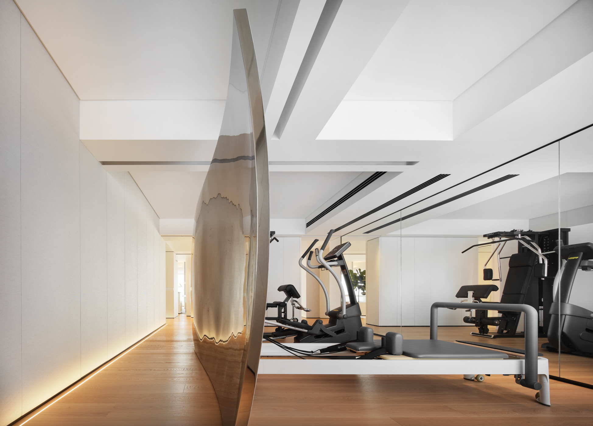 #1 레이크렌턴 레지던스는 포샨 중심부에 위치한 고급 아파트로, 현대적 미니멀리즘 디자인을 통해 무한하게 확장되는 예술적 주거 공간이다. 복도의 벽은 다용도의 서양식 주방과 와인 캐비닛 역할을 하도록 설계되어 개방성과 사생활 사이의 조화로운 균형을 이룬다. 주방은 다이닝룸으로 확장되어 식사, 커피 즐기기, 사교를 위한 통합된 공간이 된다. 이 배치는 가족, 친척, 친구들과 연결할 충분한 기회를 제공한다. 고급 대리석으로 완전히 만들어진 다이닝 바는 고급스러운 질감을 자랑한다. 공간 자체는 목재와 돌, 직물의 요소들이 조화롭게 어우러져 각각의 요소들이 상호 보완적이고 울림을 준다. 밤이 되면 저녁 노을과 은은한 불빛이 집안을 비추고, 자연스러운 평온과 즐거움이 공기를 가득 채우며 주민들의 기분을 고조시킨다. 홈짐(Home Gym)과 거실은 미닫이문으로 분리되어 있으며, 체육관은 거울에 비치는 곡선형 스테인리스로 설치하여 환상적인 시각 효과를 낸다. 다기능 홀에는 우아한 곡선을 가진 테이블과 의자가 배치되어 있으며, 활기찬 색상은