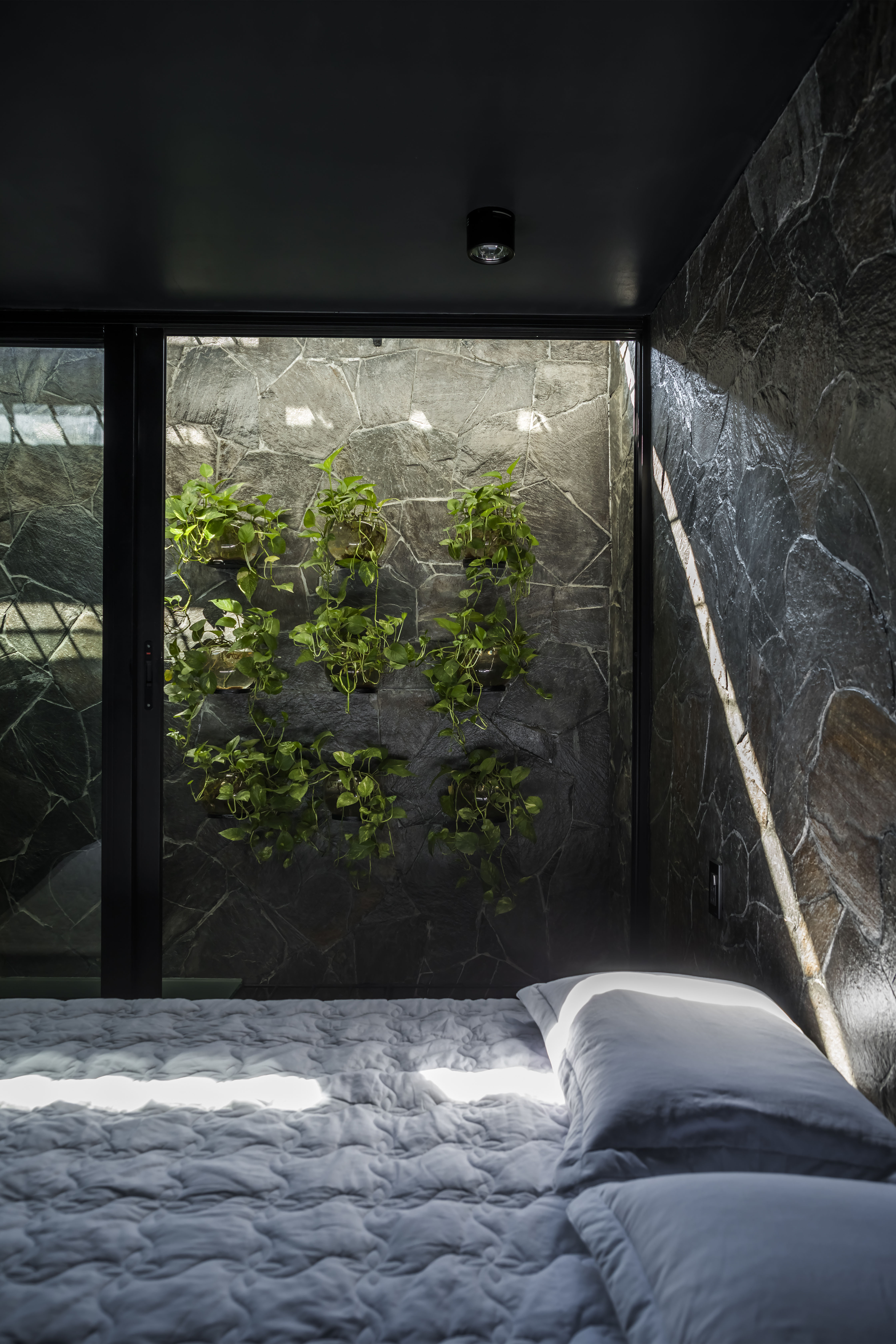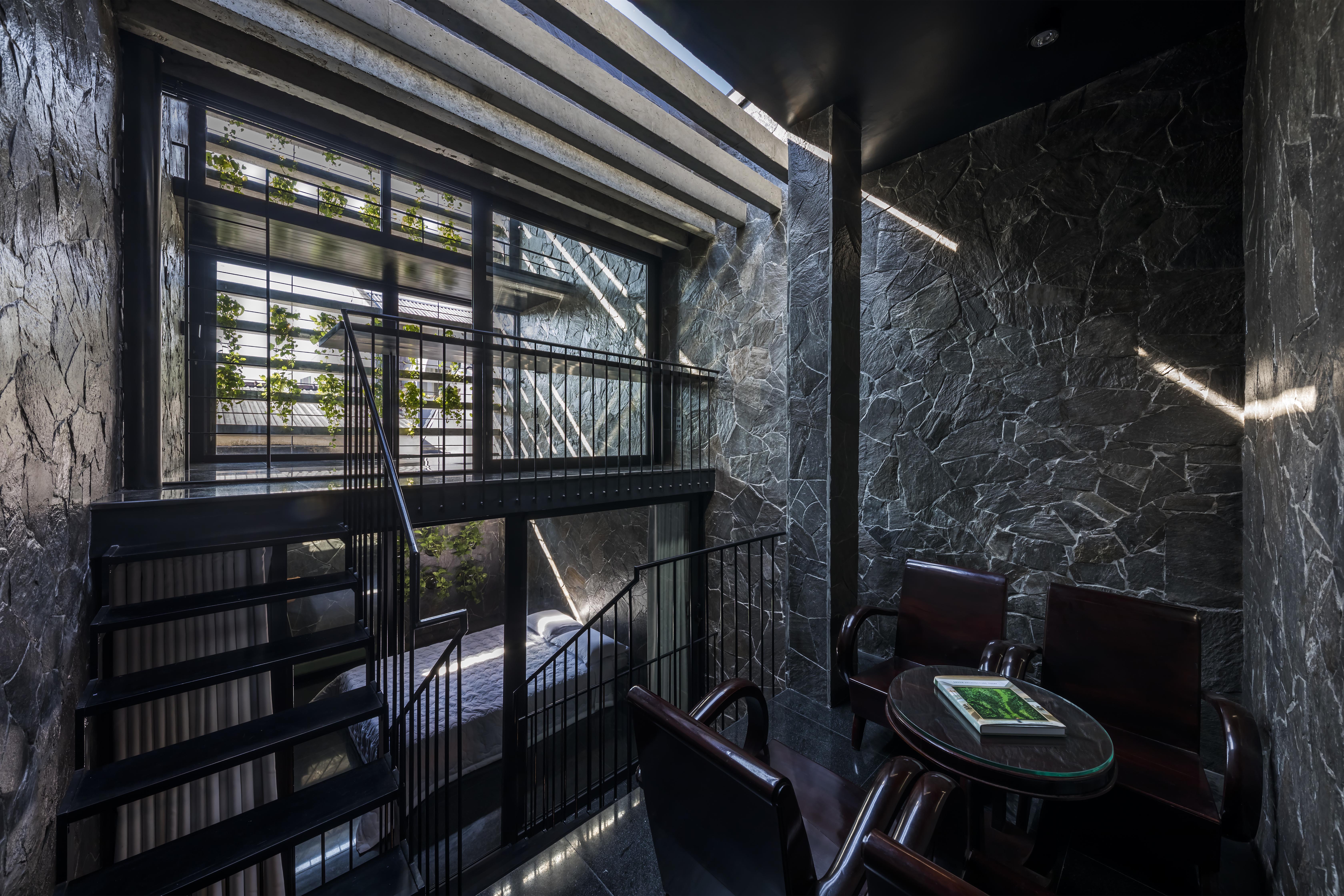 마이 툭 로안 길에 위치한 이 주택은 노부부와 딸, 3인의 가족이 거주하는 곳이다. 주택은 가족들의 변화하는 상황으로 인하여 세 번의 리노베이션 과정을 거쳤는데, 시간이 흐르면서 평범한 주거지였던 마이 툭 로안 길 역시 상업적인 성격의 길이 되었다. 이러한 길의 변화는 거주 공간을 리노베이션하는 데에도 영향을 주었다. 먼저, 노부부의 침실은 거리와 멀리 떨어진 부분에 배치되었으며 접근은 용이하고, 사생활은 보호할 수 있도록 계획되었다. 노부부의 침실 옆에는 주방과 다이닝룸이 있는데, 이 공간에는 큰 채광창으로 항상 햇빛이 들어와 공간을 밝힌다. 노부부가 생활하는 공간 바로 위층에는 딸의 개인적인 공간이 있다. 개인 거실, 서재, 화장실 등이 있으며 노부부를 돌보면서 개인적인 라이프스타일을 즐길 수 있도록 고려되어 있다. 콘크리트 루버는 뜨거운 태양으로부터 막아주고, 시원한 바람은 주택 내부로 자연스럽게 유입되도록 만들어준다. 건물의 뒤쪽 입면을 활짝 열려 있는데, 이는 건물의 정면이자 거리로부터 흘러 들어온 뜨거운 공기가 거실을 통하고 뒤쪽으로 빠져나가도록 설계되어 있기 때문이다. 또한, 집에 사용된 검은색의 자재는 단단한 토착 석재로 거주자들에게 친밀감과 동굴 같은 아늑함을 느끼게 해준다.