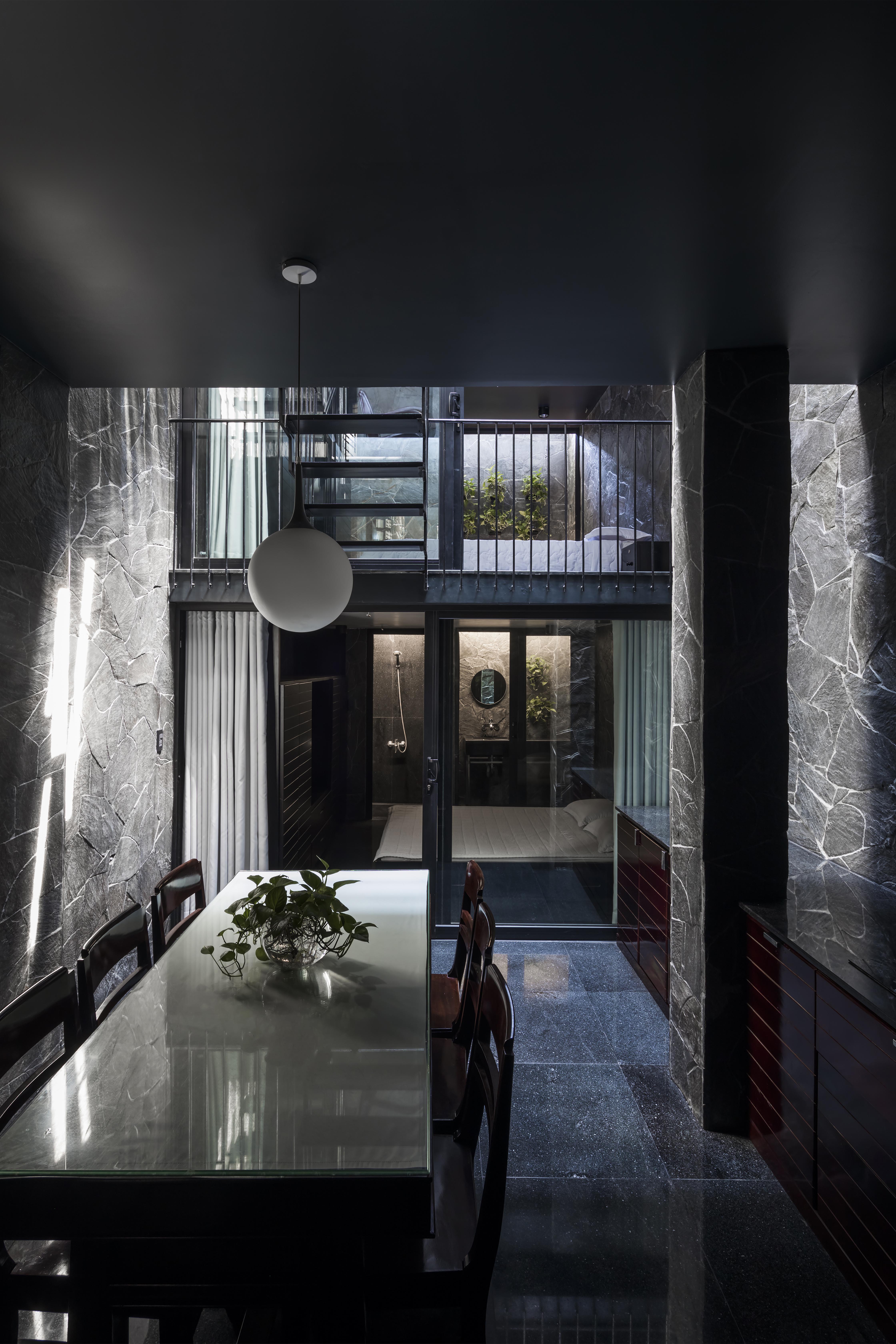 마이 툭 로안 길에 위치한 이 주택은 노부부와 딸, 3인의 가족이 거주하는 곳이다. 주택은 가족들의 변화하는 상황으로 인하여 세 번의 리노베이션 과정을 거쳤는데, 시간이 흐르면서 평범한 주거지였던 마이 툭 로안 길 역시 상업적인 성격의 길이 되었다. 이러한 길의 변화는 거주 공간을 리노베이션하는 데에도 영향을 주었다. 먼저, 노부부의 침실은 거리와 멀리 떨어진 부분에 배치되었으며 접근은 용이하고, 사생활은 보호할 수 있도록 계획되었다. 노부부의 침실 옆에는 주방과 다이닝룸이 있는데, 이 공간에는 큰 채광창으로 항상 햇빛이 들어와 공간을 밝힌다. 노부부가 생활하는 공간 바로 위층에는 딸의 개인적인 공간이 있다. 개인 거실, 서재, 화장실 등이 있으며 노부부를 돌보면서 개인적인 라이프스타일을 즐길 수 있도록 고려되어 있다. 콘크리트 루버는 뜨거운 태양으로부터 막아주고, 시원한 바람은 주택 내부로 자연스럽게 유입되도록 만들어준다. 건물의 뒤쪽 입면을 활짝 열려 있는데, 이는 건물의 정면이자 거리로부터 흘러 들어온 뜨거운 공기가 거실을 통하고 뒤쪽으로 빠져나가도록 설계되어 있기 때문이다. 또한, 집에 사용된 검은색의 자재는 단단한 토착 석재로 거주자들에게 친밀감과 동굴 같은 아늑함을 느끼게 해준다.