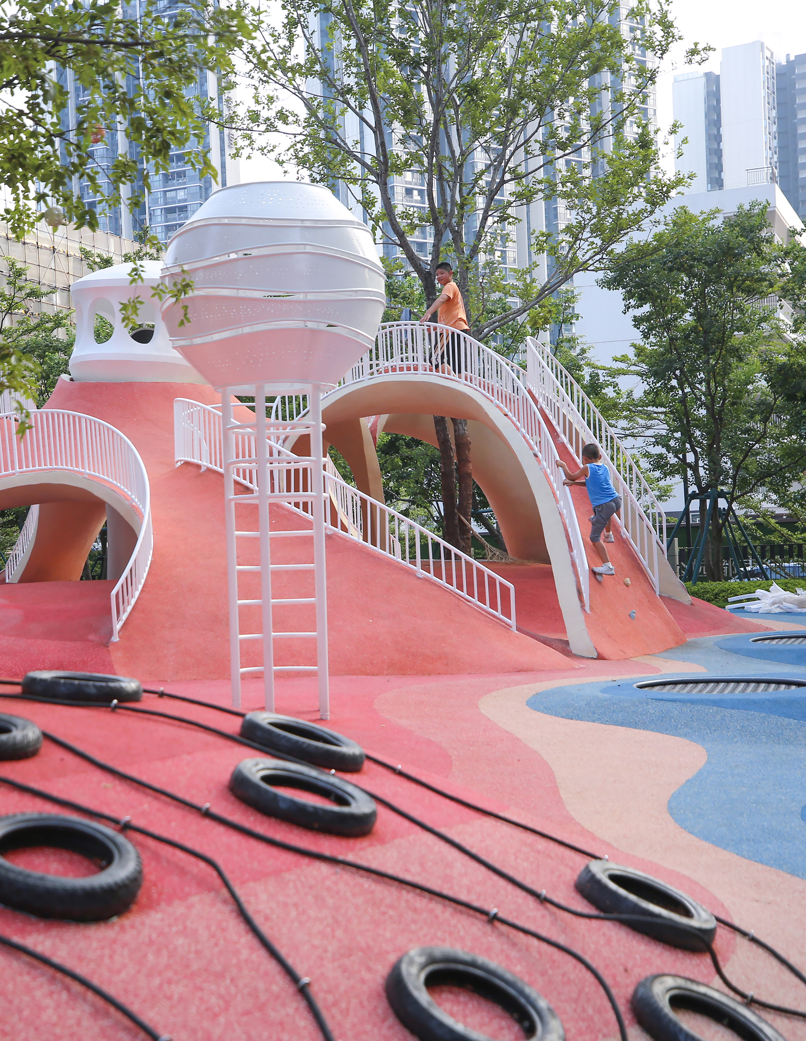 The undulating red dunes offer a playful terrain. We have integrated an array of richly functional children's activity installations into the topography, creating a natural harmony. Utilizing advanced design techniques such as parameterized design, drainage optimization simulation, and structural form-finding algorithms, the project harmoniously merges with its natural surroundings. It aims to inspire both children and adults to immerse themselves in the joy of outdoor play and exploration.