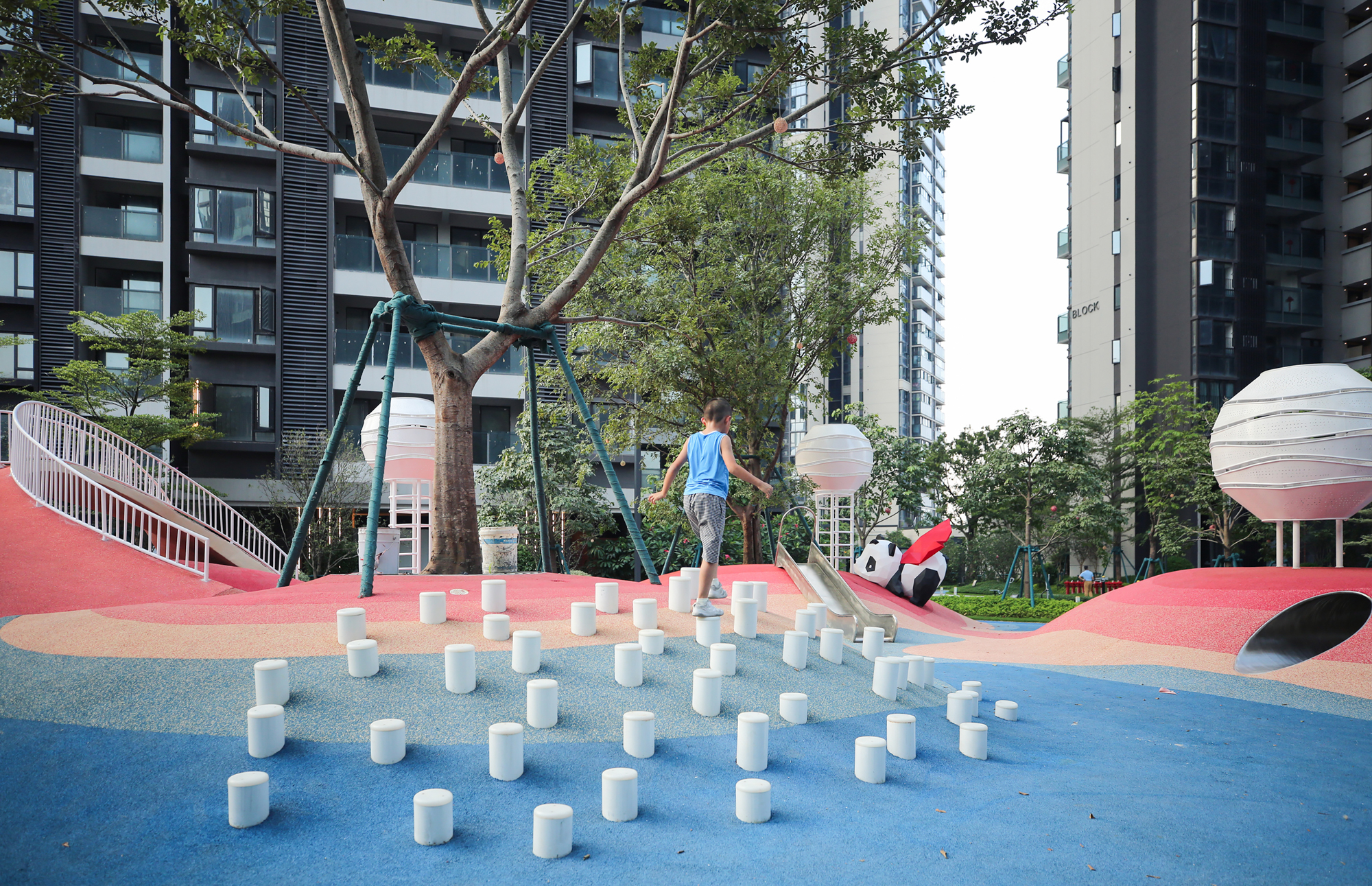 우리는 놀이공간에서 관찰하고, 쉬고, 상호작용할 수 있는 5가지 등반 방법을 설계했다. 금성, 목성, 수성, 화성, 토성에서 영감을 받은 각 행성은 중국 오행에서 영감을 받은 타원형, 줄무늬형, 원형, 삼각형, 사각형 모티프를 반영한 독특한 질감을 자랑한다.