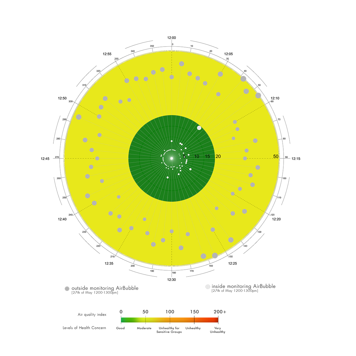 에어버블 놀이터는 52개의 유리 조류 반응기를 보호하는 ETFE 막으로 둘러싸인 원통형 목재 구조물이다. 이 도시 속 조류 온실은 밧줄, 발 펌프, 통통 튀는 구체들로 구성되어 놀이터와 야외 교실의 기능을 한다. 놀이터 내부의 백색 소음은 아이들이 차분한 분위기에서 상호작용을 할 수 있도록 도시의 소음을 가린다. ETFE 막은 에어버블 놀이터 내부의 미세 기후를 제어한다. 거꾸로 된 원뿔 모양의 지붕 막은 공기 재순환과 자연 환기를 더욱 자극하여 놀이 공간을 깨끗하게 유지한다. 에어버블 모니터링 시스템은 도시 대기오염 센서를 통합해 실시간으로 측정치를 비교하고 미세먼지와 핵심 오염물질에 대한 대기질 지수를 강조할 수 있는 데이터 처리 플랫폼과 연결된다.