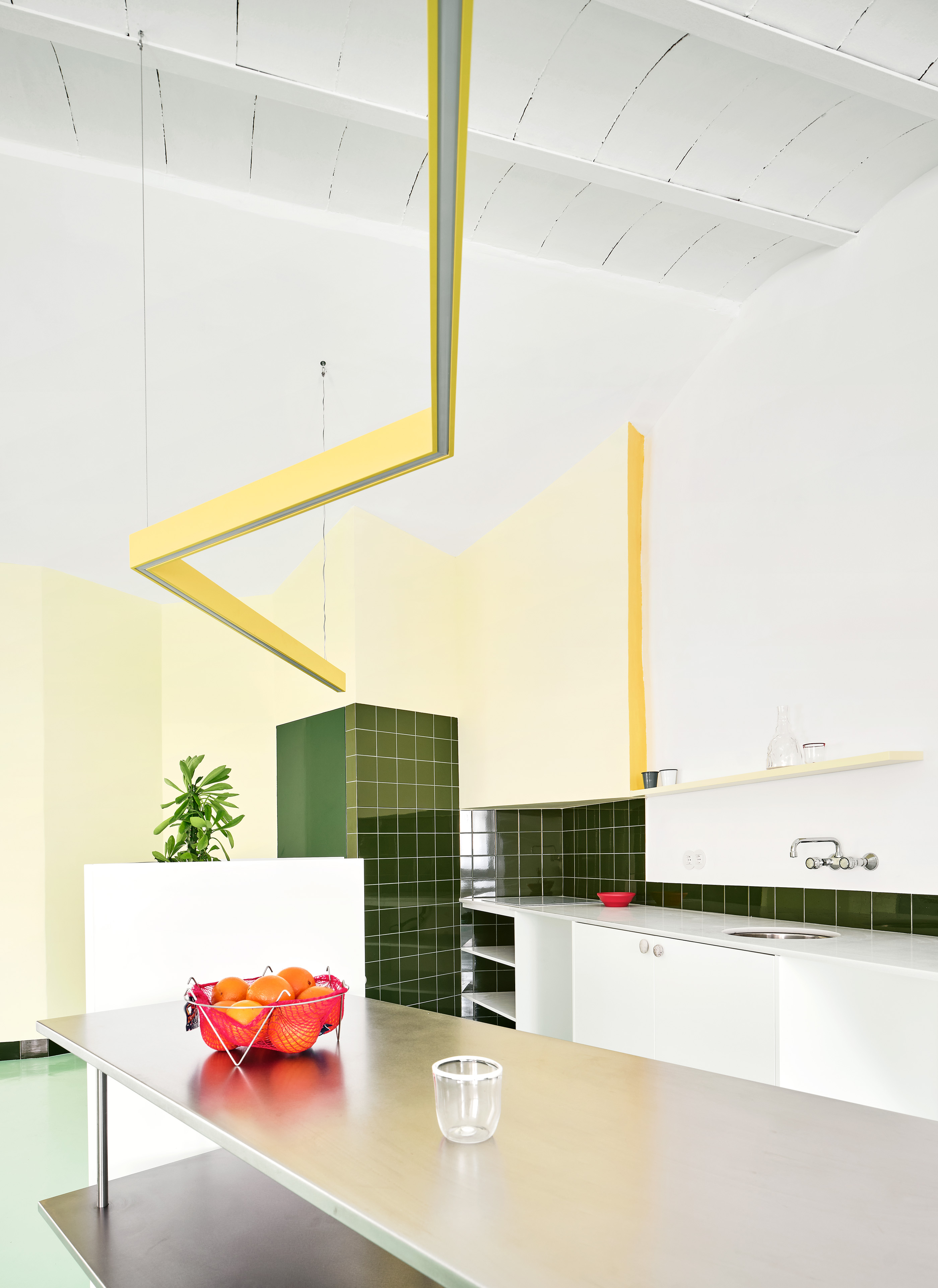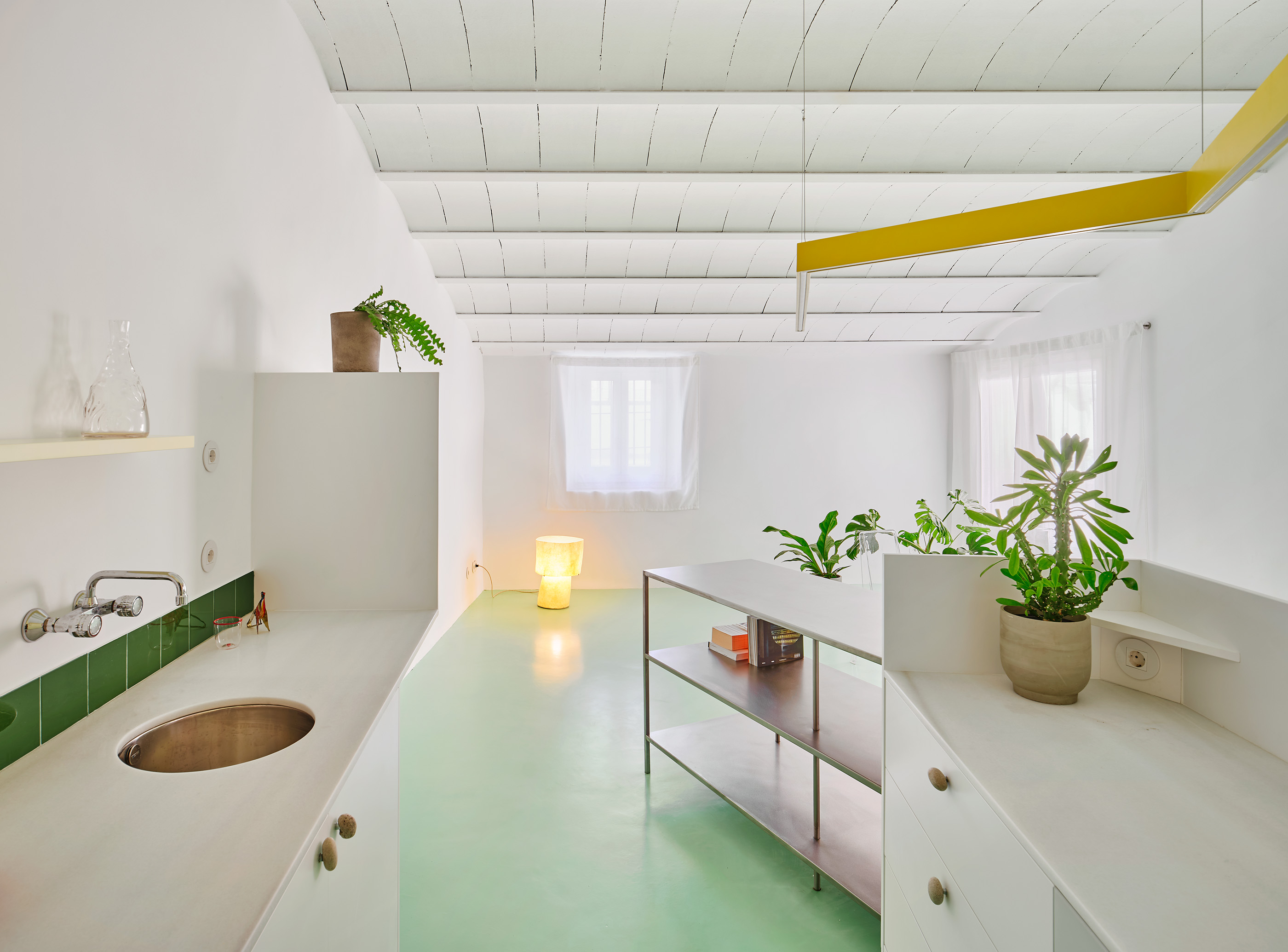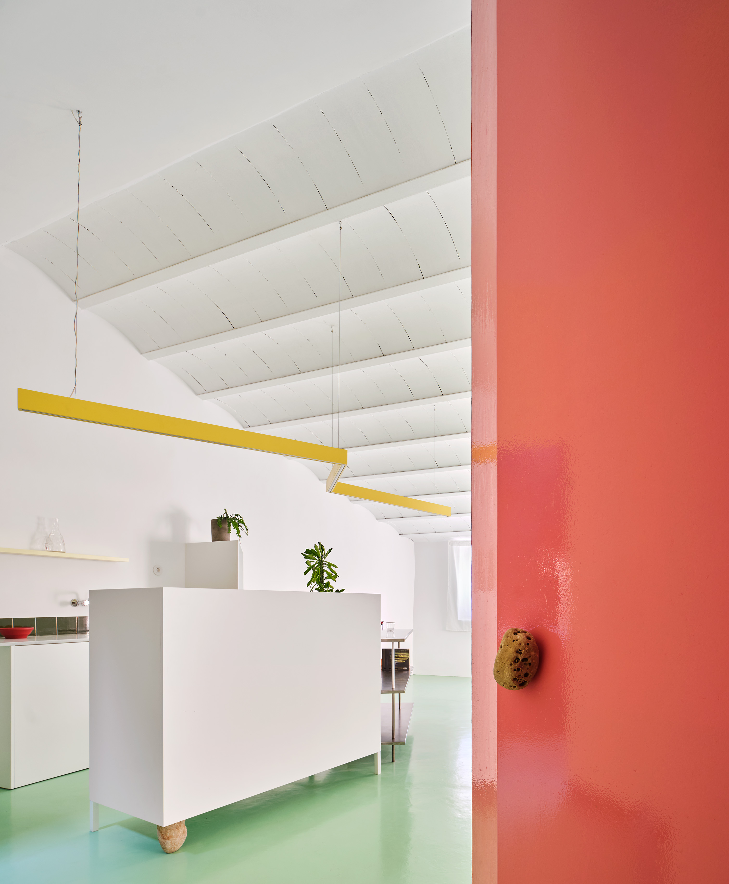 Relámpago, the name of the house, is Spanish for lightning, alluding to the story about the natural phenomenon that holds historical significance for the property. The gable-roofed house features lightning as a central element, playing a key role in defining and delineating distinct areas within the house. When lightning is transformed into both a wall and a lamp, it promptly shapes and configures the functionality of the interior spaces. “Relampago House is a project that speaks of one of our great concerns in spatial exploration: morphology and colour approached through fantasy. We used the incredible story of a lightning that struck the house years ago as a starting point for the design", say Adrià Orriols, Joan Gener and Miquel Ruiz of h3o Architects.