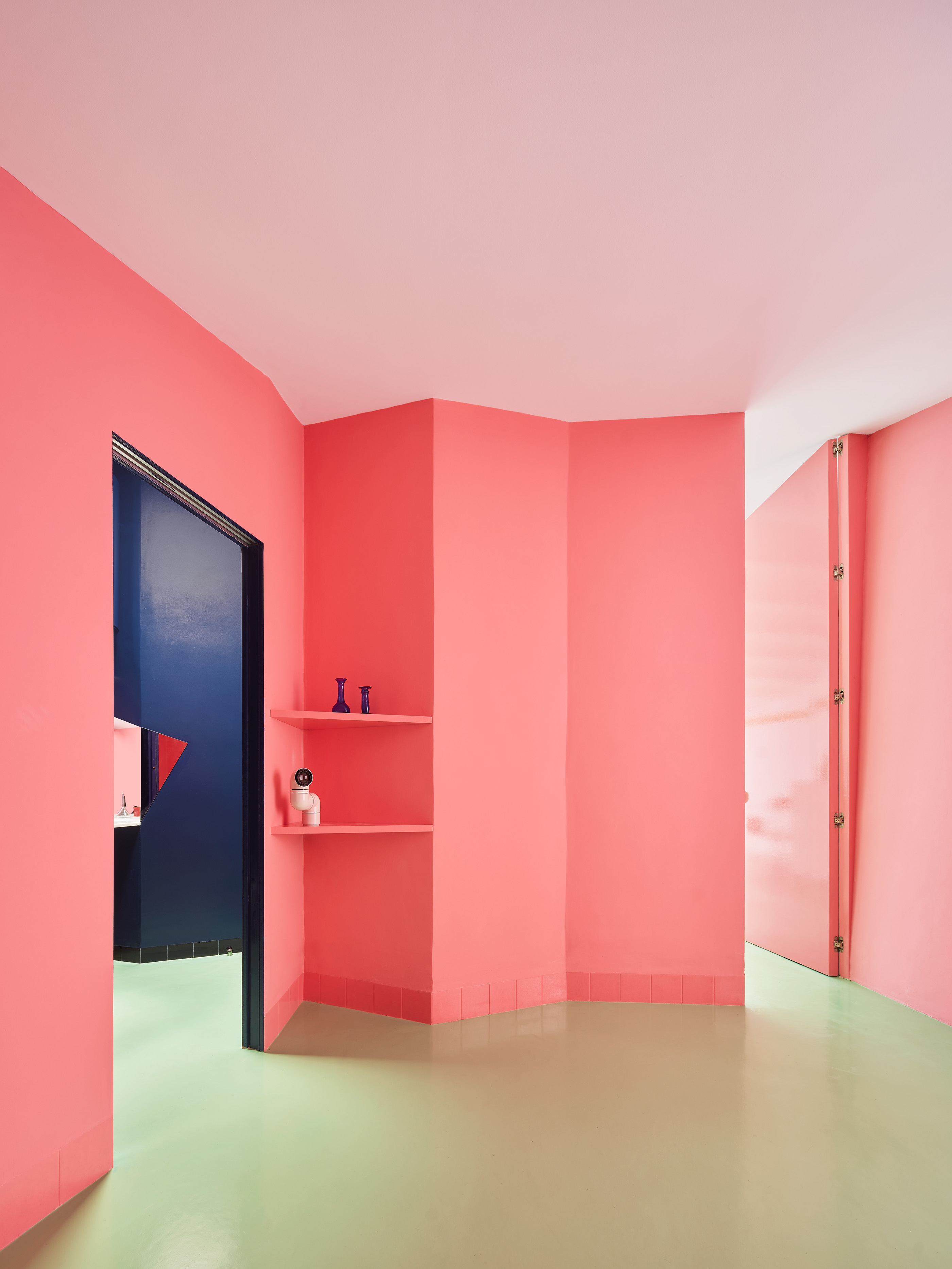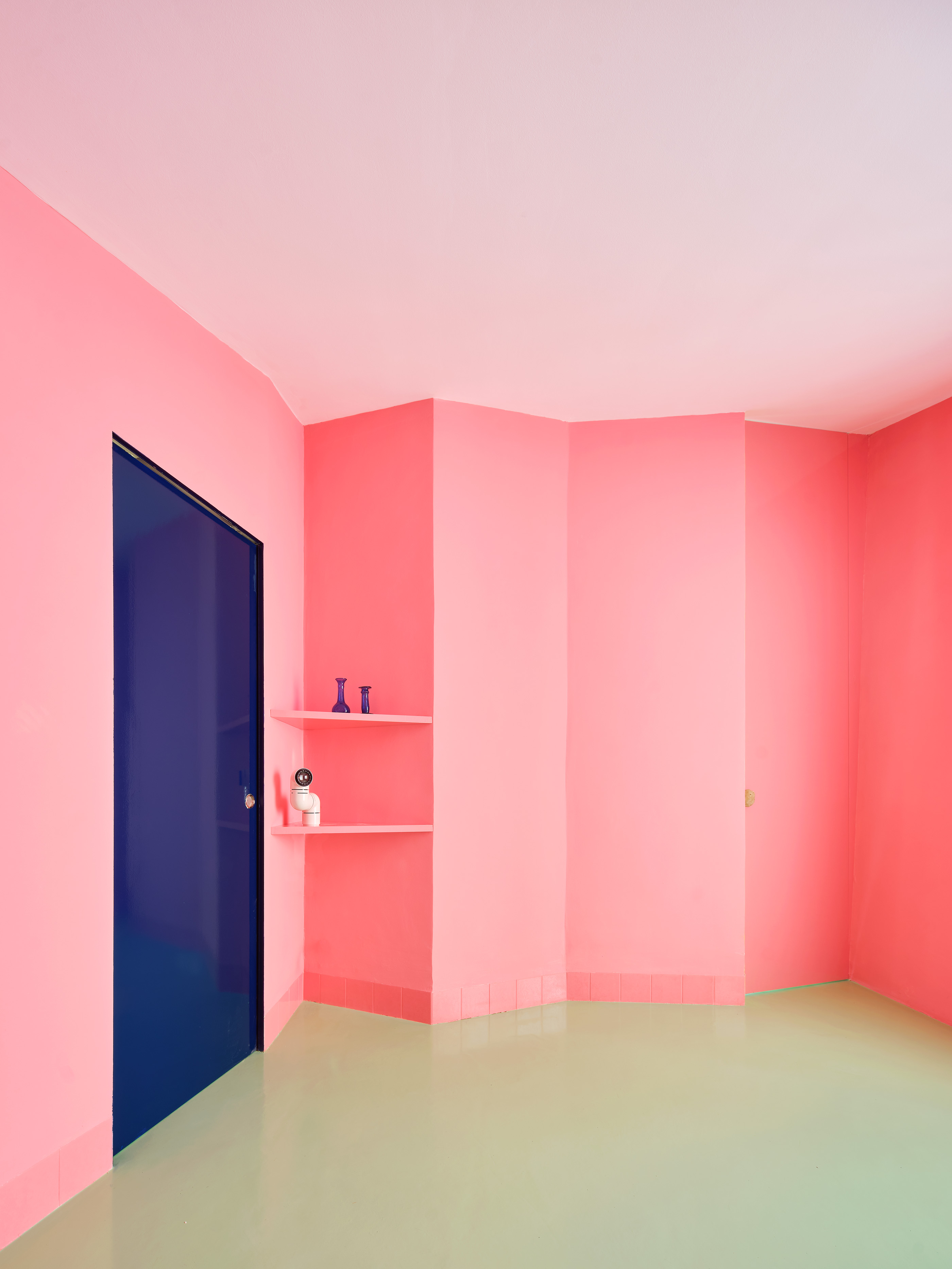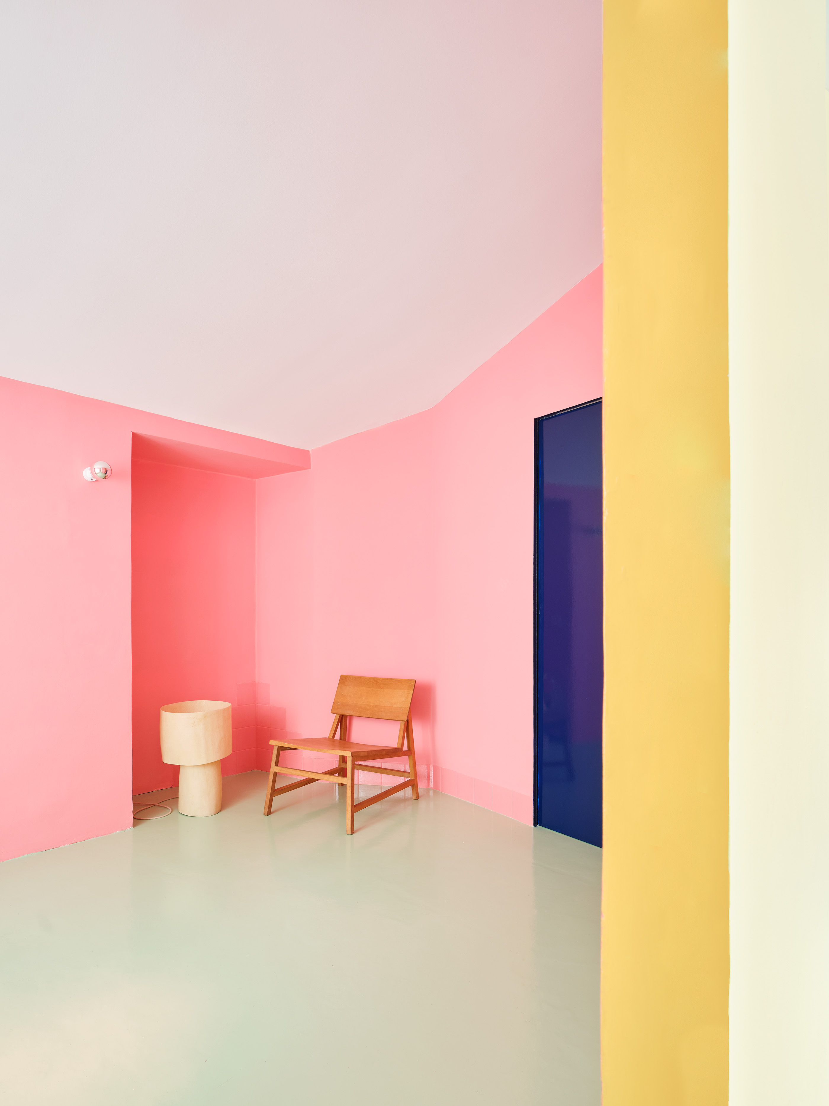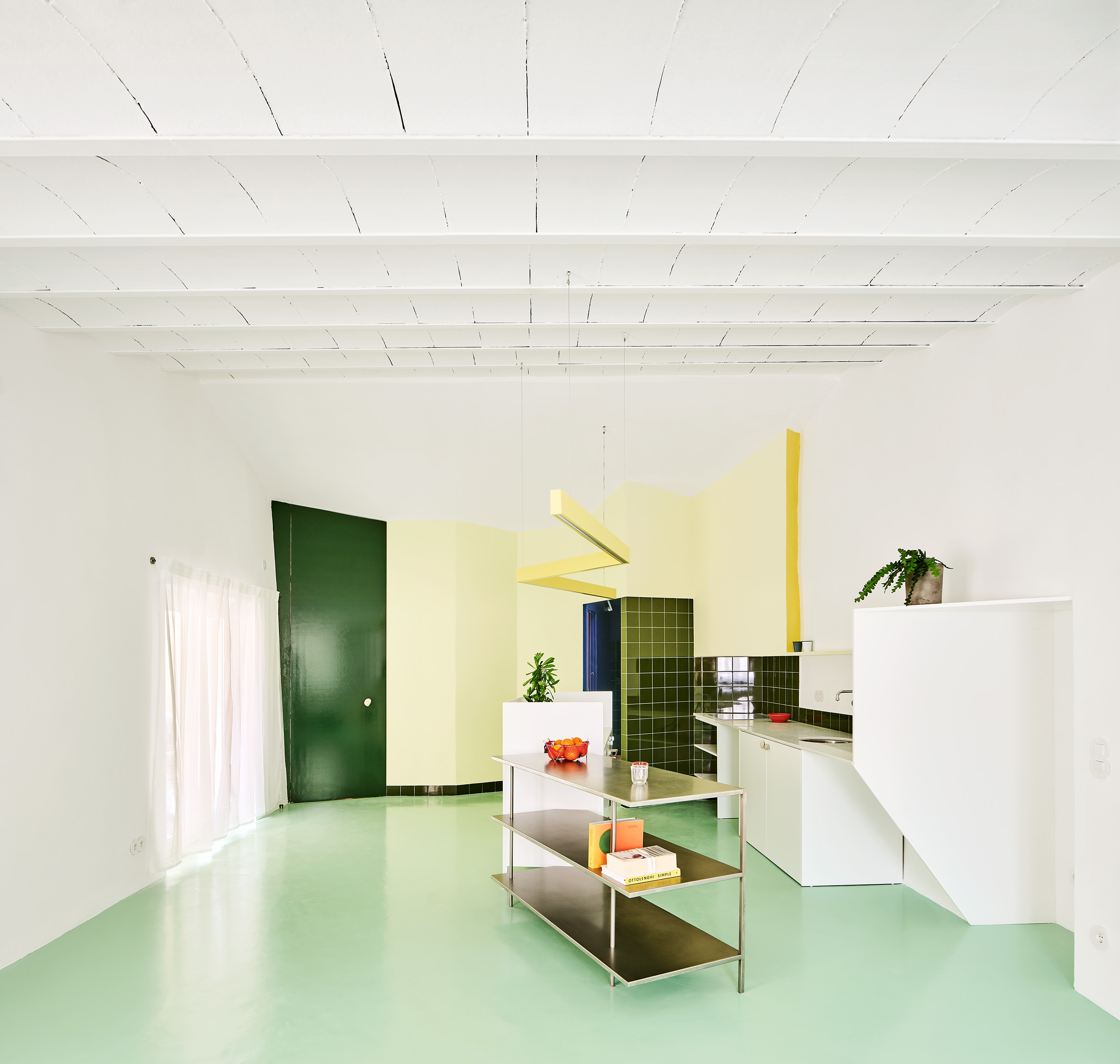 With this renovation, the studio's main intention is to generate a unique architectural experience that departs from conventional bland interiors. By combining an outbreaking architecture with a highly distinctive concept, brimming with identity, it results in a proposal that merges geometries, materials and colours, giving life and shape to a stimulating interior where fluidity between spaces stand as protagonist. A zigzagging distribution shapes the different areas of the house. With a distinctive morphology composed of lines and angular geometries that flow and blend with each other, the project creates a visual and spatial effect that amazes the user. Furthermore, the wide range of strategically applied vibrant colors on the different surfaces of the house allows both to highlight shapes and volumes, as well as distinguish and unify spaces. This chromatic choice creates an atmosphere that challenges the usual spatial perception of the user and, in combination with a series of small, seemingly out-of-context stone elements, opens the way to sensations and memories that transform the space. Relámpago House transcends the conventional notion of home. By celebrating a passion for the arts through an authentic narrative, it aims to introduce a different vision of everyday life, where creativity and originality are the essence of each day.