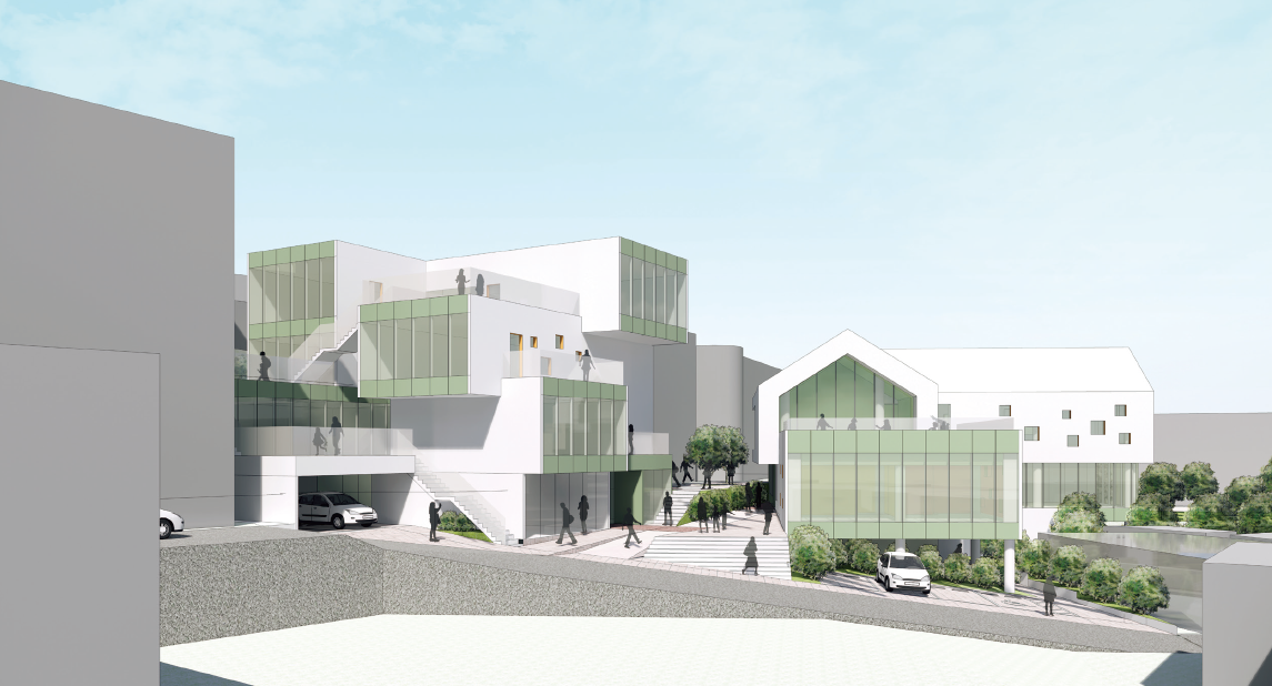 고려하고, 경사지의 레벨별로 외부 공간을 설치하여 마을길을 연결하고 건물로의 출입을 용이하도록 계획한다. 마을과