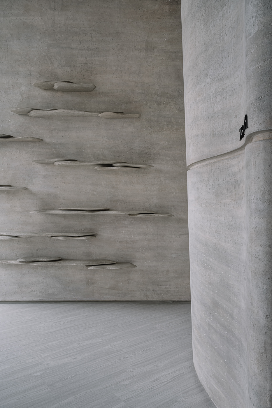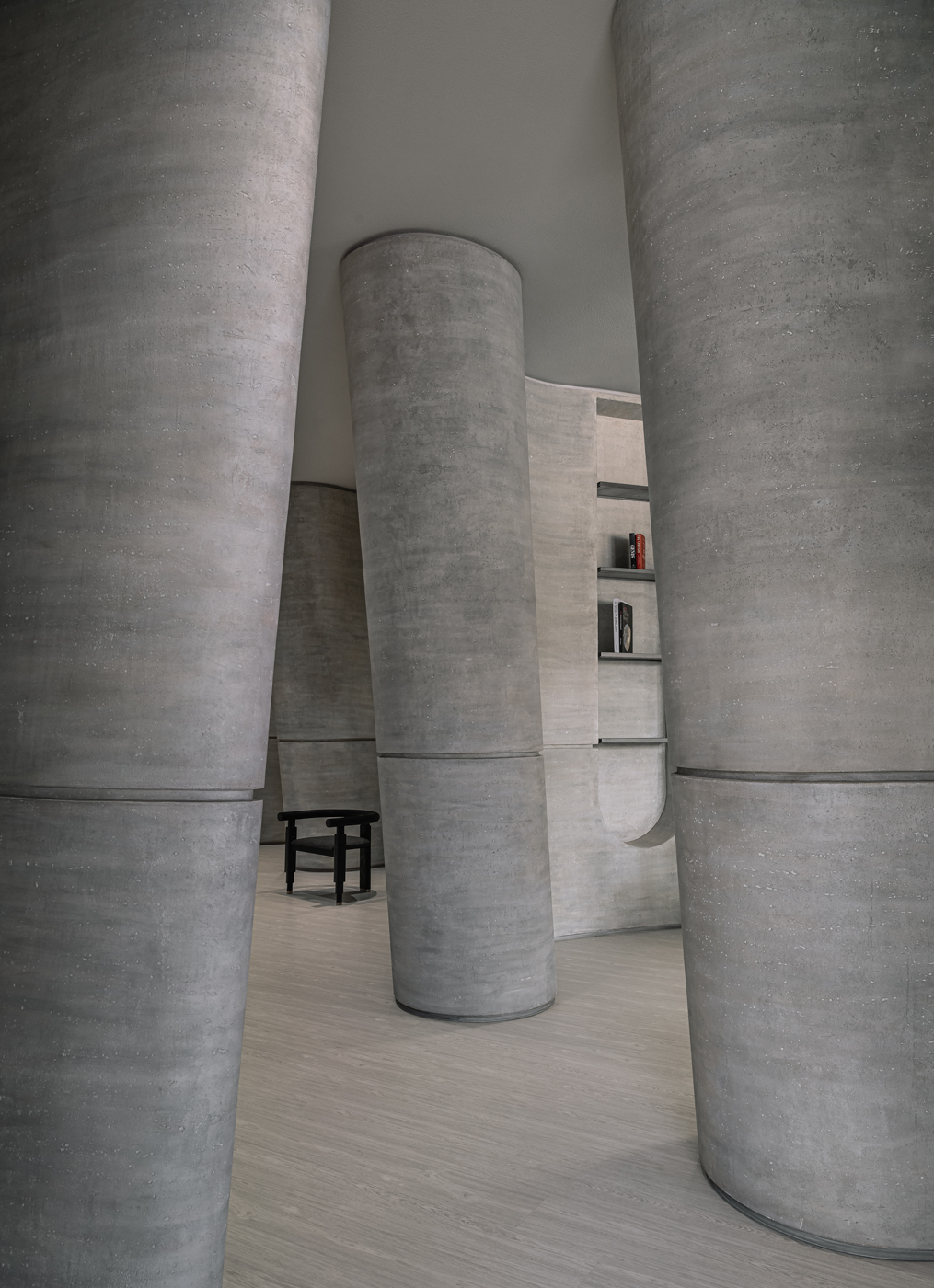 매장 내 화장실은 자연스러운 모양과 복잡한 돌, 부드러운 조명이 어우러져 소재를 강화하고 매장 전체의 유기적인 분위기를 유지한다. 단순한 전시 목적을 넘어서는 인테리어를 디자인해 고객에게 몰입감 있고 지속적인 경험을 제공하는 것이 목표였다.