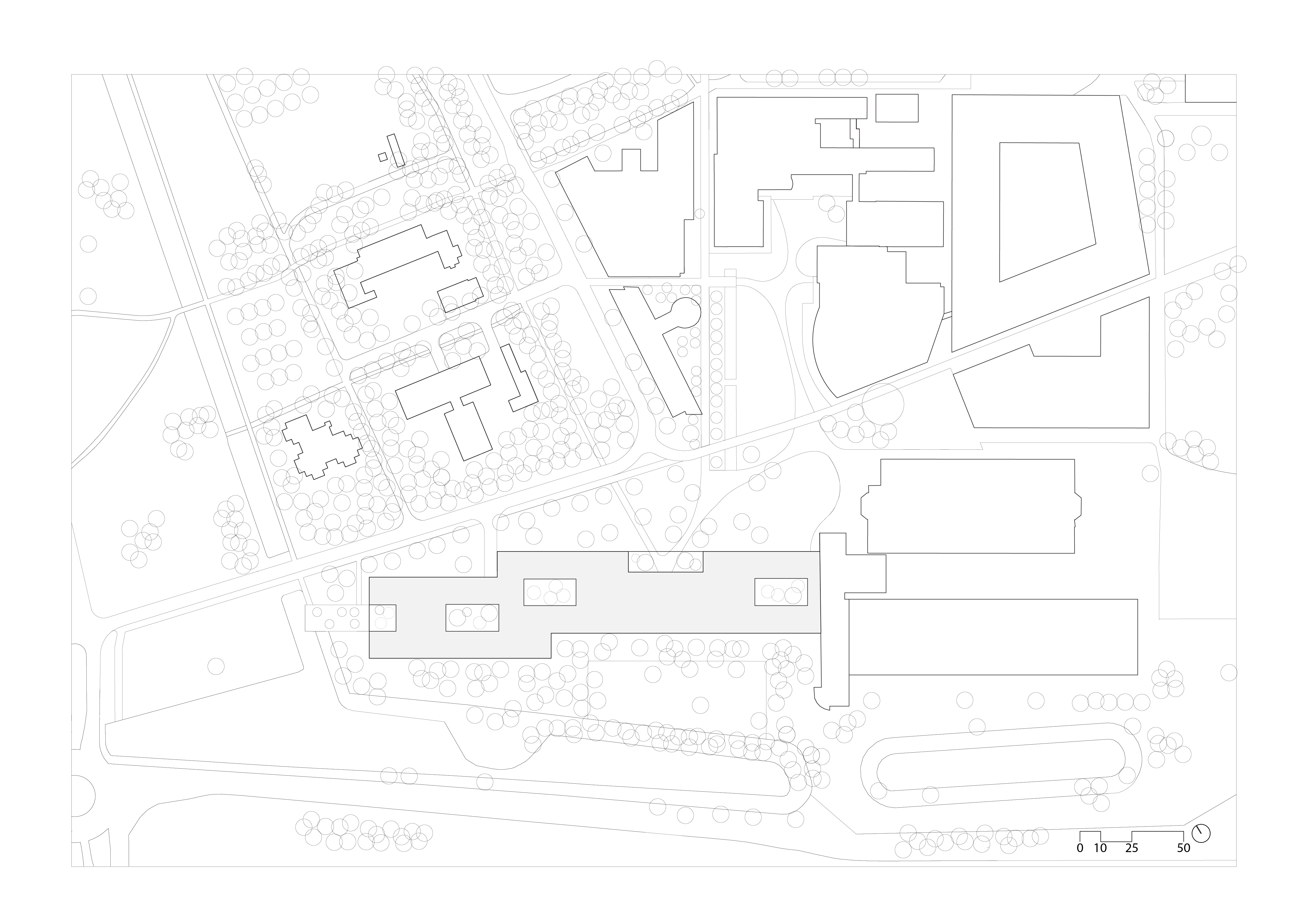 교수진은 신축보다는 1972년에 지어진 이전 연구실인 '랑게지즈(Langezijds)'를 변형하기로 결정했다. '랑게지즈(Langezijds)는 유난히 길고(220m) 깊다(38m). 바닥은 낮고 층고가 높다는 독특한 성격을 띠고 있지만 현대 교육에는 적합하지 않았다. 새로운 디자인은 추가가 아닌 제거를 통해 이루어 졌고 제약된 공간 내부로 빛이 들어 오도록 하는데 중점을 두었다. 구조를 깎아 만든 4개의 아트리아는 녹지와 신선한 공기, 빛이 풍부하게 하였고 단일 개입이라는 새로운 목적에 적합하도록 건물을 지었다.