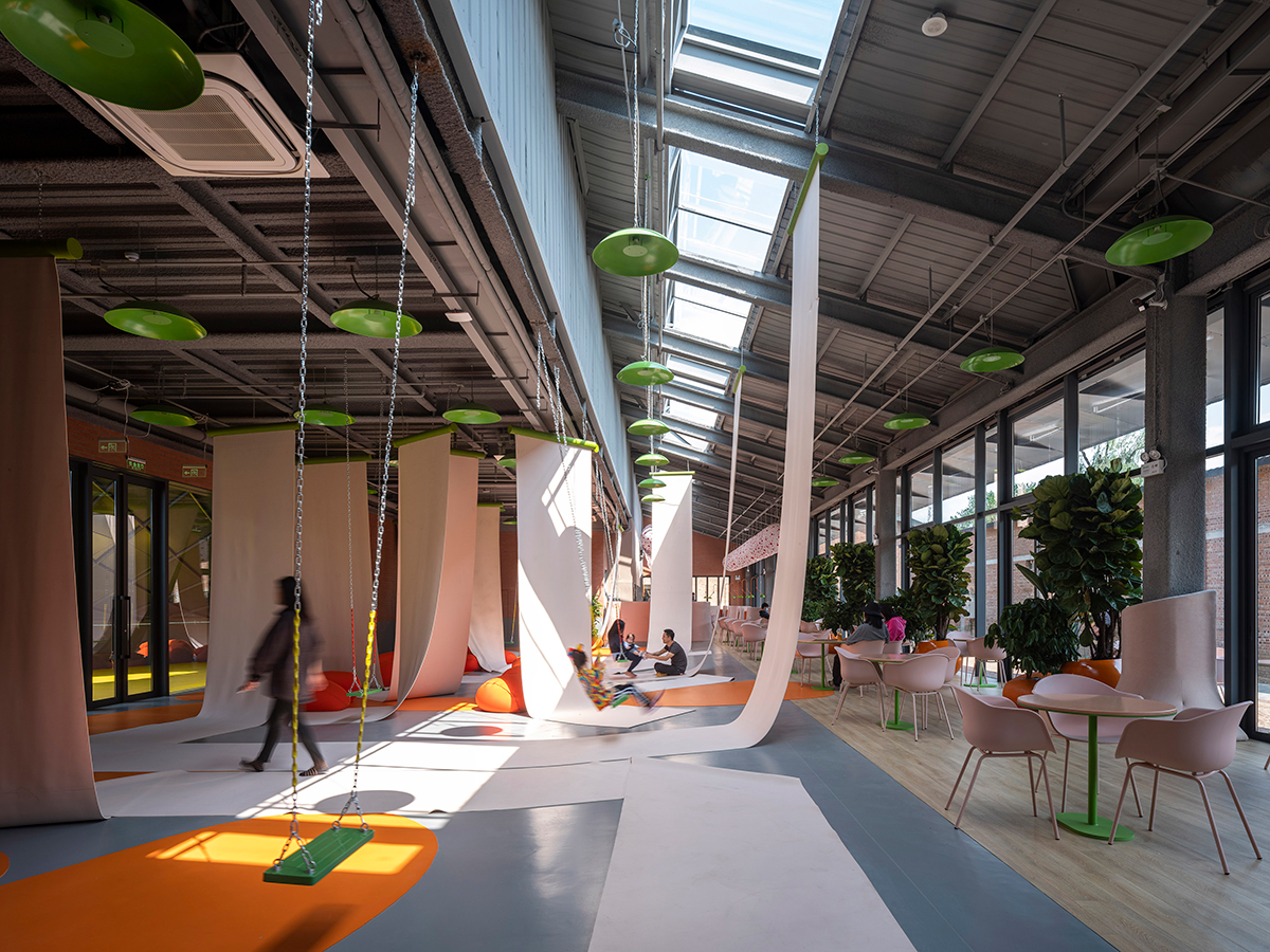 The playscape is a refurbishment inside an existing industrial complex in the north of Beijing. A 1970’s warehouse complex for grain storage supported by a transport facility. Our client was a healthcare provider specializing in observing, and supporting children’s development relating to movement for a broad range of age groups.