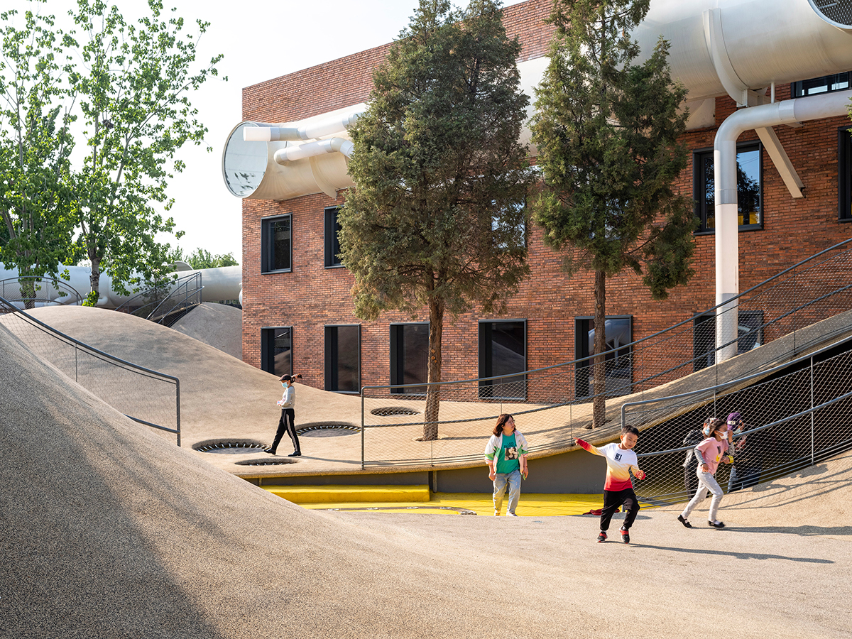 플레이스케이프는 베이징 북쪽에 있는 기존 산업단지 내부를 개조한 것이다. 운송 시설의 지원을 받는 1970년대에 건설된 곡물 저장 창고 단지이다. 우리 고객은 다양한 연령층의 움직임과 관련된 아동 발달을 관찰하고 지원하는 전문 의료 서비스 제공자였다.