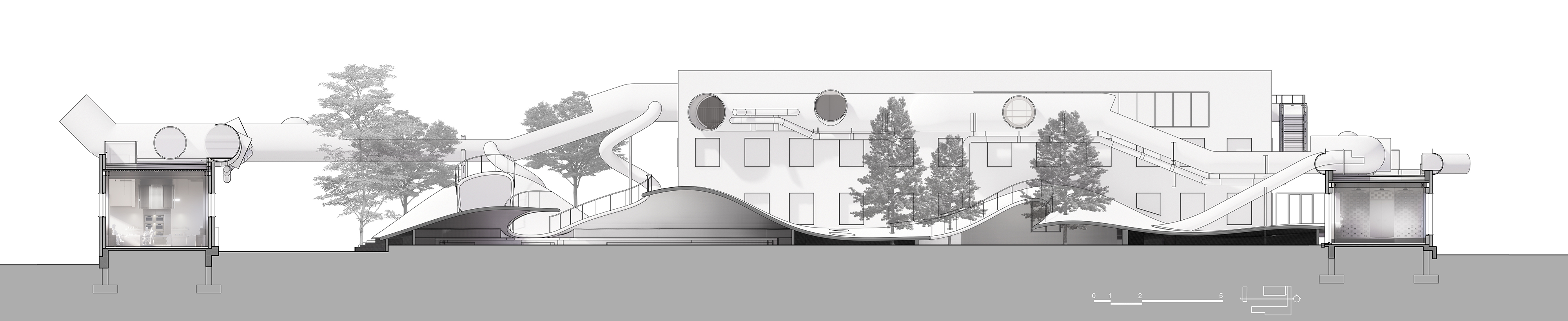세 가지 주요 건축적 개입은 놀이의 주제를 콘셉트에 포함시켰다.