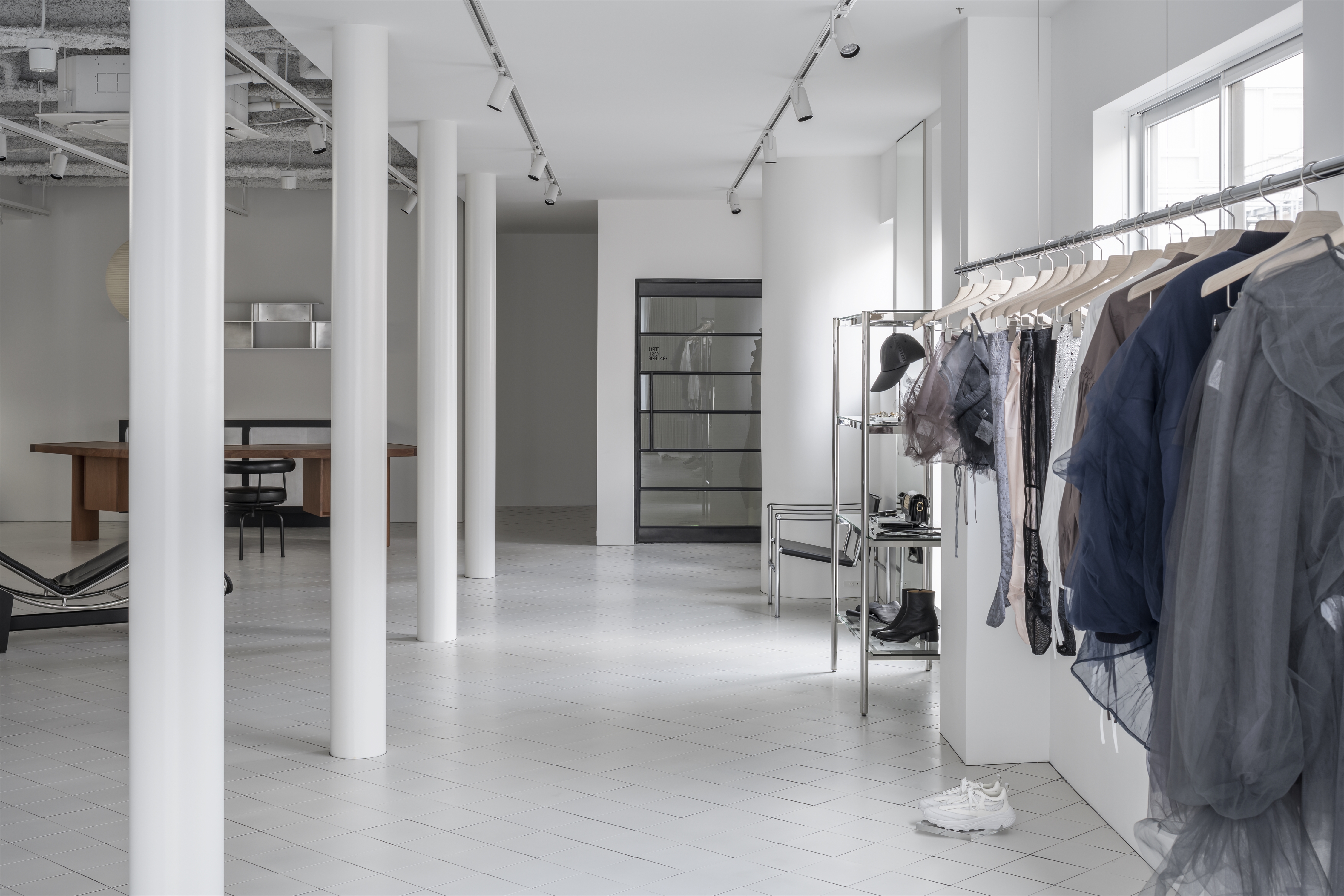 In order to use the space flexibly and allow staff members to operate the store alone, it was necessary that the entire space could be seen without any obstructions. We therefore created a plan to establish different zones without using any partition walls, through the continuity of pillars inspired by elements of modernist architecture such as columns, steel sashes, and variations in ceiling finishes.