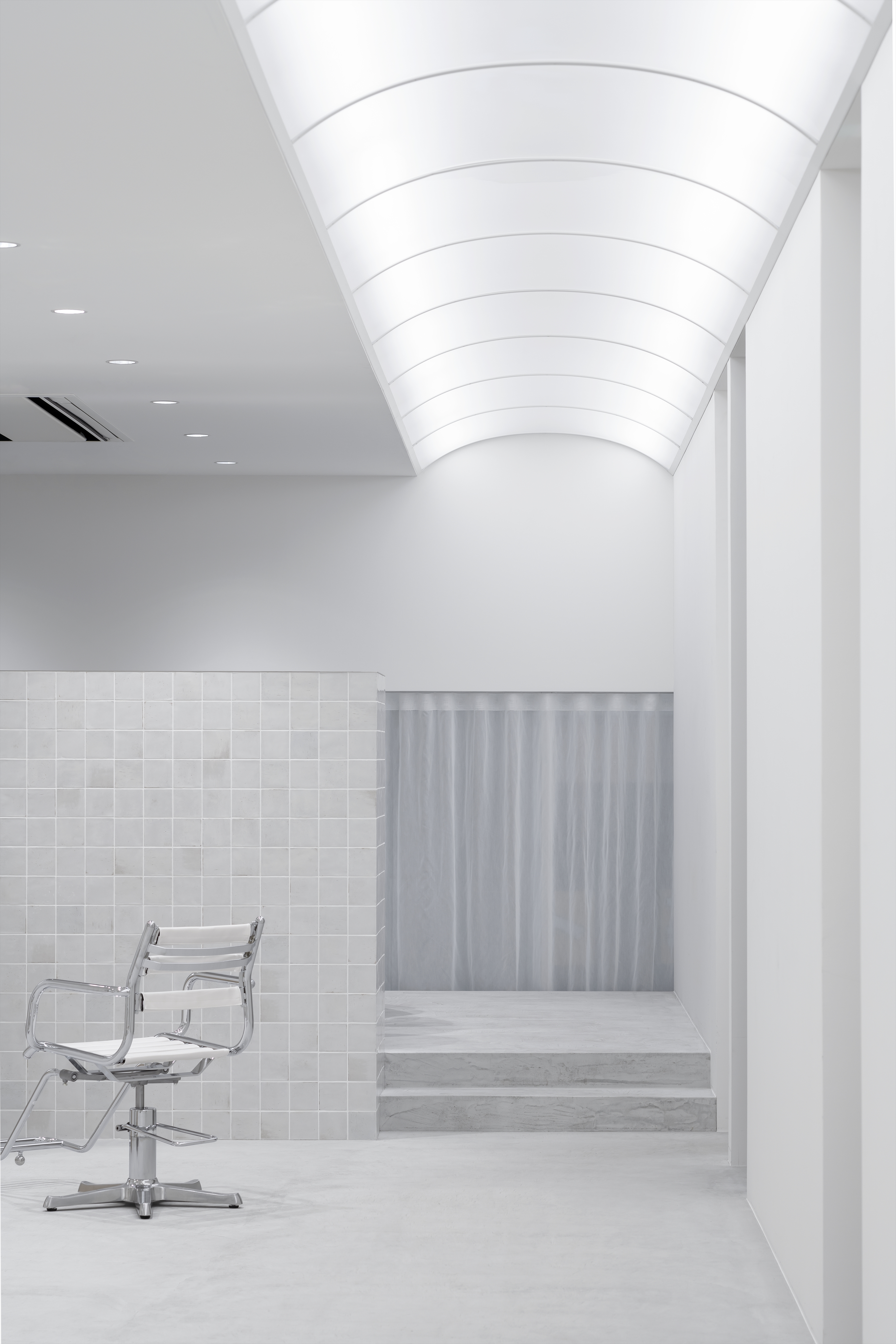 Abuilding facing Sendai's arcade shopping district, with a uniquely deep, dark space shut off from natural light, even from its only entrance facing the shopping district, has been transformed into a hair salon. It was to be opened first as a salon for a single hairstylist, expecting more workers and more uses of the space with time. Therefore, an adaptable design that would feel lively even when few people were present that maintained an elevated sense of a sophisticated hair salon was sought.