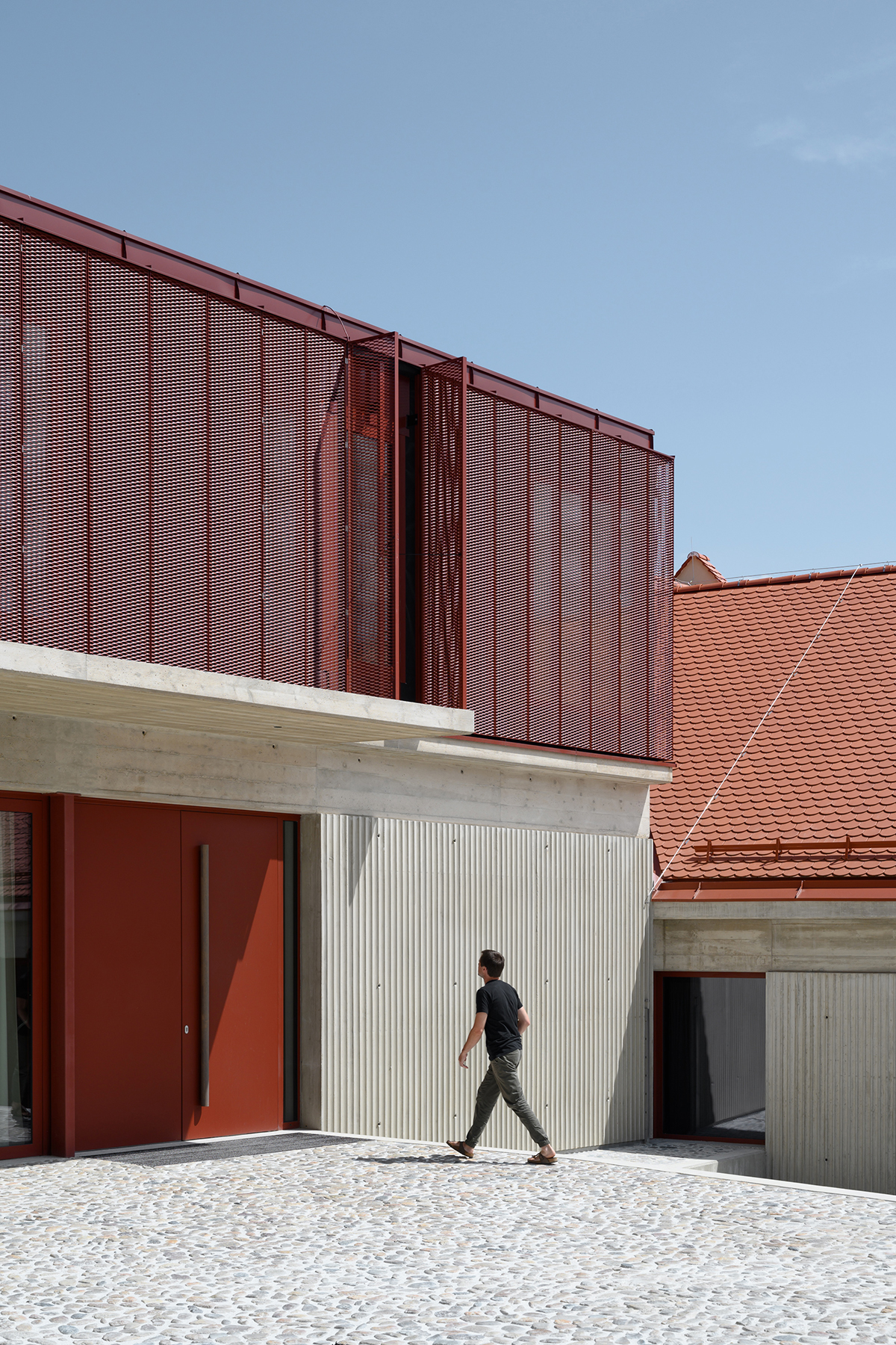 The selection of materials, inspired by diverse character of the old city center, ingeniously incorporates existing elements, thoughtfully reimagined for a contemporary context. Archaeological excavations unearthed numerous river pebbles, formerly used for paving the historic city center. To honor the area's heritage, these pebbles were reused, restoring Ptuj's traditional color palette to the streets, squares and also to the new cultural center. This sustainable choice also aligns with today's environmental imperatives. The architectural design of the building embraces simplicity, highlighting the fundamental elements of walls, cornices, and roofs. The building's aesthetic is deeply rooted in a tectonic logic, eloquently narrating the very essence of its construction. Surrounded by narrow streets, it invites visitors to engage intimately with its exterior. In response, the building features a profiled structure of visible concrete, accentuated by wooden semicircular formwork. This design choice not only humanizes the imposing walls but also encourages the gradual accumulation of patina over time, deepening its connection to the historical context.