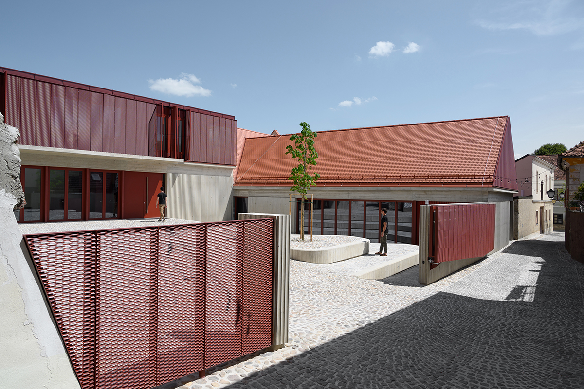 Revitalization of Old Glassworks, along with its adjoining streets and squares, brings new high-quality public spaces to the Ptuj's old town center. These spaces serve as a link between the castle hill, town, and river, fostering a vibrant city. Two key focal points are the more formal Vrazov trg square on one side and intimate ambiance of the Old Glassworks on the other, providing a harmonious contrast. Vrazov trg serves as the epicenter for cultural events and stands as a significant urban landmark. On the other hand, the Old Glassworks, with its courtyard, initially possesses an introverted character but can seamlessly open to the street through its large cantilevered doors during various events, transforming into a lively public square. Collectively, they shape a versatile space ideal for nurturing new cultural initiatives, whether for everyday use or special occasions.