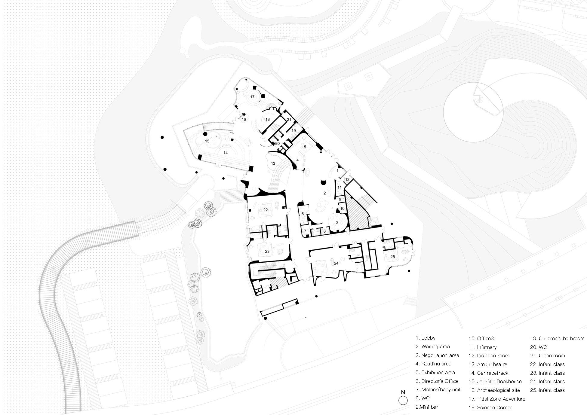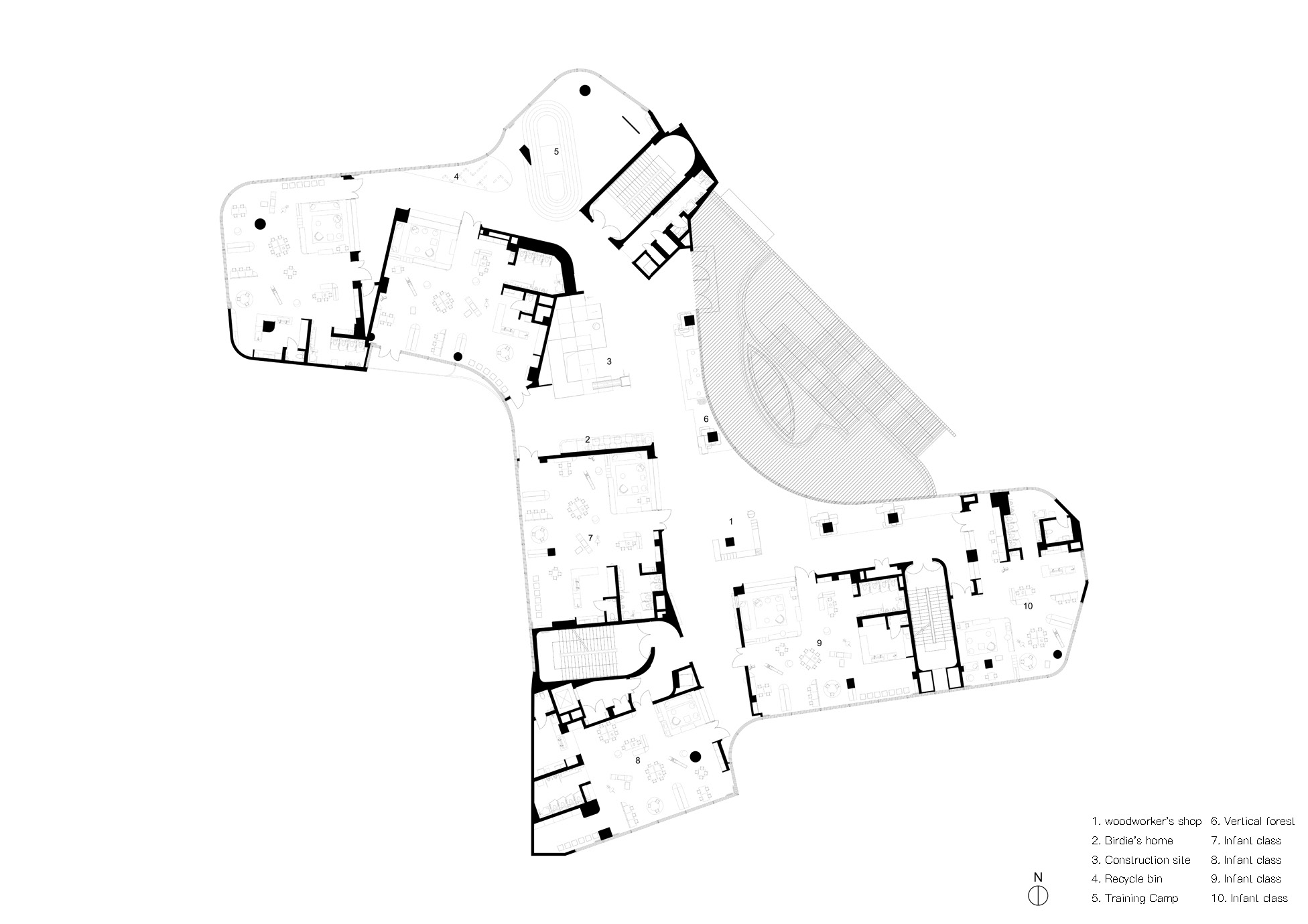 We tried to construct an interior organization with a system of public spaces to present a miniature city and society. We try to construct an indoor organization with a system of public space, presenting a miniature city and society. We hope that children can learn manners and proportion through public space, build friendship through sharing and respect, and develop a sense of scale and materialised aesthetic perception through physical measurement from an early age.