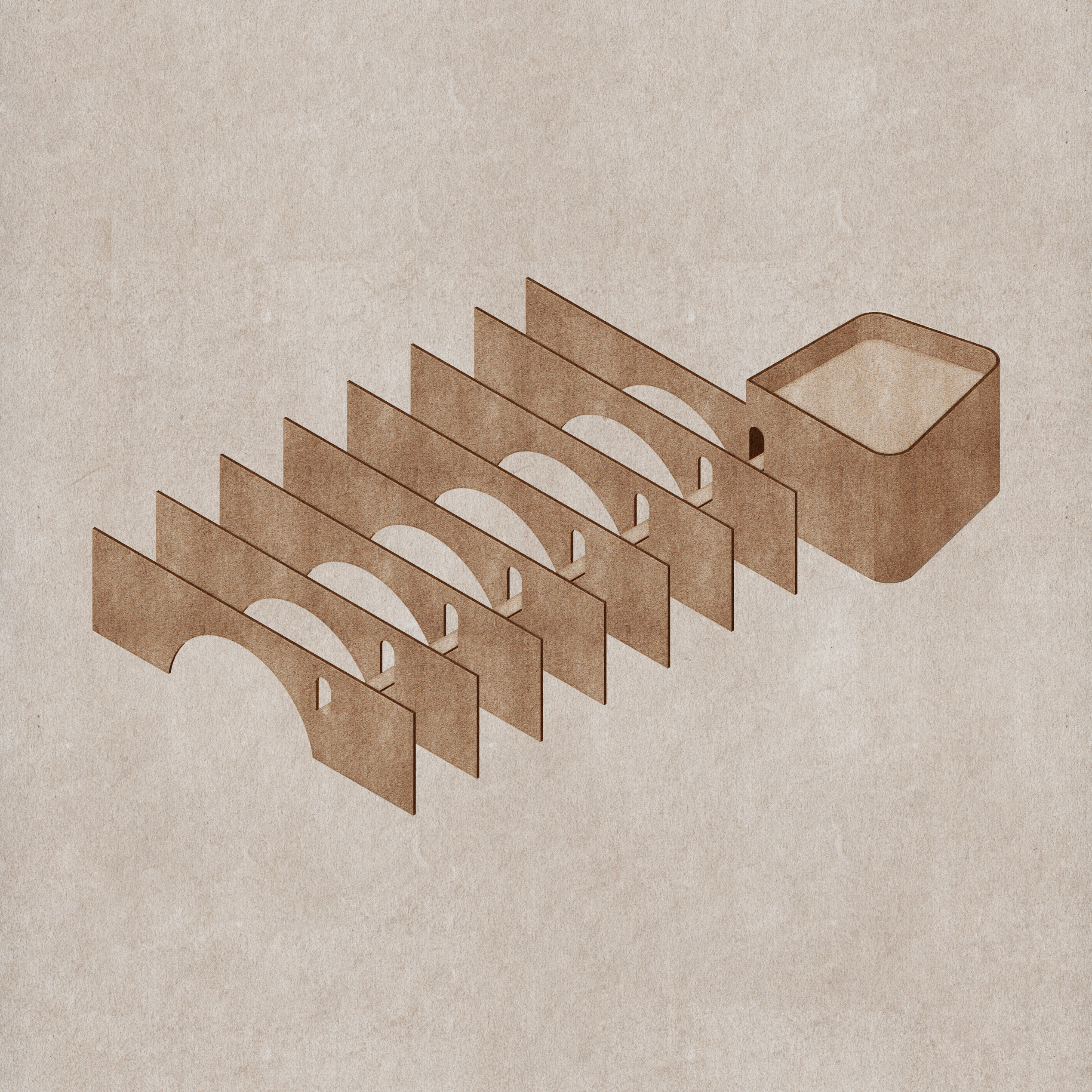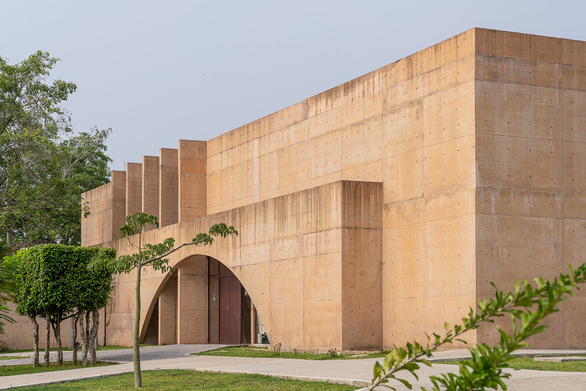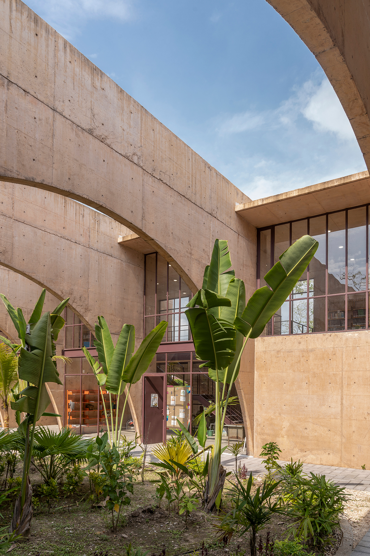 The project was conceived as a habitable sculptural piece, with an architectural program composed of workshops, multi-purpose rooms, a library, an auditorium, and an administrative area. These are developed through a simple structure, composed of eight monumental concrete panels perforated with semicircular arches.