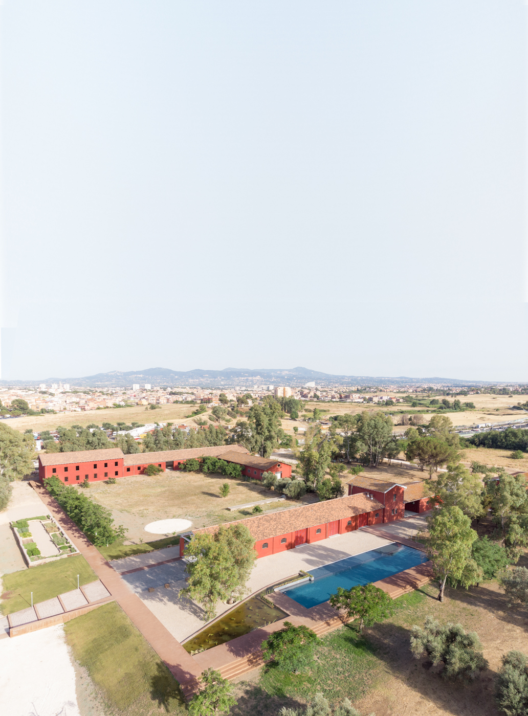 The treatment of the external façades of the existing buildings involves the use of the same red color typical of the Roman farmhouses on the different building materials, namely brick, tuff stone masonry and plastered surfaces, to restore a sense of volumetric unity.