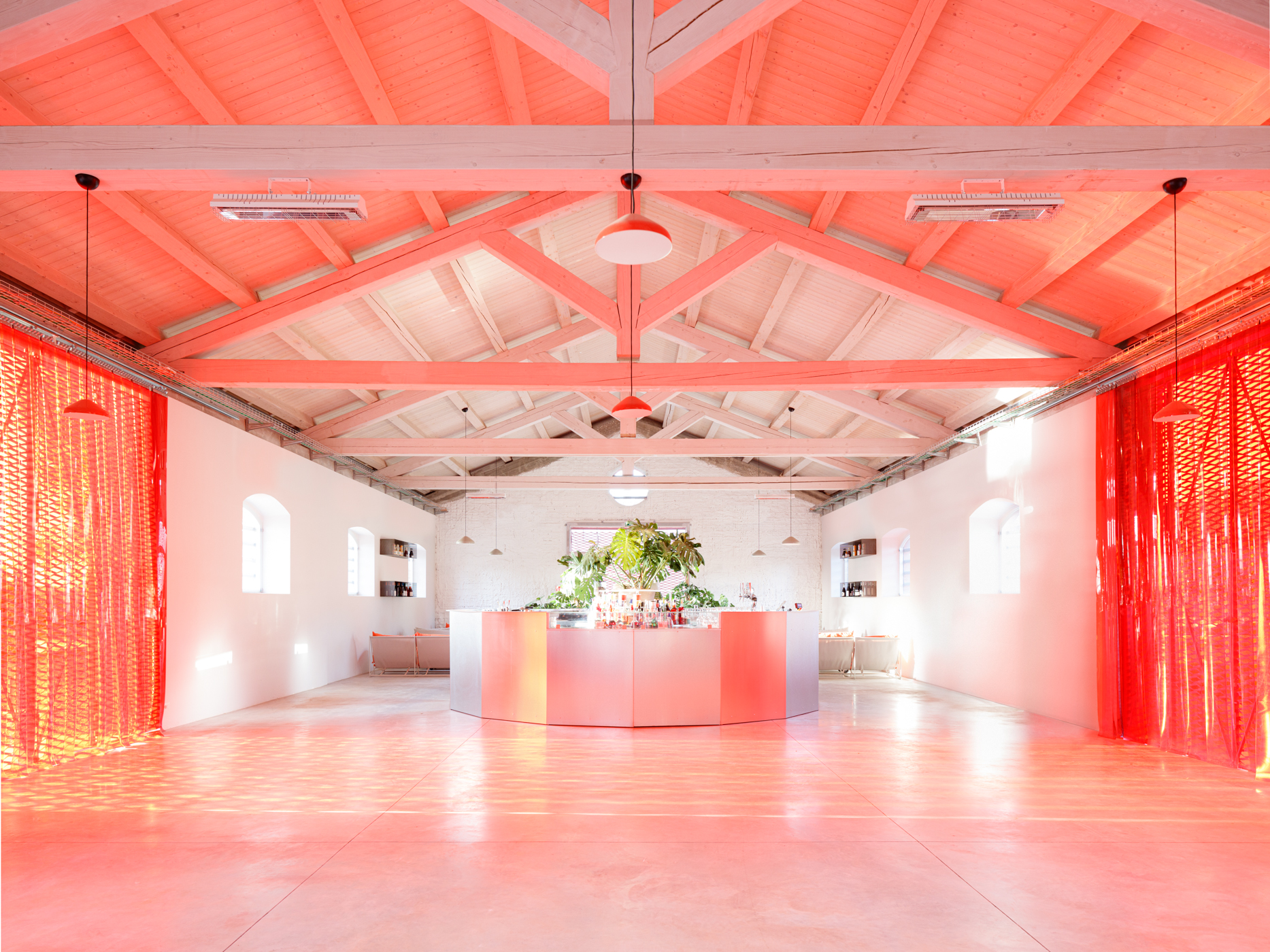The rehabilitation project also stands as an infrastructural sign, summarized in the inclusion of a circulation system, a porch measuring 110x55 meters within the farm, which is reconfigured precisely by the insertion of this archetypal figure of Roman architecture. The portico creates a new courtyard between of the existing buildings, defining a space where fragments of the landscape are combined to make a garden. Marking a distinct break with the unplanned development of this urban area, the projects brings a certain degree of order and establishes new relationships between the interiors of the buildings, the protected area of the courtyard and the noisy surroundings. It is an attempt at defining emptiness not as negation, but as the condition to allow new relationships between the existing architecture, agricultural heritage, plants and humans to take place. A first version characterized by a walkway concluded on four sides and a porch resting on a double colonnade was followed by several iterations of the project. The envisioned portico had to adapt to new functional and cost containment needs, and finally became a path, but the idea of the system somehow managed to resist the various modifications and possibilities of implementing the project.