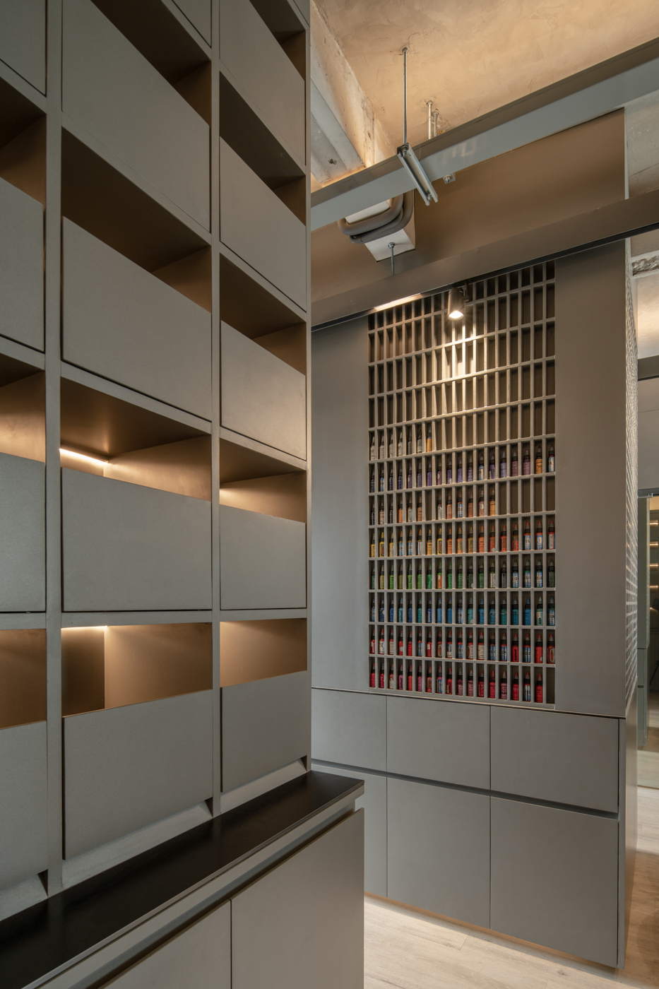 낮에는 카페 역할을 하고 밤에는 바로 바뀐다. 개방된 조명 공간은 낮과 밤 모두 매력적인 분위기를 조성하도록 설계되었다. 일관된 회색 색상 체계는 원래 상점과의 연결을 유지하고 벽돌 바닥을 사용하여 생동감을 더한다. 창문과 곡선 유리의 통합은 추가 좌석을 제공하고 저녁에는 아리 골목의 활기찬 분위기를 포착한다. 기본적으로 이 개념은 적응력과 성장을 중심으로 전개되며, 밤낮으로 다양한 요구를 충족시키는 역동적인 공간을 제공한다. 이는 변화하는 환경에 적응하기 위해 매력적인 분위기를 조성하고 지속적인 개발을 가능하게 한다.