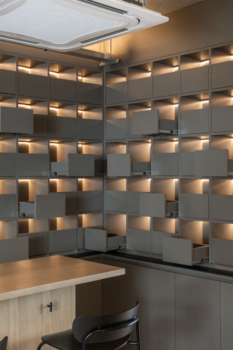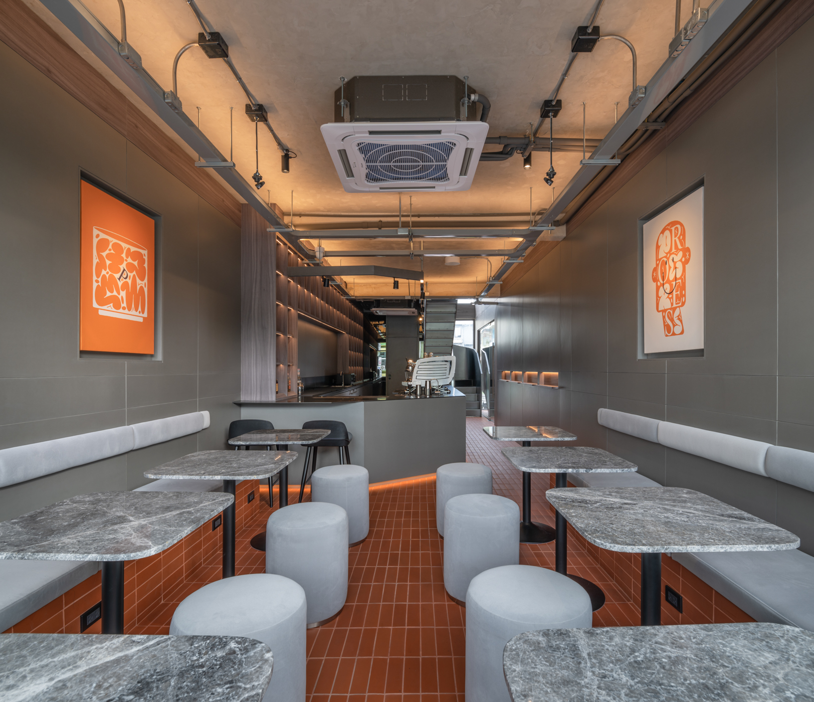 낮에는 카페 역할을 하고 밤에는 바로 바뀐다. 개방된 조명 공간은 낮과 밤 모두 매력적인 분위기를 조성하도록 설계되었다. 일관된 회색 색상 체계는 원래 상점과의 연결을 유지하고 벽돌 바닥을 사용하여 생동감을 더한다. 창문과 곡선 유리의 통합은 추가 좌석을 제공하고 저녁에는 아리 골목의 활기찬 분위기를 포착한다. 기본적으로 이 개념은 적응력과 성장을 중심으로 전개되며, 밤낮으로 다양한 요구를 충족시키는 역동적인 공간을 제공한다. 이는 변화하는 환경에 적응하기 위해 매력적인 분위기를 조성하고 지속적인 개발을 가능하게 한다.
