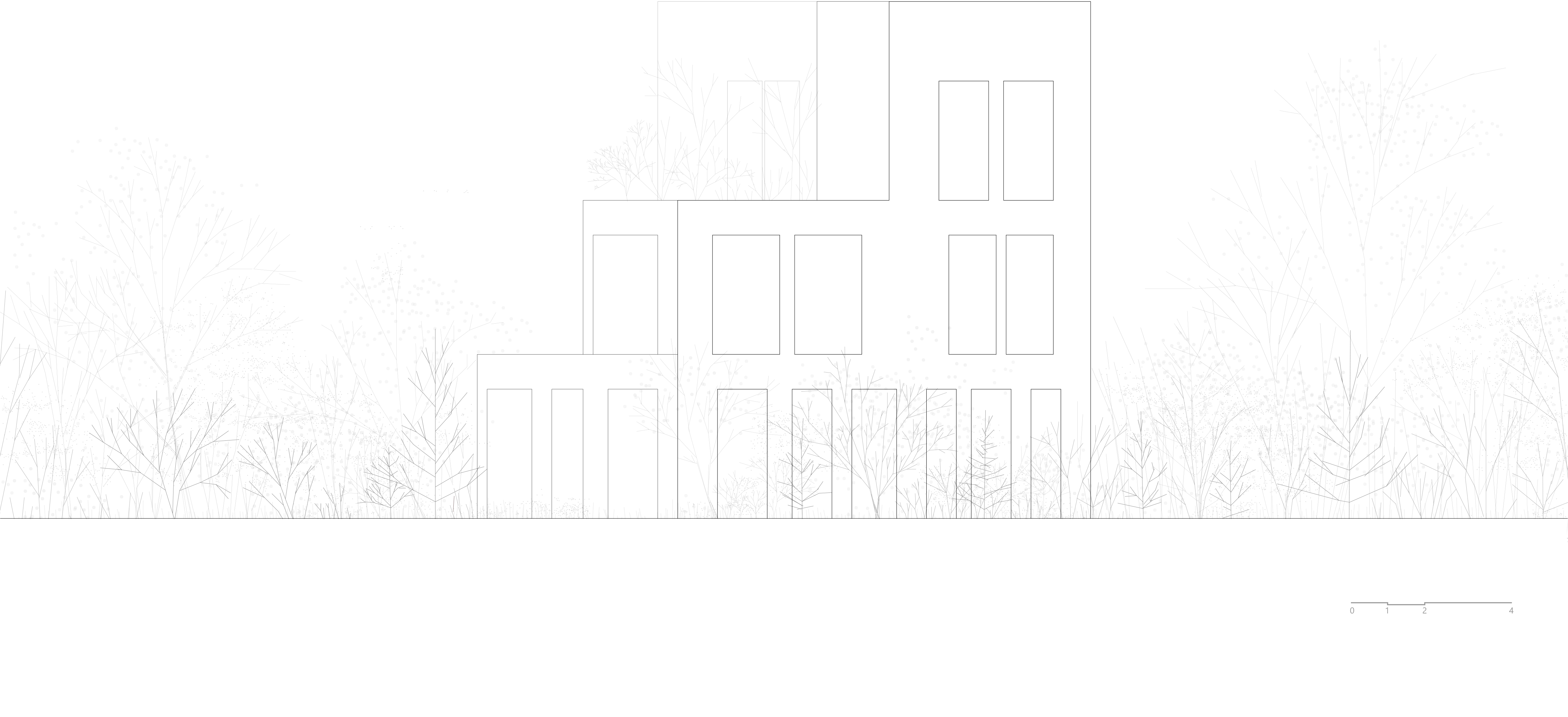 The third floor continues the strategy of shell, hole, and void, which perfectly integrates with moveable panels and presents diversity and flexibility in the space. In the morning, the fully open panels allow natural light and seasonal winds to pass through the building, giving a soft living experience; in the afternoon, the semi-opened panels filter sunlight and provide a space for meditation, yoga, and Tai Chi; at night, the closed panels create an independent space for reading, relaxing, and interacting with the starry sky. This multi-functional hall captures and records a new living experience, giving an unforgettable emotional sense and stimulating the mind, body, and soul.