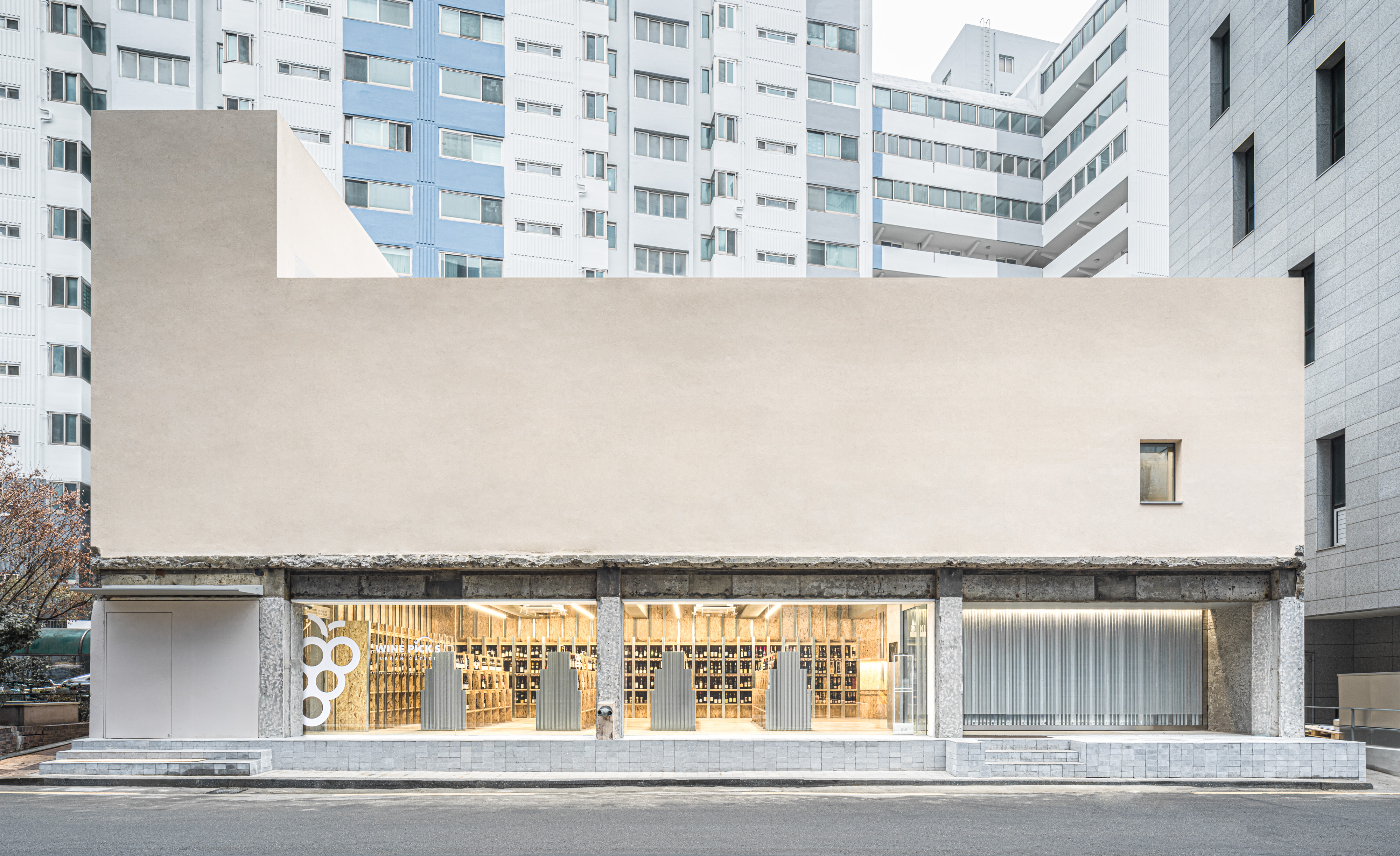 The operation of delaminating and ornamentalizing wall assembly elements into interior fixtures is not to simply display the rawness of these materials but to achieve refinement and resoluteness through assembly of operations that are in tune with the material culture of Seoul.