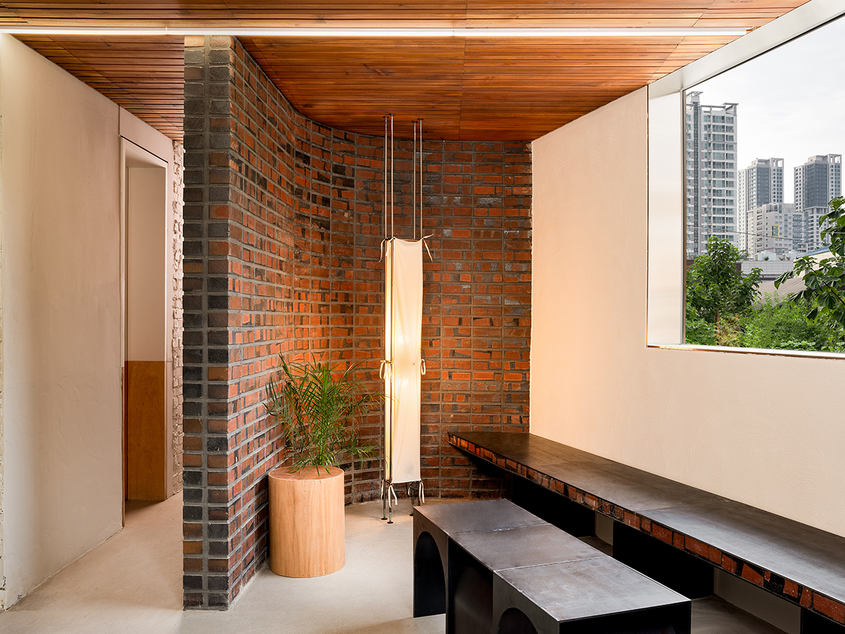 Stainless steel, discolored bricks and redwood are used as finishing materials to blend properly with previous traces. Bricks filled at different times on the second floor are exposed to slightly different brick patterns for each production period, giving the impression of feeling the passage of time.