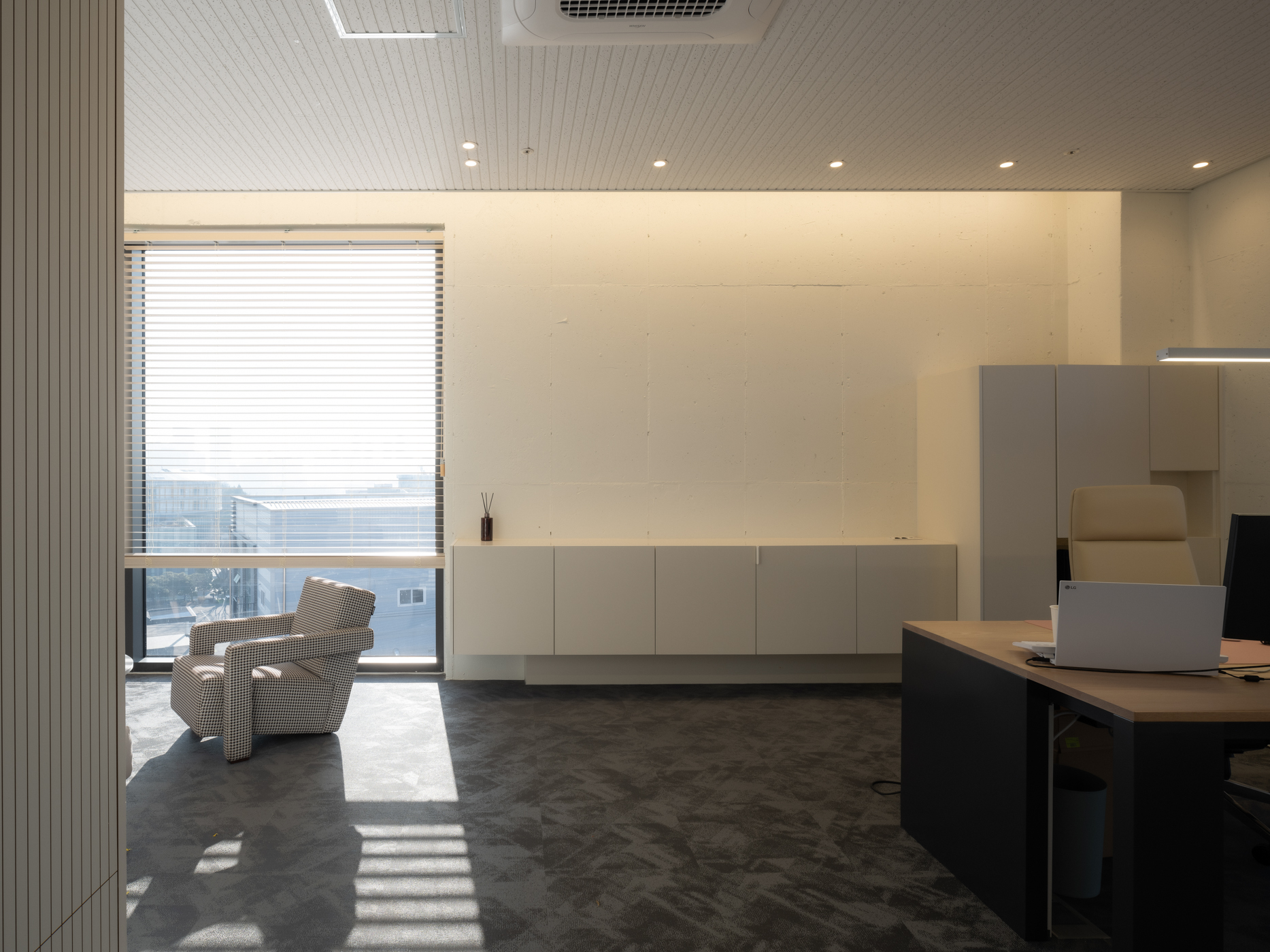 기단 위에 선 두 직육면체와 자연을 담아낸 매스 사이의 “틈”