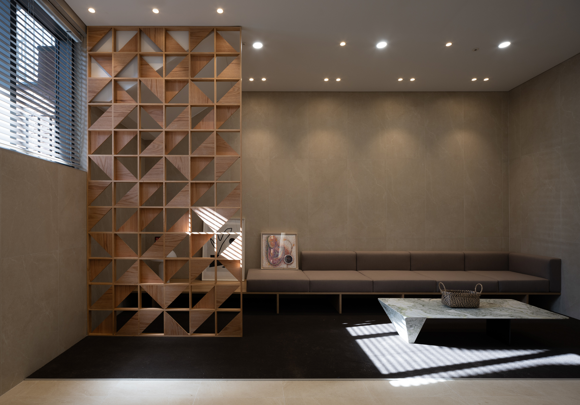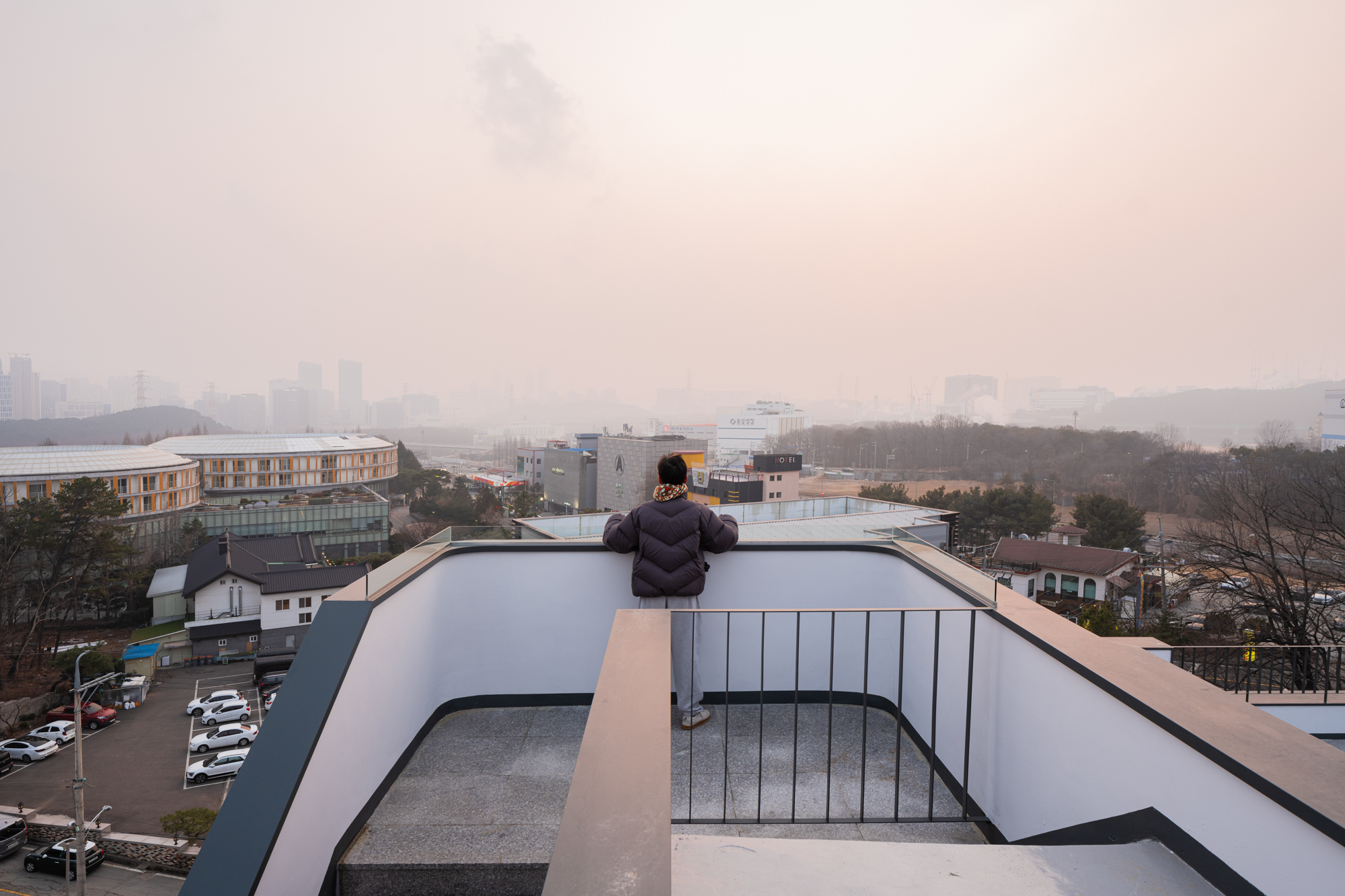 기단 위에 선 두 직육면체와 자연을 담아낸 매스 사이의 “틈”