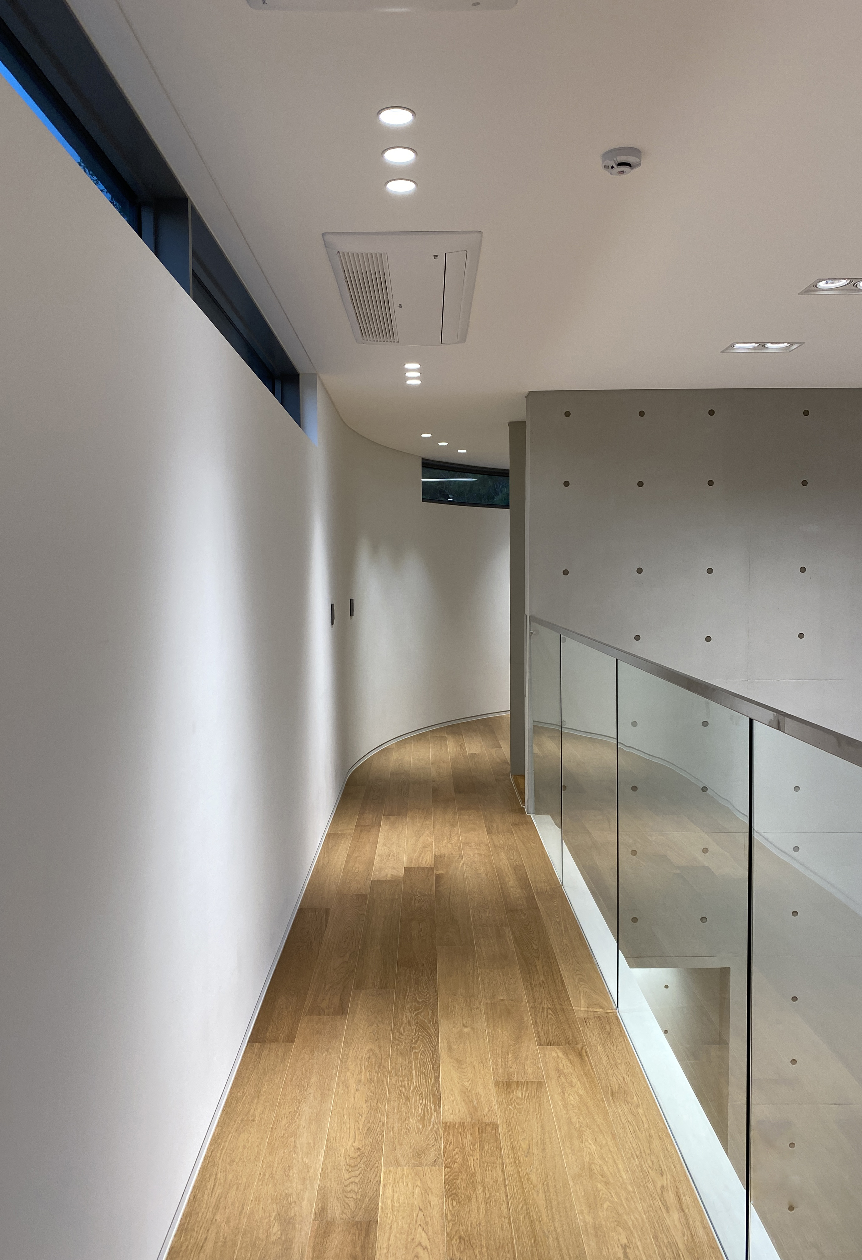 수정된 계획안은 각 층의 각도를 조금씩 틀어서 최대한 남향에 가깝게 건물을 회전한 안이었다. 대지의 형상과 풍수를 동시에 만족시키는 안이지만, 건축주는 한쪽으로 치우쳐져서 비틀어진 형태와 평면을 선호하지 않았다. 고민 끝에 어느 하나의 방향에도 구속받지 않는 곡선을 도입하였다. 정남향을 중심으로 한 원호가 동남쪽에서 서남쪽까지 그려졌다. 이 곡선 파사드는 서향으로부터 건축을 자유롭게 함과 동시에 자연스럽게 태양의 궤적을 따라가며 풍부한 자연 채광을 받아들인다. 우연하게도 원호의 중심이 메리모나크 마리나 해상 계류장쪽으로 향하게 되어 기존의 안보다 전망도 훨씬 좋아졌다. 완공 후 얼마 지나지 않아 대지 바로 앞 부지의 공사가 시작되었고, 1층 높이까지 도로쪽(서남 방향) 전망을 가리는 상황이 발생하였다. 결과적으로 정남향을 중심으로 한 곡선 형태의 파사드 덕분에 인접 건물로부터 조망권의 피해를 최소화할 수 있었다.