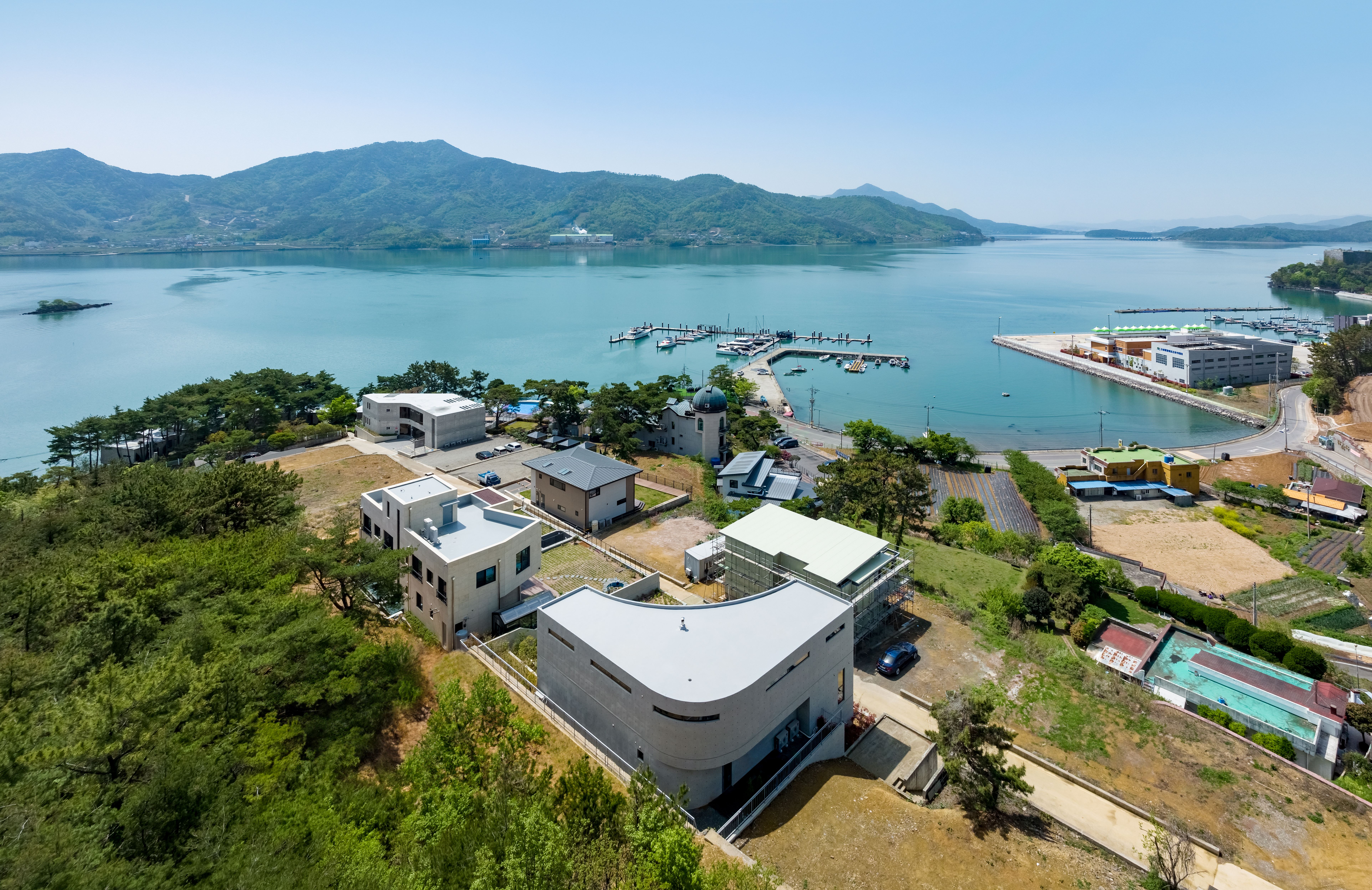 대지는 경남 고성군 회화면 봉동리, 당항포 바다가 바라보이는 언덕에 자리잡고 있다. 서쪽으로 당항포 국민관광단지, 북쪽으로는 금봉산 줄기에 위치한 노벨CC, 남쪽으로 메리모나크 마리나클럽과 해안가에 마리나 계류장이 있다. 건축주는 인근 도시 출신으로 서울에 거주하며 중소기업을 운영하는 사업가로서 바다를 좋아해서 고향과 가까운 곳에 회사 직원들을 위한 숙소 겸 가족들의 휴식공간으로 사용할 공간을 짓고자 했다.
