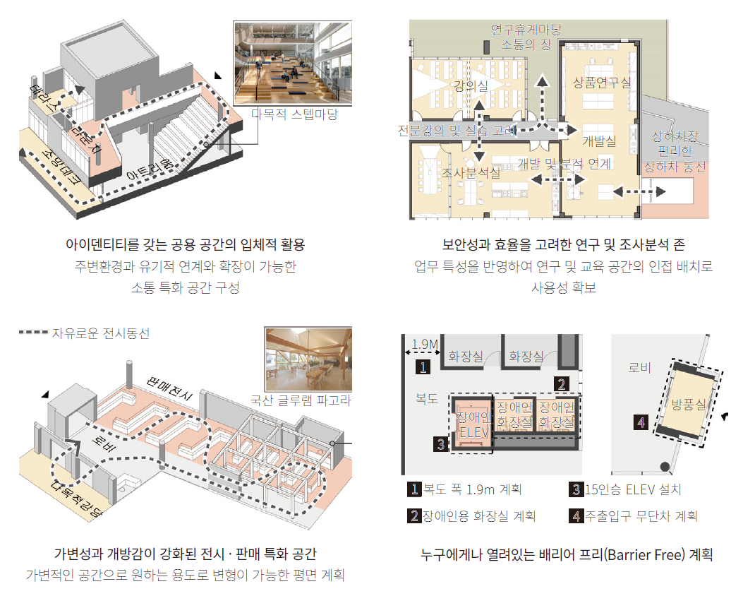 평창역과 금당산 사이에서 도시와 자연의 경계를 허물고 임업인들과 방문객, 더 나아가 지역 사회가 하나 되어 소통하고 협력하는 산양삼 융복합 지원센터를 제안한다. 휴식과 교류의 장으로 외부 공간을 활용하고 산양삼에 대한 다양한 연구와 효과적인 판매전시가 이뤄져 평창의 지역경제발전을 지원한다. 오랜 시간 연구에 집중하는 임업인과 연구인들의 피로와 스트레스를 풀어주며, 다각적인 만남 및 교류를 통해 지역 사회와 공존하는 평창의 새로운 활력이 될 것이다.
