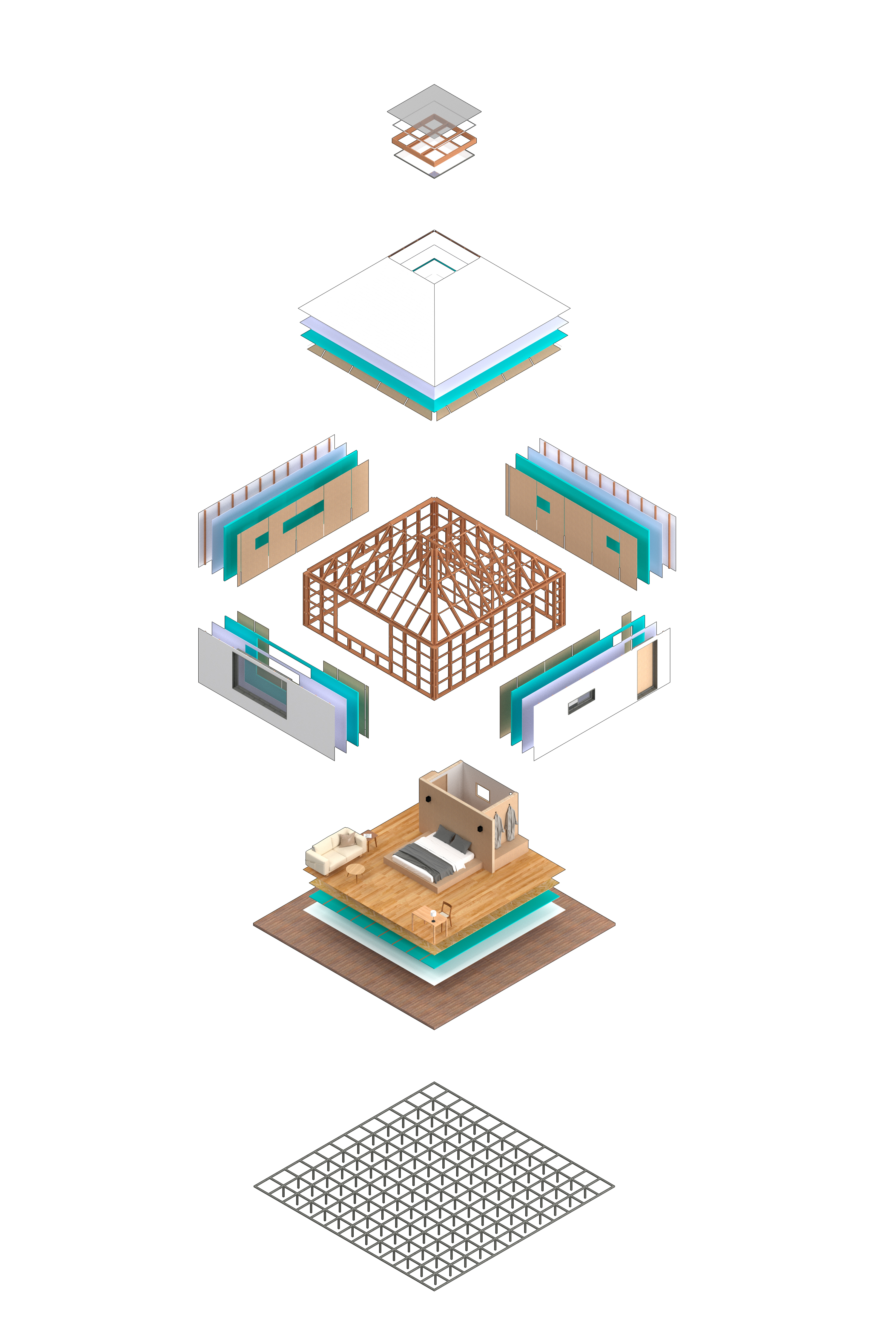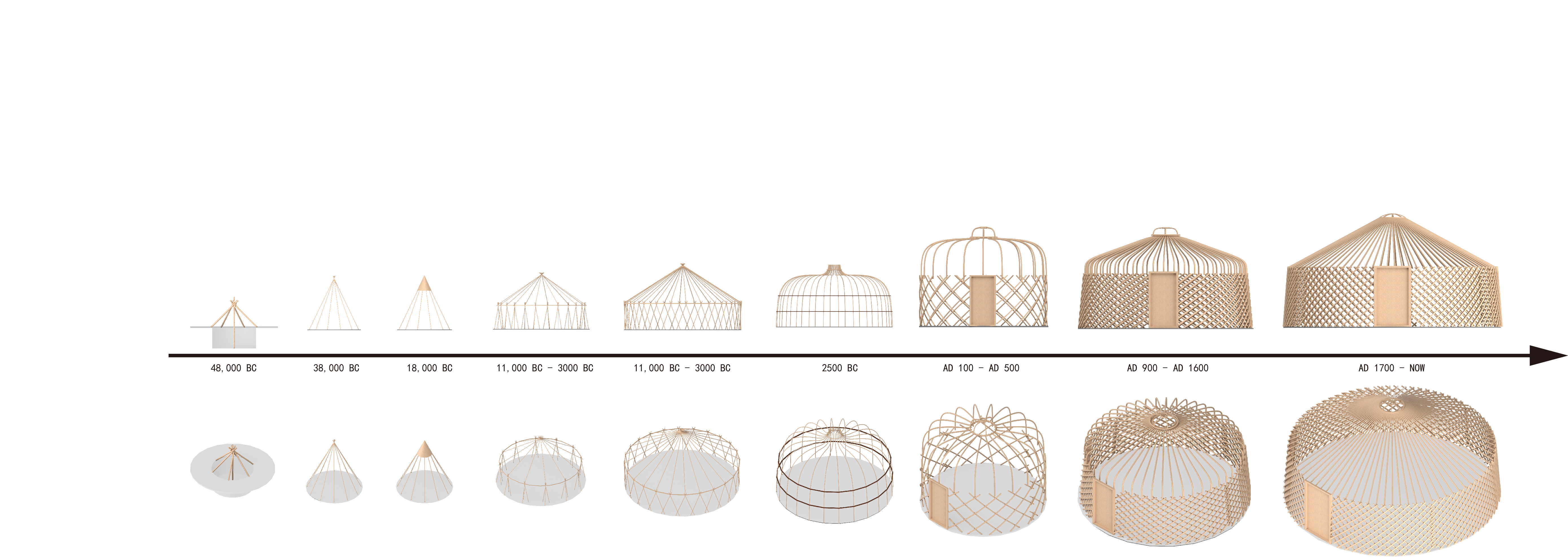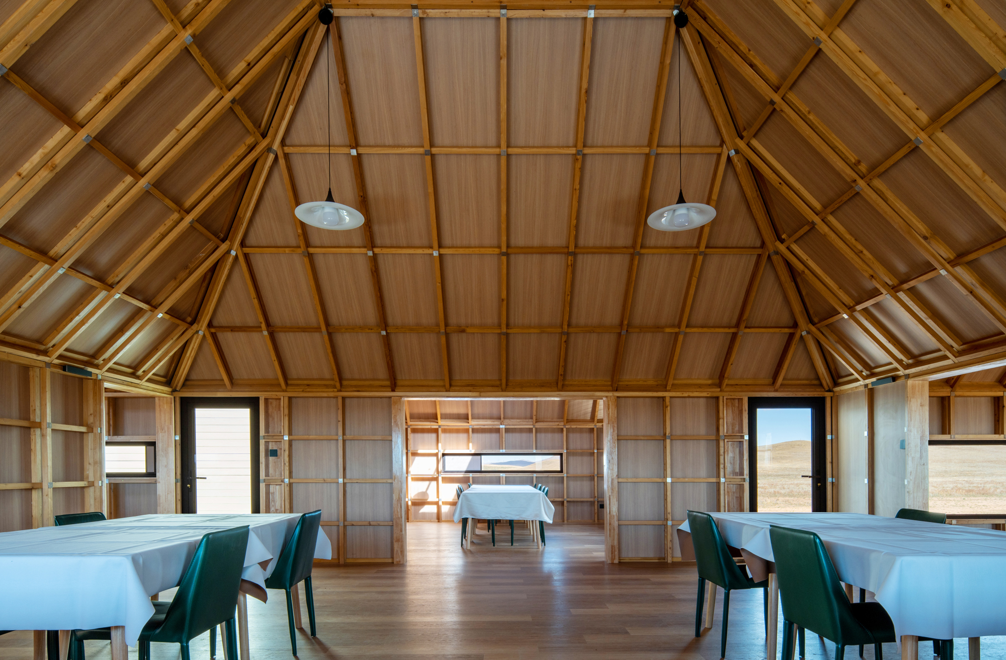 목축업을 하는 지역의 지속 가능한 발전의 해결책은 어디에 있을까. 목축지는 지역 고유의 기후, 자원, 주거, 생산, 문화가 통합되면서 고유한 속성을 가지고 있지만, 지속 가능한 발전에 대한 체계적인 분류와 창의적인 탐색이 시급하다. 혹독한 기후를 가진 목축지는 자연과 자원, 사회에 적합한 전통적 경량 조립식 건물 시스템을 가지고 있는데, 이를 게르(Ger)라고 한다. 한편, 이번 프로젝트는 이러한 게르를 유닛형 평면으로 조직하고 확장 가능하도록 만들어 현대 목축지에 적용할 수 있도록 만들어진 프로토타입이다. 프로토타입에 사용된 버드나무 가지와 생가죽 로프는 일체형 접착식 목주를 조립식 강재 부품으로 대체하고, 직교로 쌓고 결합하여 안정적인 구조시스템을 구축한다. 조립이 용이하고 가볍기 때문에 대형 장비가 없이도 초원에 신속하게 시공할 수 있다. 일교차가 큰 목축지 기후에 따라, 저온 복사 전기 난방 필름으로 내부의 난방과 단열을 조절하고, 무선 원격 지능형 제어시스템이 적용되어 있어 에너지 소비 데이터를 정확하게 모니터링하거나 수집할 수 있다.