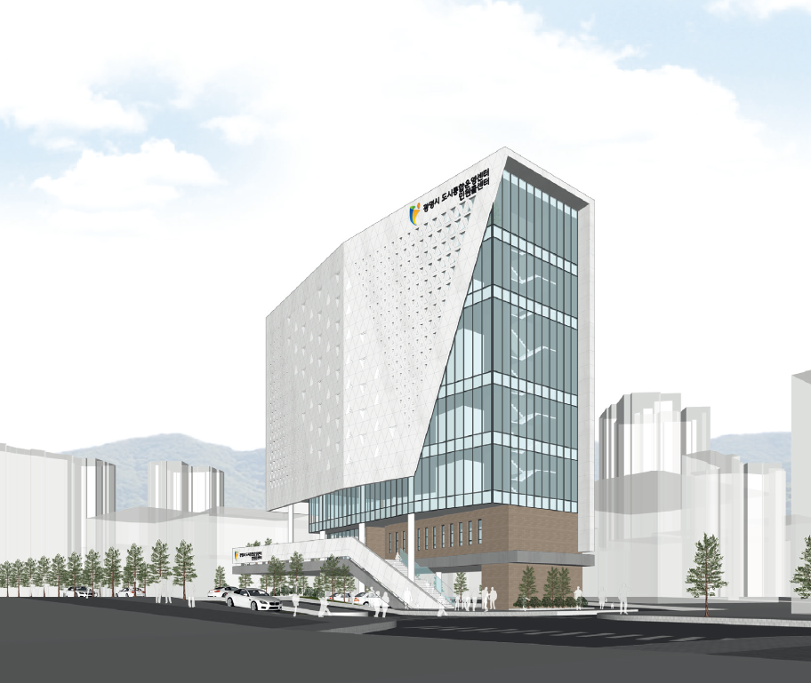‘도시의 눈’의 역할을 하는 도시통합운영센터의 아이덴티티를 반영하여, 투명한 눈동자를 눈꺼풀이 감싸는 것처럼 유리 커튼월로 구성된 업무 공간을 타공패널로 이루어진 스킨으로 감싸 ‘광명시 도시의 눈’이자 광명시의 랜드마크로 발돋움 할 수 있는 디자인을 추구하였다.