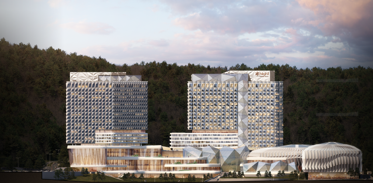 강원랜드 주변 천혜 자연환경과 결합하여 ‘자연속에 스며든 보석’의 개념을 갖고 카지노 호텔의 상징성과 그랜드 지구 외관의 통일성을 부여하고자 했다. 이를 위해 기존 이미지를 전면 개선하여 상징적이고 고급스러운 디자인을 계획하였으며,