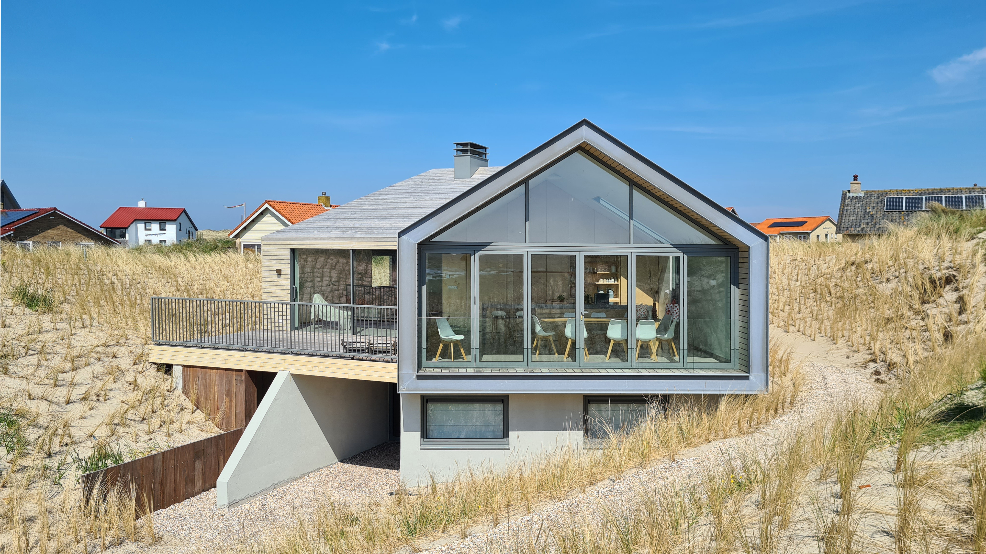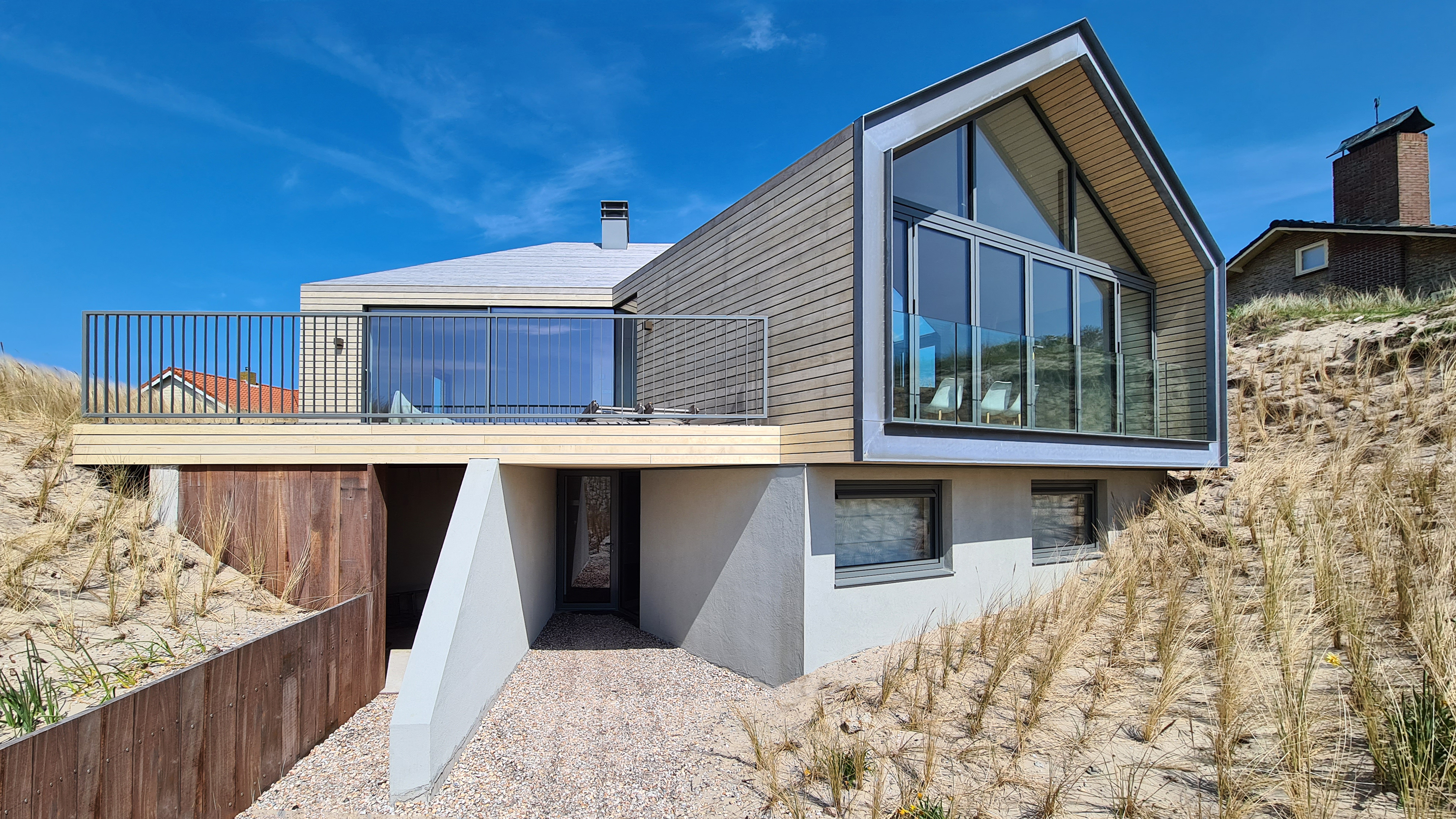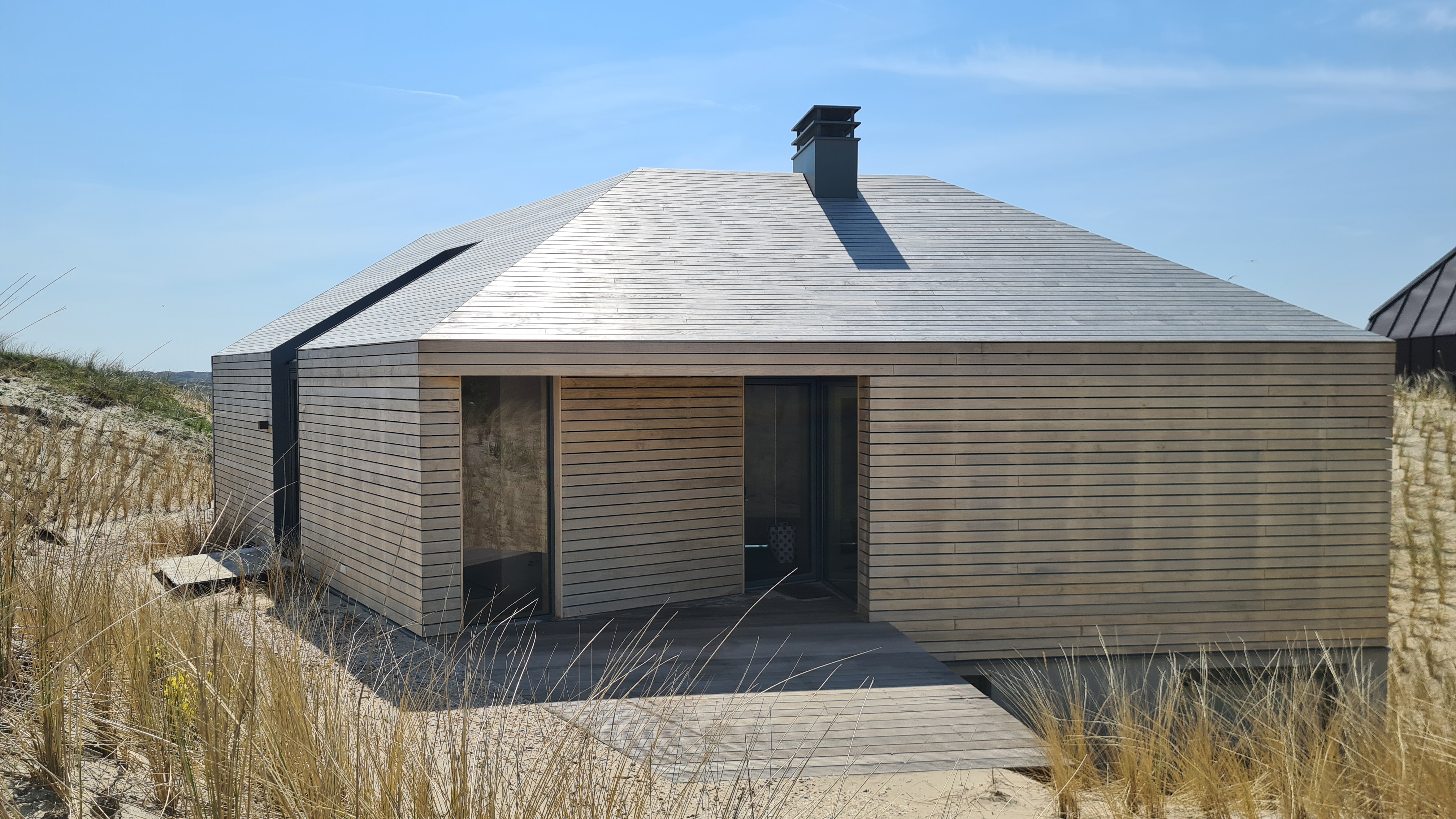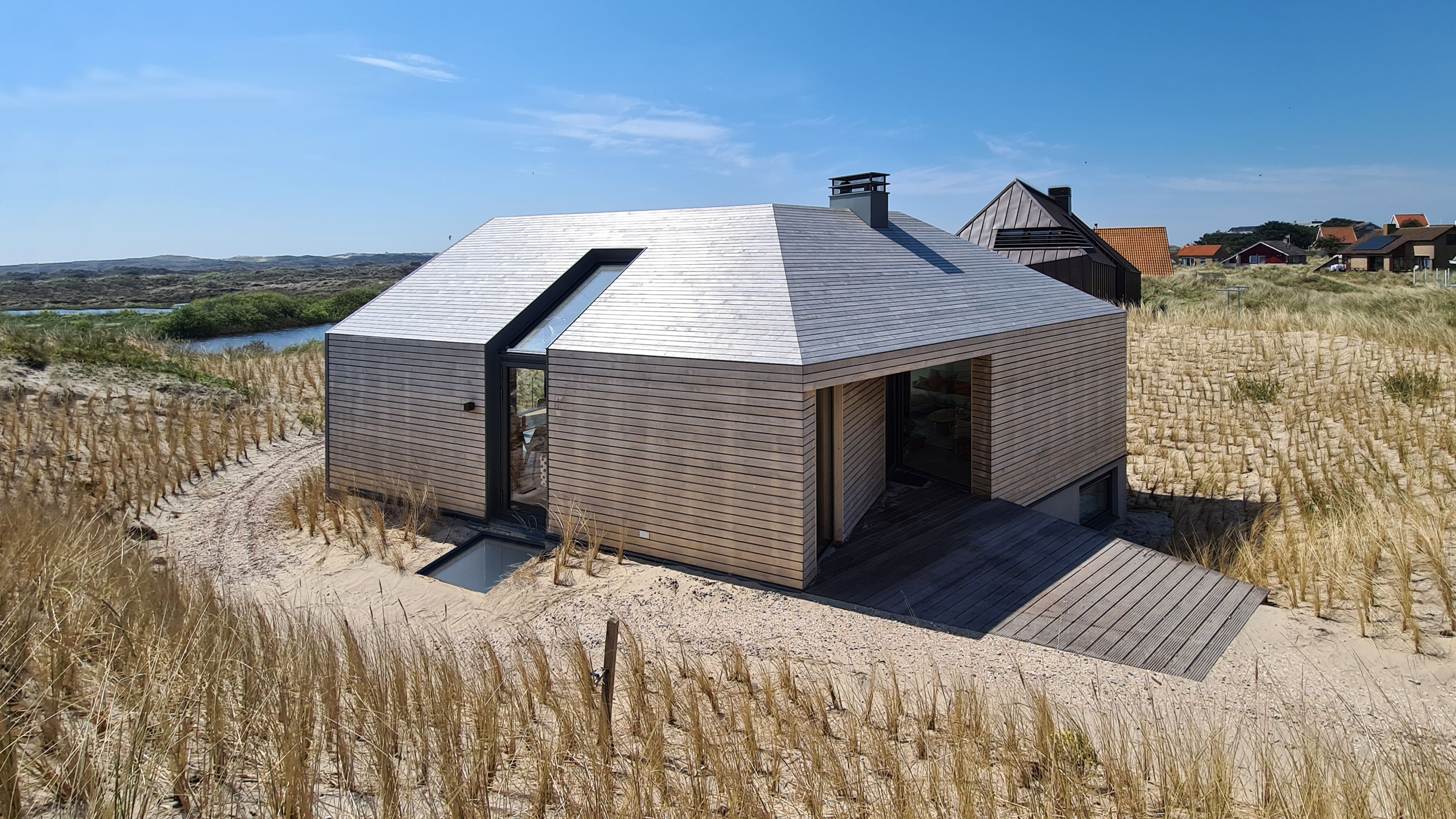 The challenge of this project was to create a sustainable vacation home on the island of Terschelling, seamlessly integrating into the dune landscape of West Aan Zee while maximizing the breathtaking views. The result is a restrained and intimate dwelling, whose design and material selection harmoniously blend with its surroundings. The metaphor of the "hermit" guided the concept: an ostensibly closed natural structure nestled in the sand, yet upon closer inspection, revealed surprises.