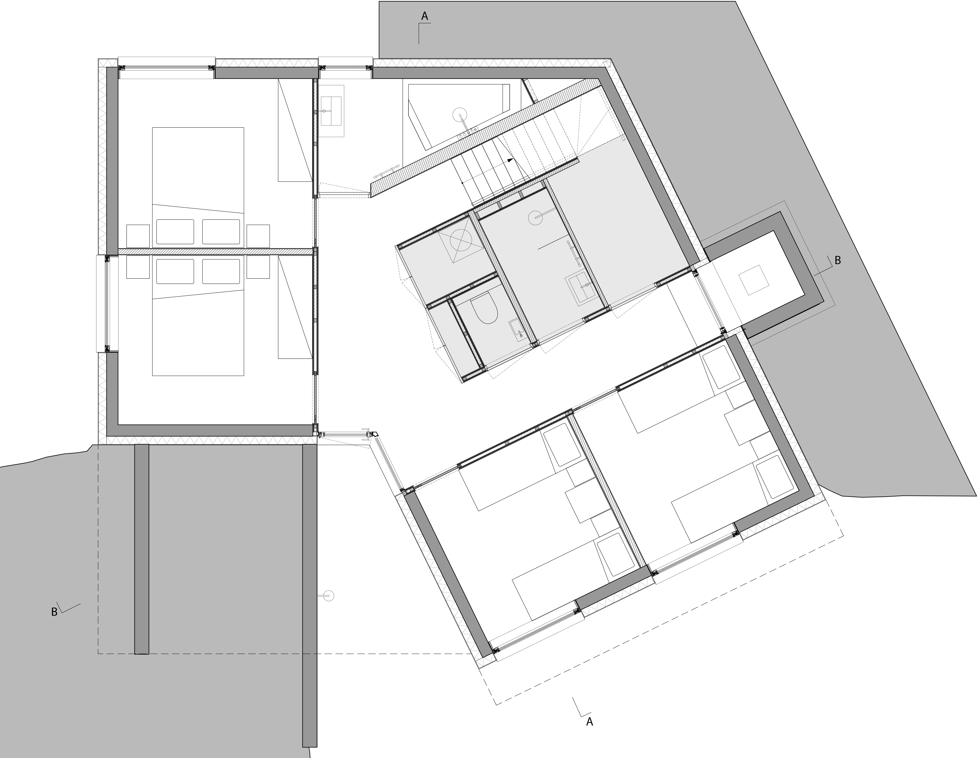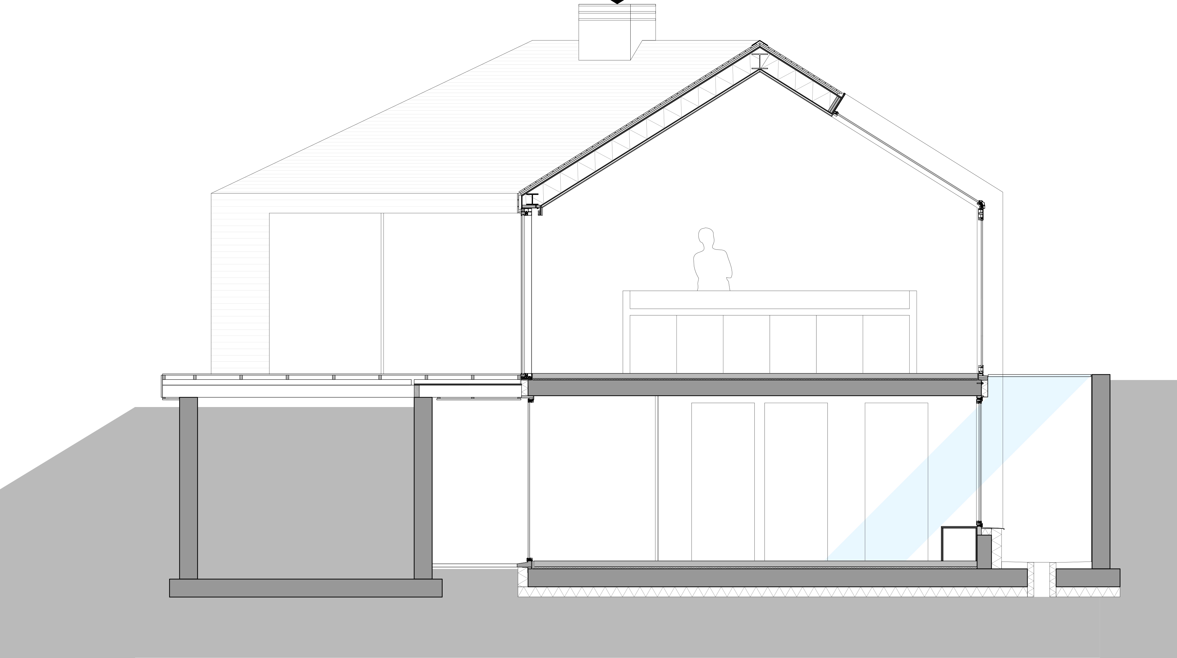 The task was to achieve a net-zero energy home with a zero-carbon footprint. Through good insulation, proper orientation, a heat pump, and burying the ground floor, an energy-neutral building was realized. By installing solar panels on the adjacent existing dwelling, also owned by the client, a net-zero energy balance was achieved.