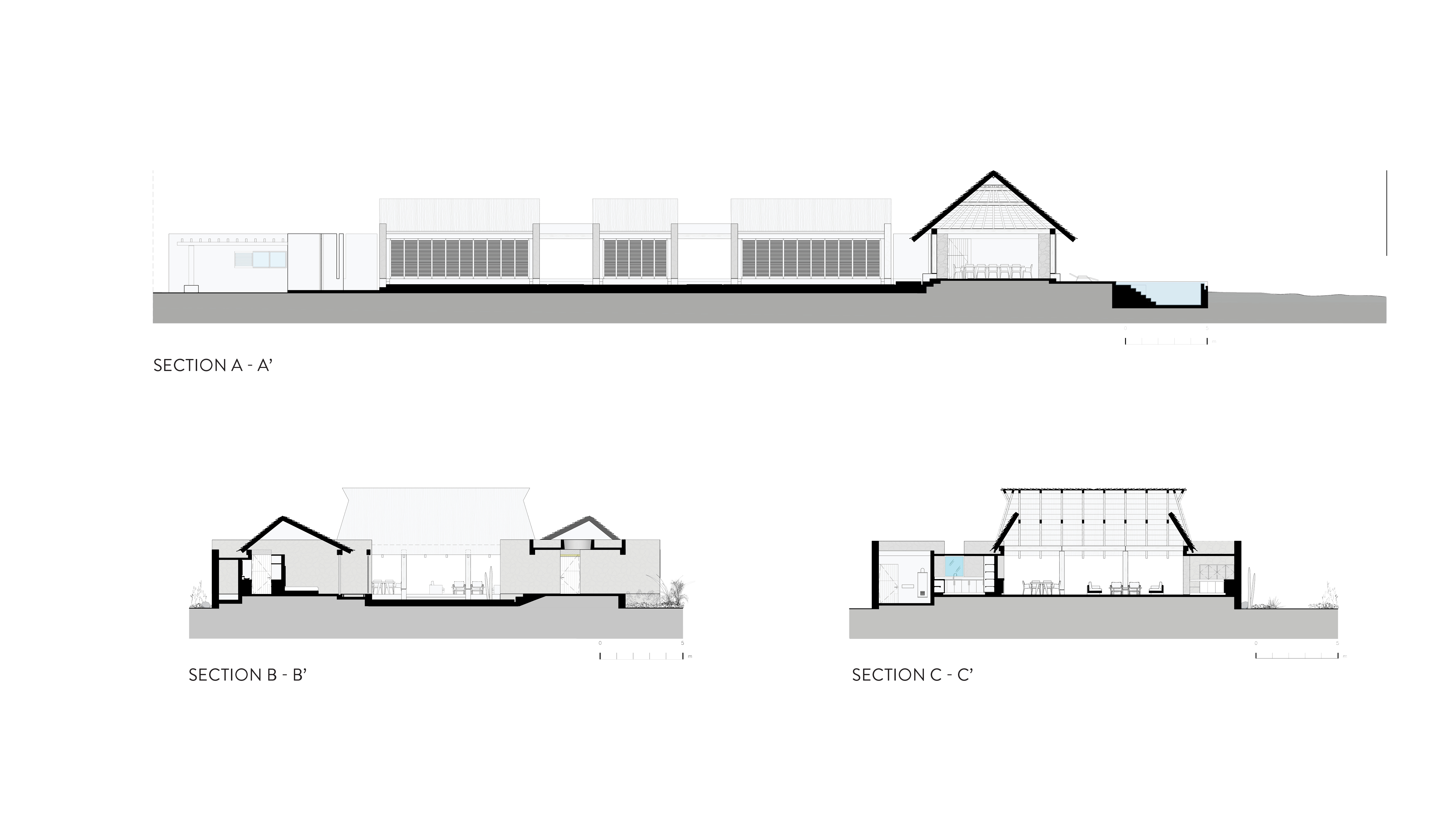 The pavilion's design aimed to create a tectonic manifestation of Oaxaca’s craftsmanship, employing local materials and straightforward constructive systems, displaying significant haptic expressiveness. Masonry "solids" flank habitable spaces, set atop a concrete slab, establishing a horizontal axis throughout the project. The volumes and stone walls visually connect the structure to the site, while the spaces between are covered in the traditional method of constructing wooden and palm-thatched palapas. The pavilions are complemented by private terraces facing the botanical garden, delimited by the use of wooden lattices. The resulting tectonic assembly communicates an anchoring to the ground, ascending with defined wall edges and gently fading into the sky via the palm thatching.