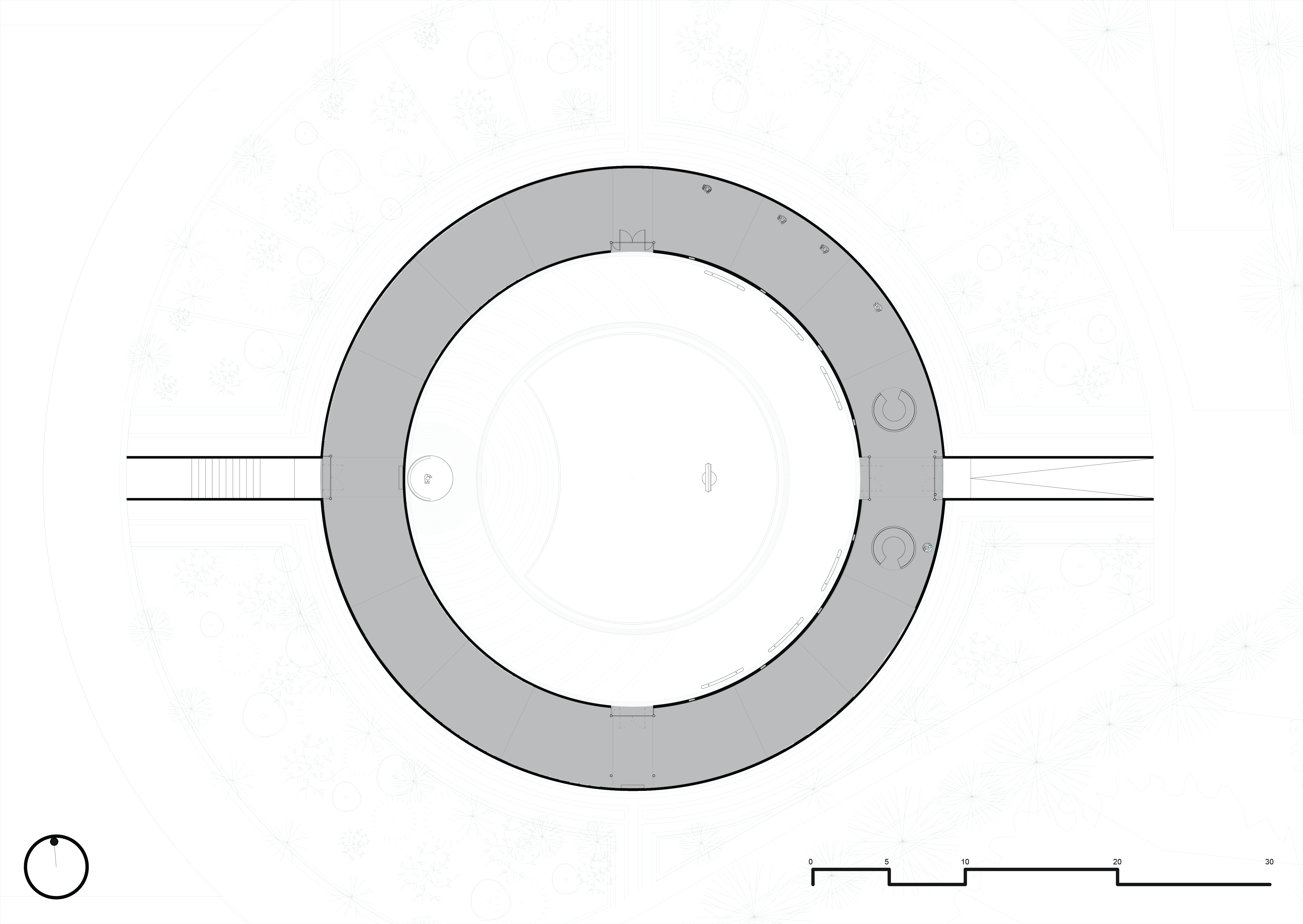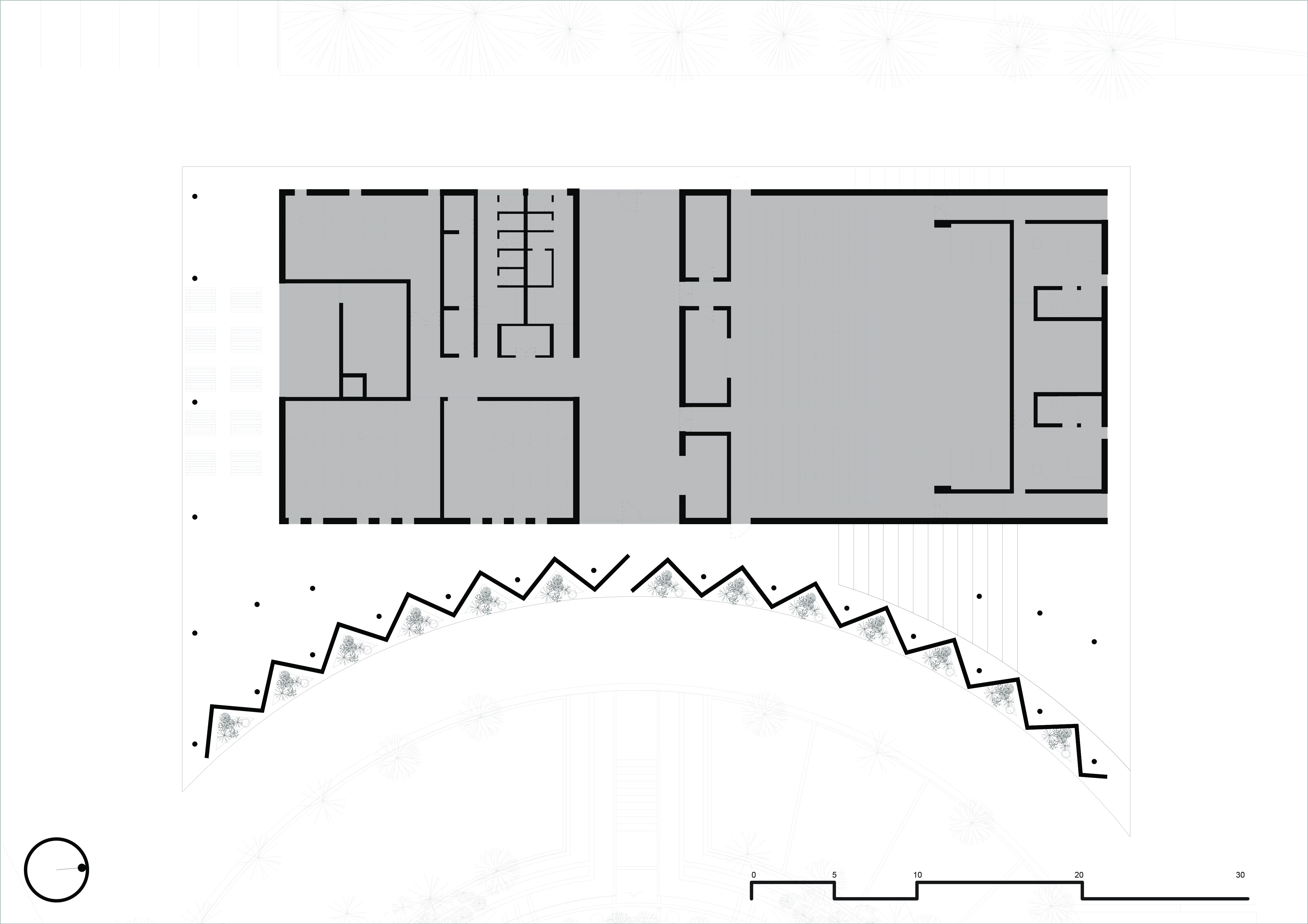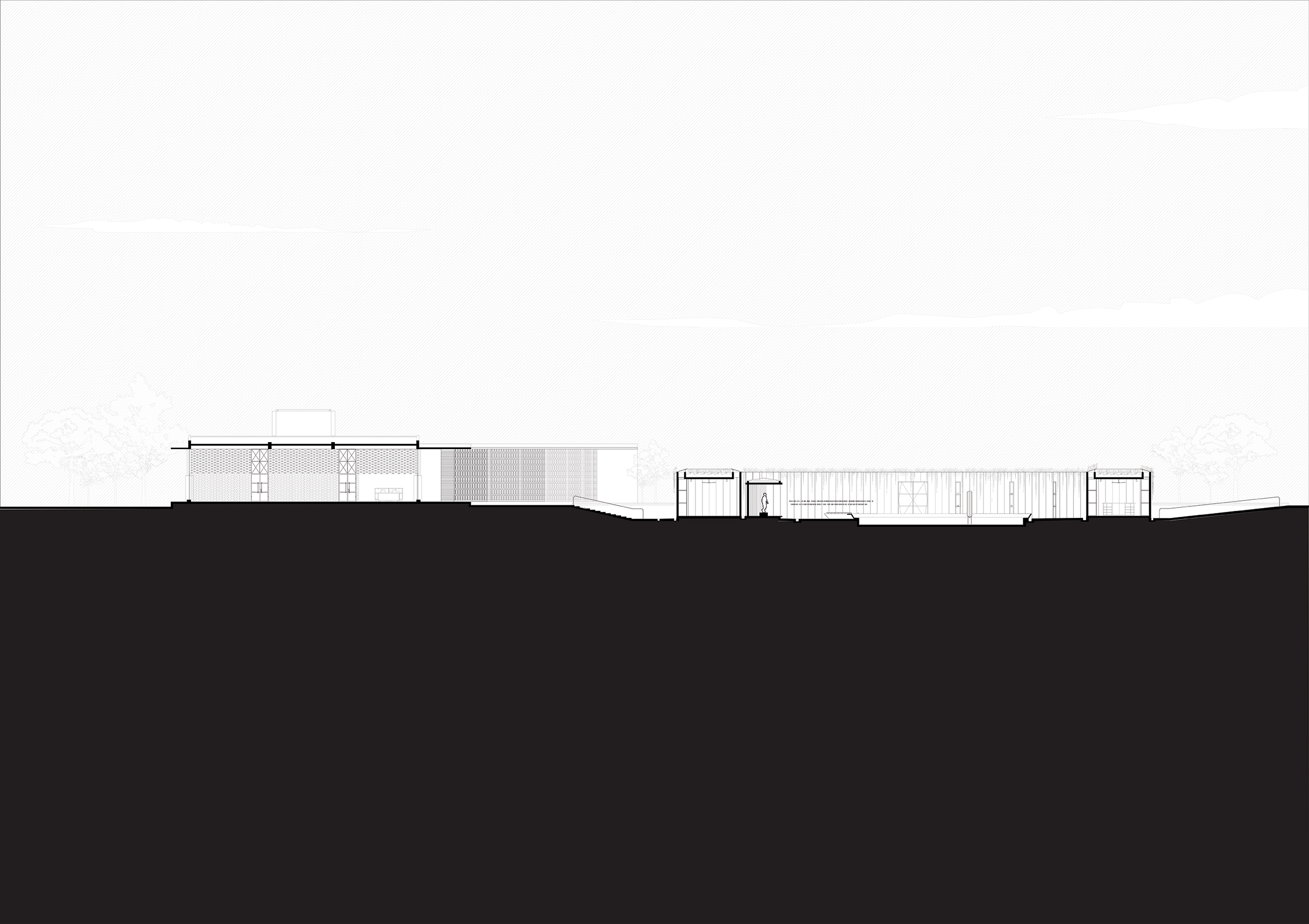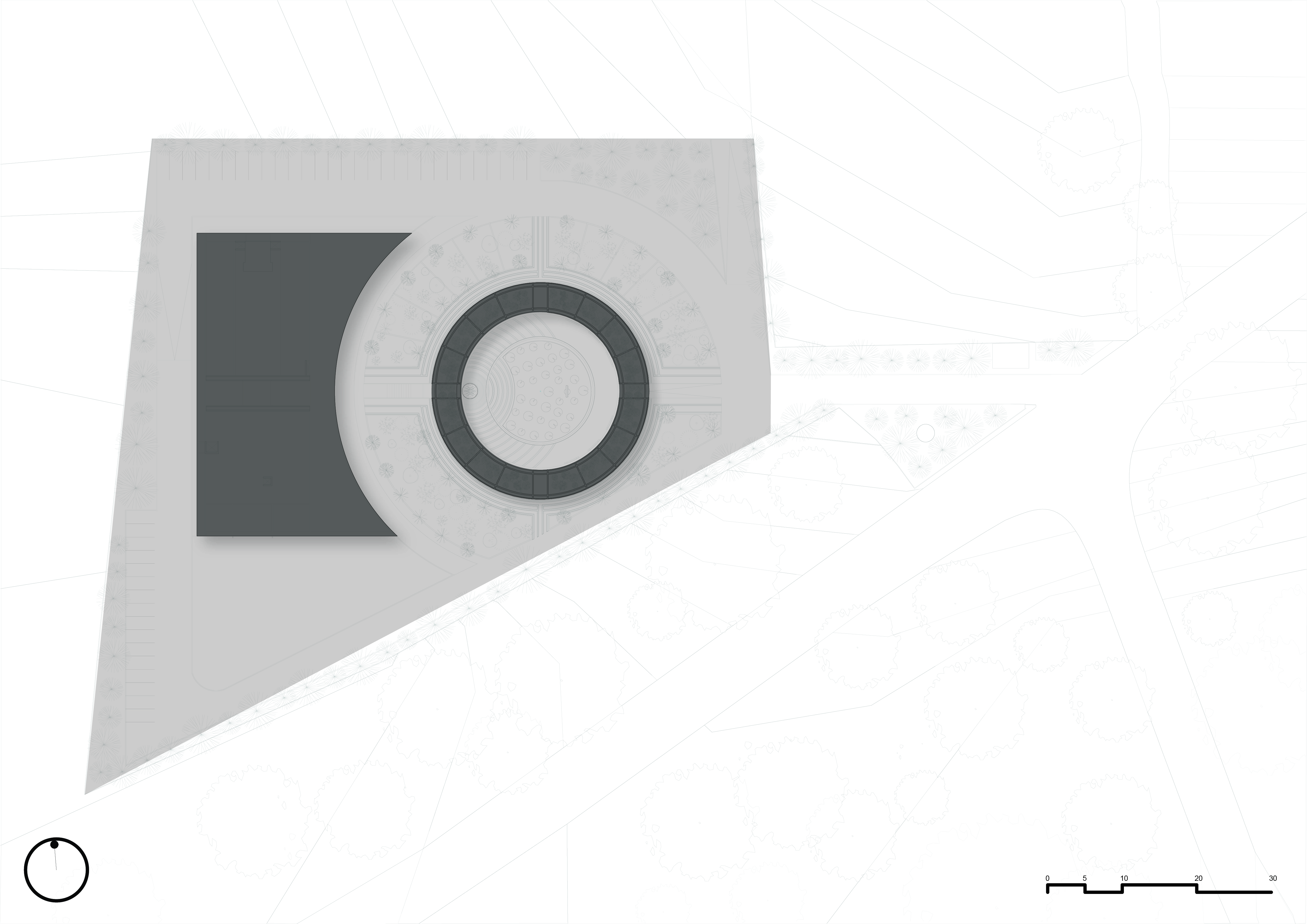 The building block dedicated to film-related programs is strategically positioned in the southwest zone. It serves as a backdrop to the Memory Monument and the photo gallery, carefully preserving the sanctity of the space. Access to these programs is available by invitation and prior booking, ensuring a level of privacy and exclusivity.