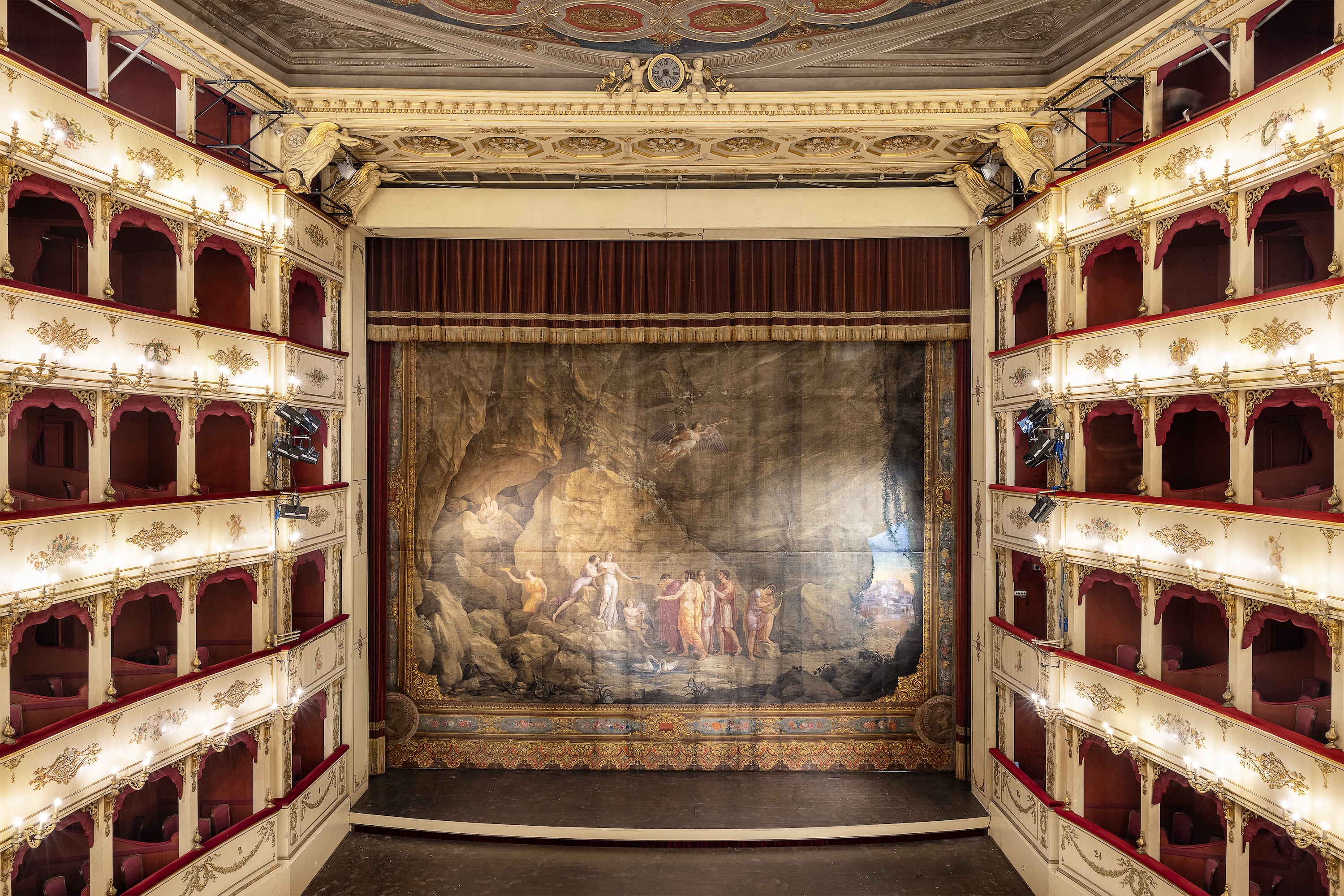 The new project completed by STARTT for the Ridotto of the Rossini Theater in Pesaro defines a contemporary environment that blends the abstract space of European performance theater with the historical tradition of Italian opera.