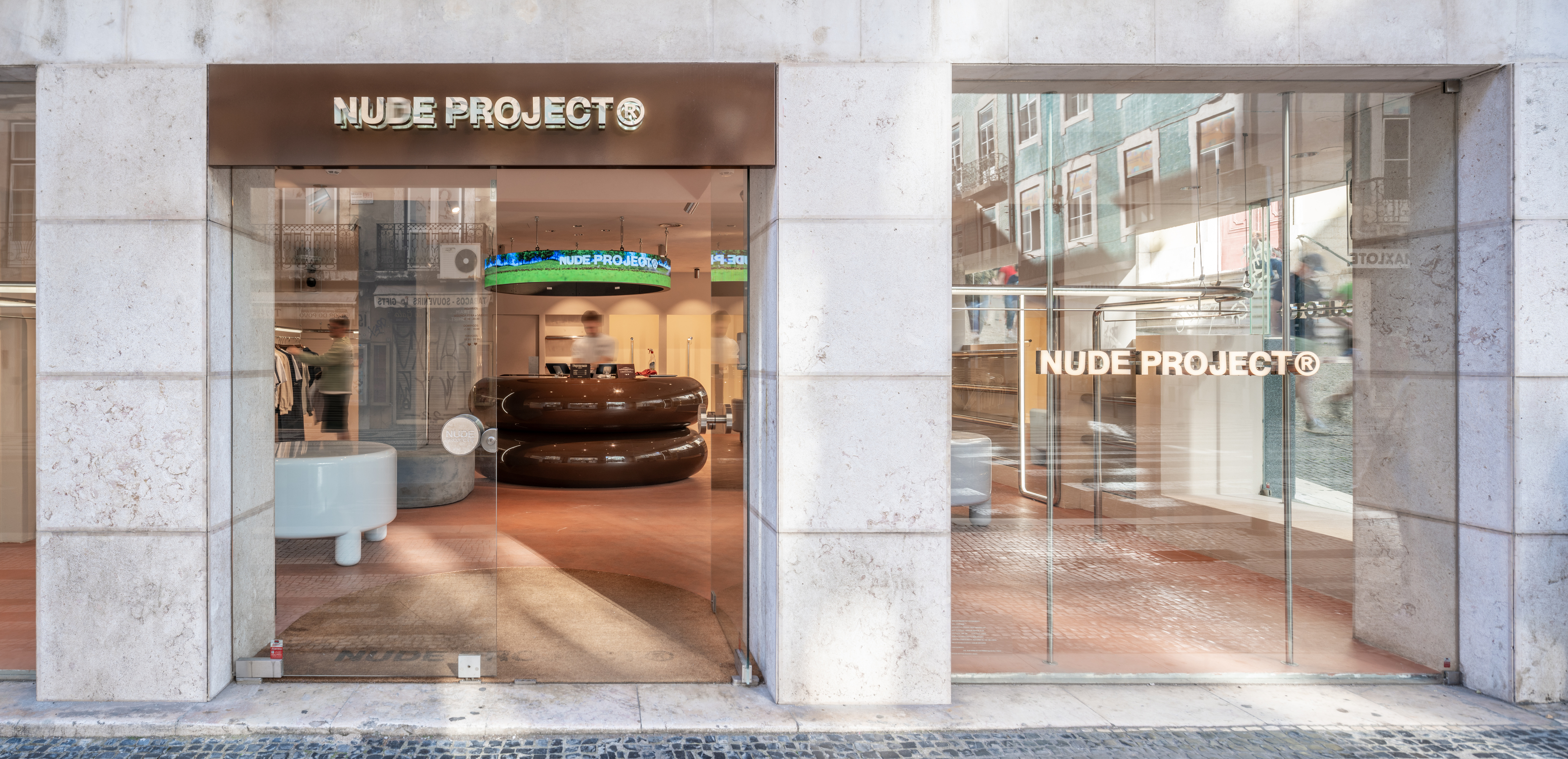 The architecture and interior design studio El Departamento continues its rollout of new spaces for the urban fashion brand Nude Project across major European capitals. Following the openings of stores in Bilbao and Milan, the brand's first flagship store in Lisbon opens its doors. Located in the heart of the city and on one of its main commercial arteries, the store is a tribute to the rich Portuguese architectural imprint and its contemporary aesthetic.