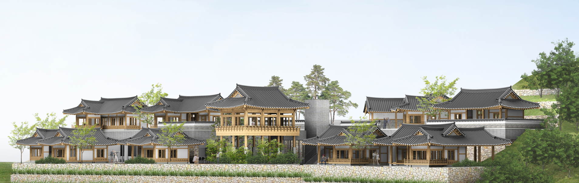 다양한 성격의 마당을 통해 풍경에 스며든다. 시처럼 단아하고 관조적인 공간 속에 지역주민의 추억이 아로새겨질 다채로운 기능을 담은 채가 세개 마당을 중심으로 모여 다양한 이야기를 만들며 주변 환경과 관계를 맺고 소통한다. 이 땅을 열고 들어가게 되면 오로지 자연의 풍경을 장대하고 깊게 끌어 안으며 건축과 자연 그리고 풍경을 만나게된다. 황죽루에 올라서서 일몰 때이면 그 아름다운 붉은 빛을 바로 마주하며 풍광을 즐기게 될 것이다. 지역의 풍토를 대하는 따뜻한 시선을 중요시하는 건축을 통해 변화를 바라는 장소에 새로운 아이콘이 만들어질 것이다. 더불어 땅의 무늬와 역사를 만들어 내고 관계를 지속하여 방문자들에게 장소에 대한 좋은 기억이 새겨지는 공간이 될 것이다. 진입 마당 황죽루를 통한 프레임화된 진주의 풍경을 느끼며 진입하여 친근하고 부드러운 접근을 유도한다.