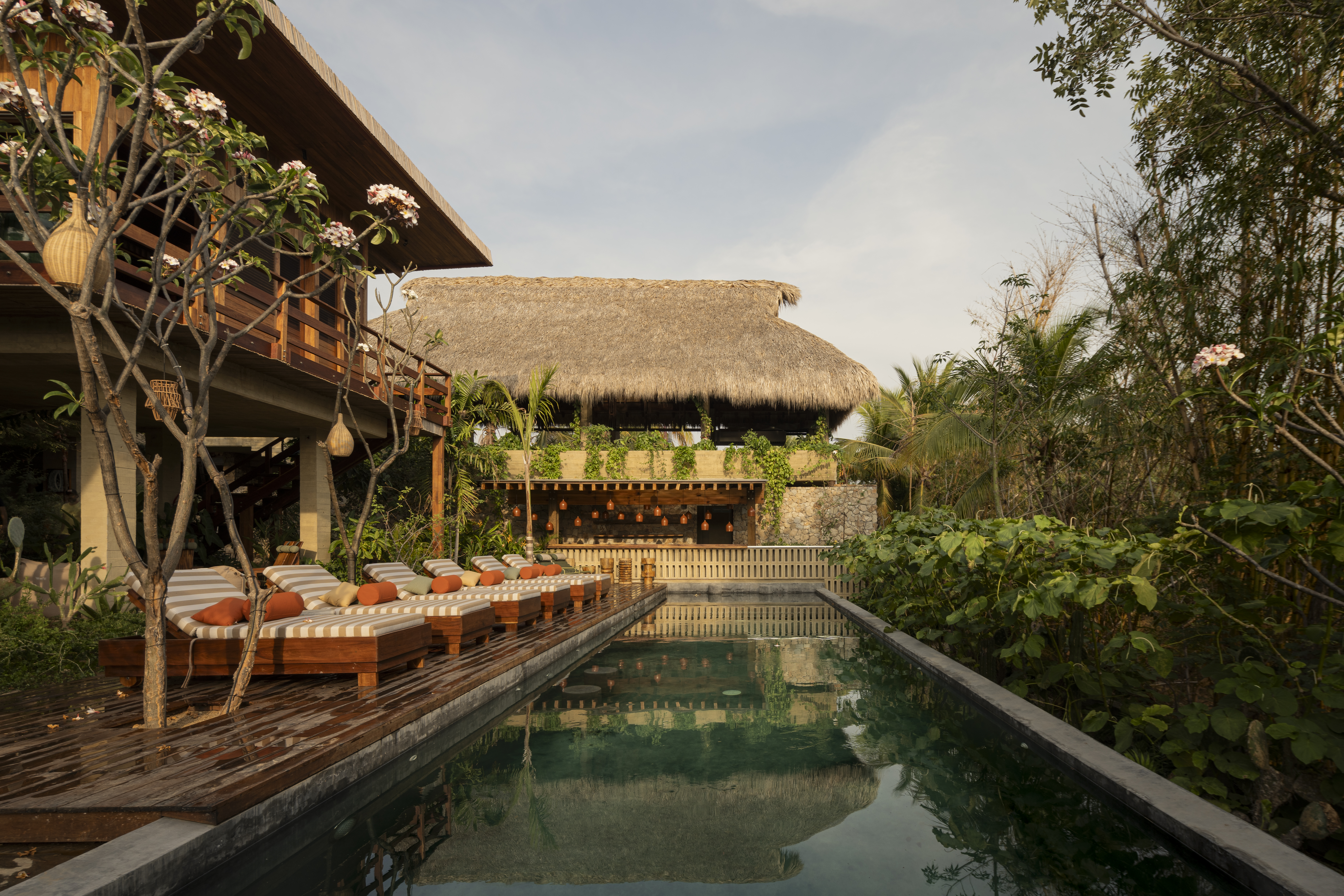 All the hotel buildings face a large garden, where there are two "tree house" style rooms, a bar area, a massage pavilion, and the main pool. The material palette seeks to emulate the textures, colors, and materials of the region through exposed finishes, woods, stones, and local fabrics. In a way, Ennea is perceived as an oasis within the growing coastal city of Puerto Escondido.