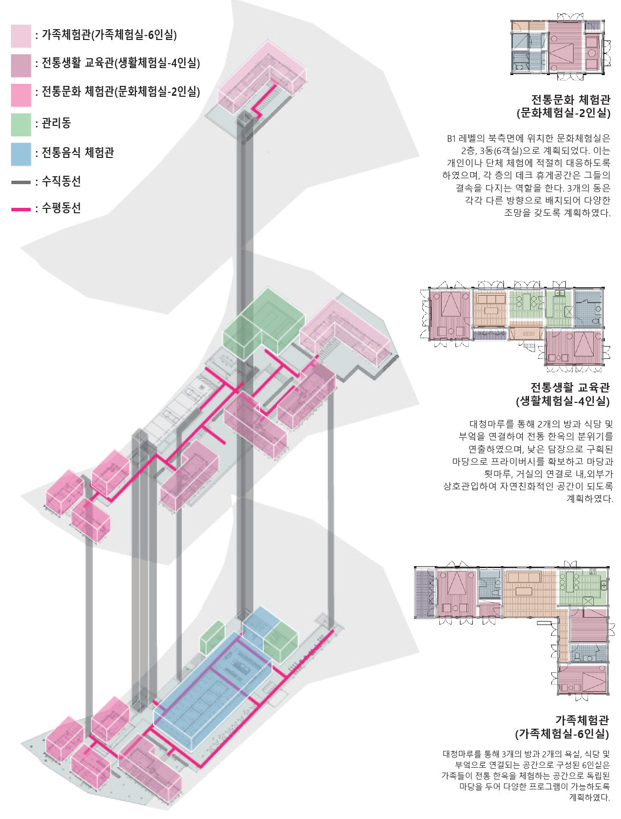 진주 전통문화체험관은 전통 한옥만으로 이루어진 테마파크가 아니라, 백색 노출 콘크리트와 회색의 벽돌, 전통 한옥으로 이루어진 현대적 감각의 전통문화 체험공간이다. 전통은 단지 보고 만지는 것이 아닌, 우리가 생활하는 공간에 같이 존재할 때 그 가치가 더욱 돋보이게 된다. 진주시는 그러한 전통양식이 도시 곳곳에 존재한다. 사람들은 길을 걷다가, 혹은 계단을 오르며, 또는 차 창 밖으로 스치듯 보이는 소소한 풍경 속에서 진주시가 계승해 온 전통 양식을 건물들을 보며 이 도시의 매력을 느낀다.