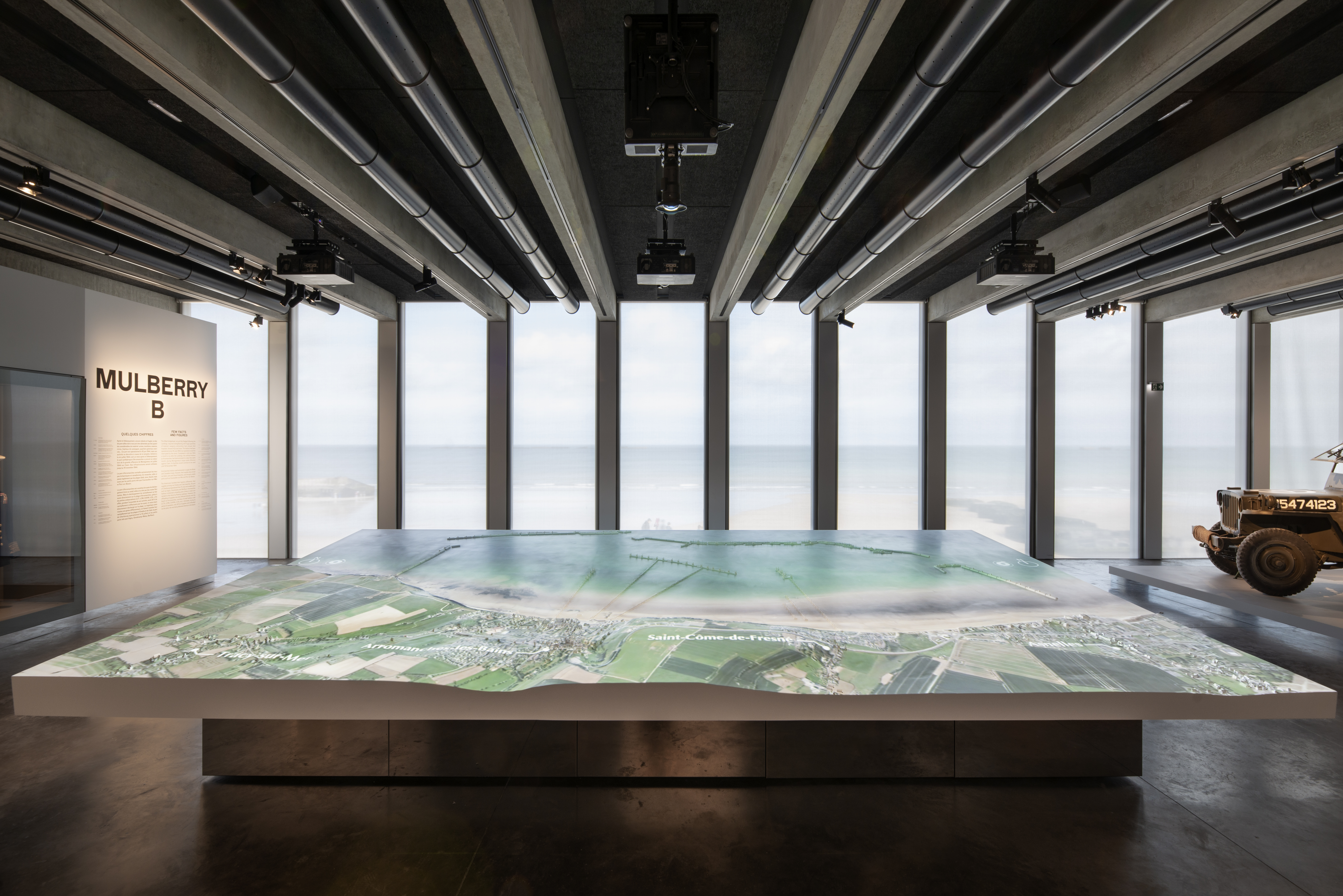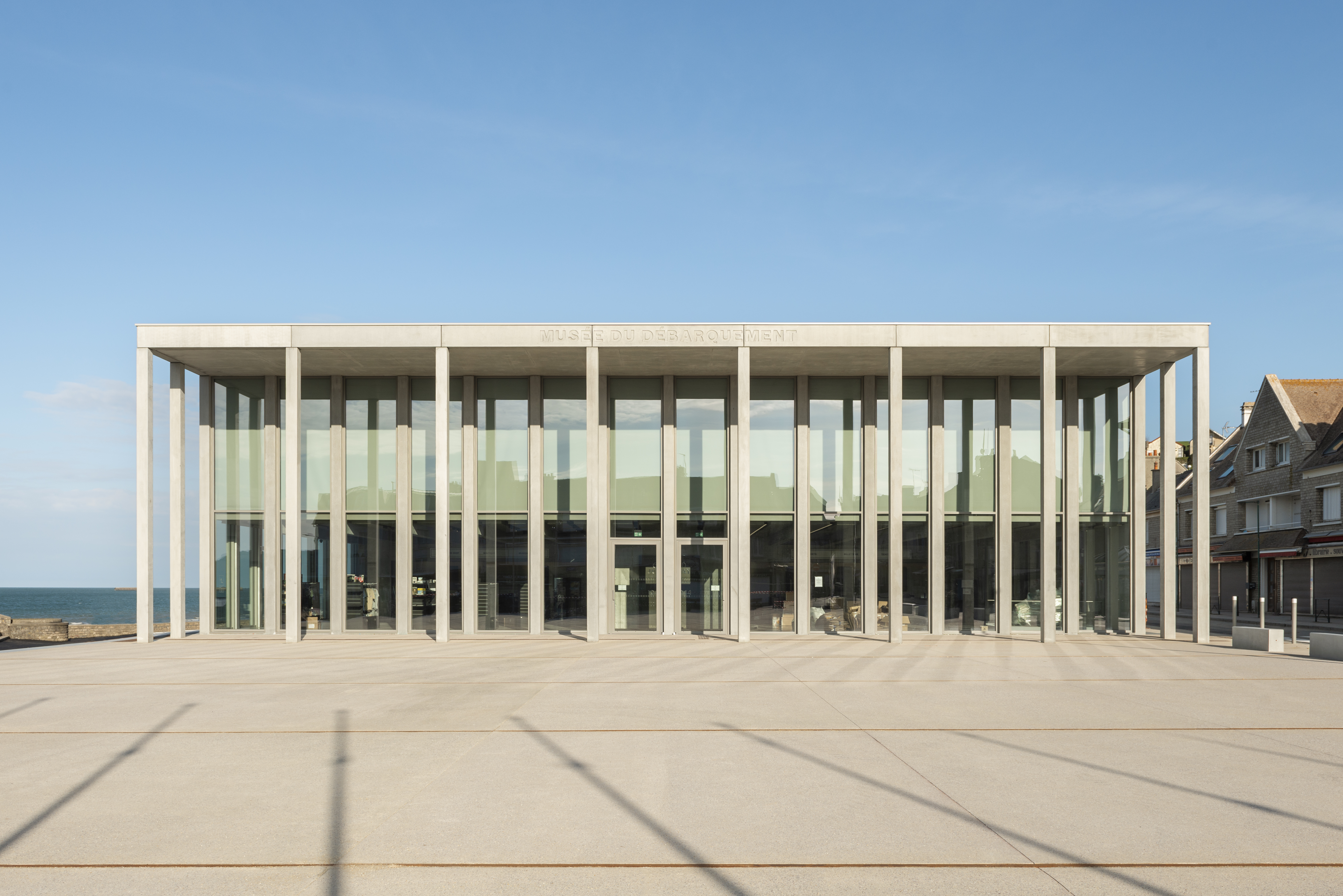 Straddling land and sea, between the forecourt, and museum’s interior, the path of the visit begins at the Place du 6 juin 1944 and the shoreline promenade. The exhibition galleries gradually open towards the exterior, following a chronological and thematic path: from the outbreak of the war up to the liberation.