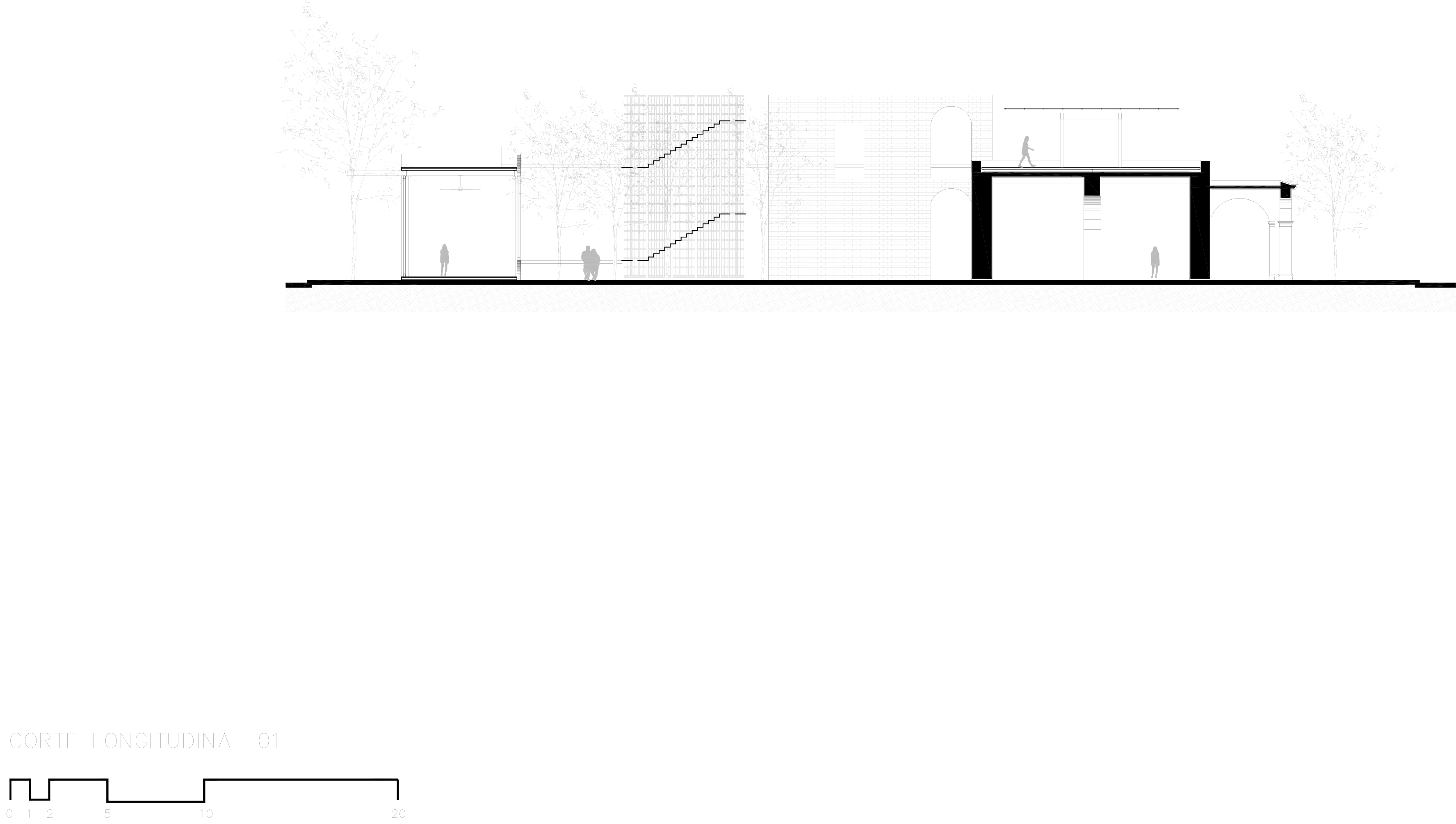 The composition of four adobe planes allowed for a new relationship between the existing building and the new structures, between the past and the present, and between nature and the constructed structures. The building seeks to unfold activities to a second level with other opportunities for wind, views, and light, turning the same rooftops into box seat spaces for cultural activities. The vertical walkway becomes a journey through time in the memory of one of the oldest buildings in this port.