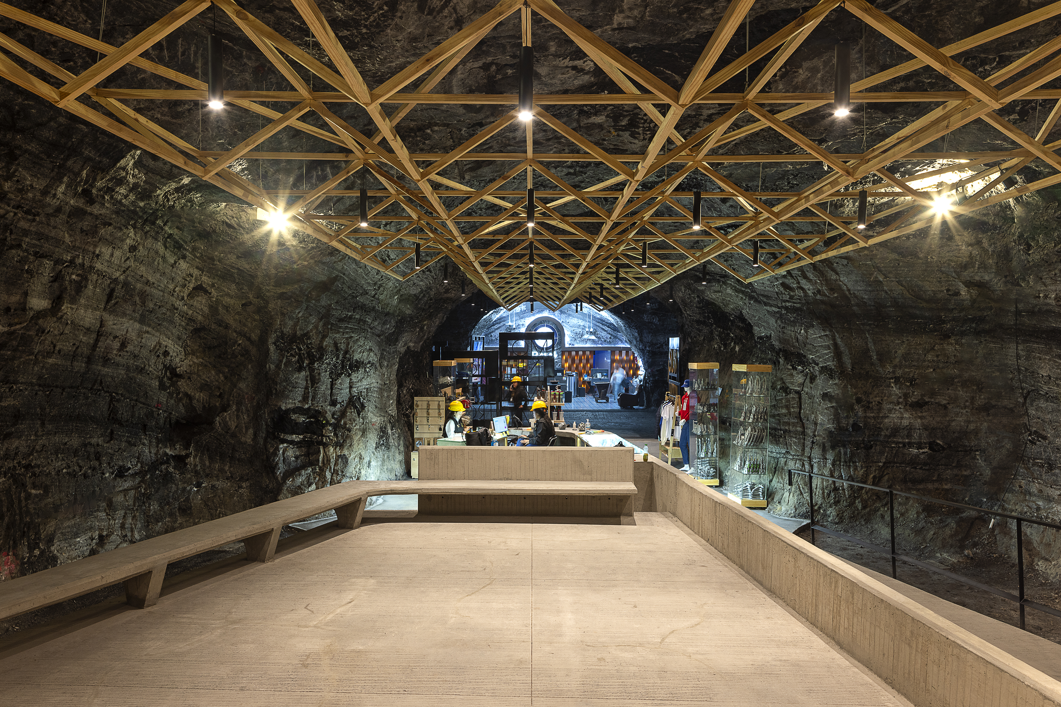 The organic irregularity of the chambers contrasts with the precise cutting of stone, the geometric modeling of concrete, the assembly of wood, and the careful arrangement of events. The Monumental Underground Museum seeks balance between the organic forces of the subsoil and the geometric forces of the artistic and architectural creation installed at the heart of Colombia's greatest heritage site: the Salt Cathedral.